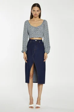 Glamorous Denim Skirts|Midi & Midaxi Skirts|Indigo-Wash Denim Midi-Skirt –