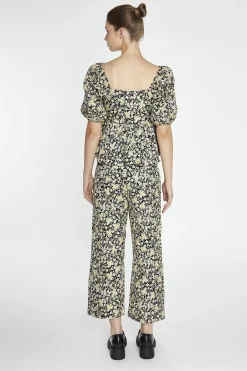 Glamorous Blouses & Shirts|Black-Yellow Brocade Square-Neck Peplum-Top –
