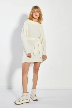 Glamorous Day Dresses|Knitted Co-ords|True-Ecru Knitted Mini Dress with Tie Belt –
