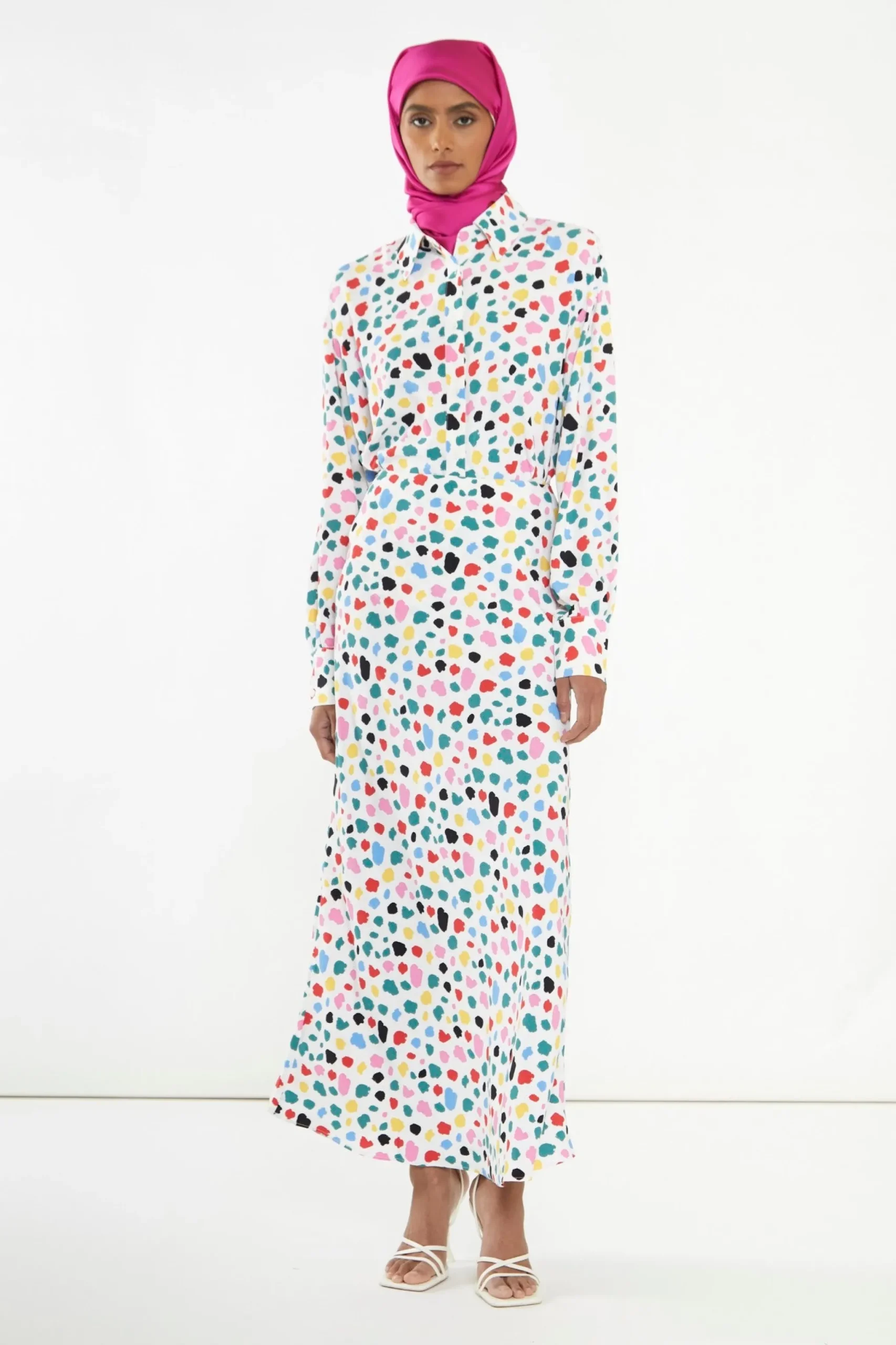 Glamorous Modesty Womens Abstract Spot Bias-Cut Maxi-skirt. This spot print skirt is a colour lovers dream! Featuring a flattering bias cut, this maxi skier will not fail to impress! Style with matching the matching shirt and your favourite heels to complete the look.