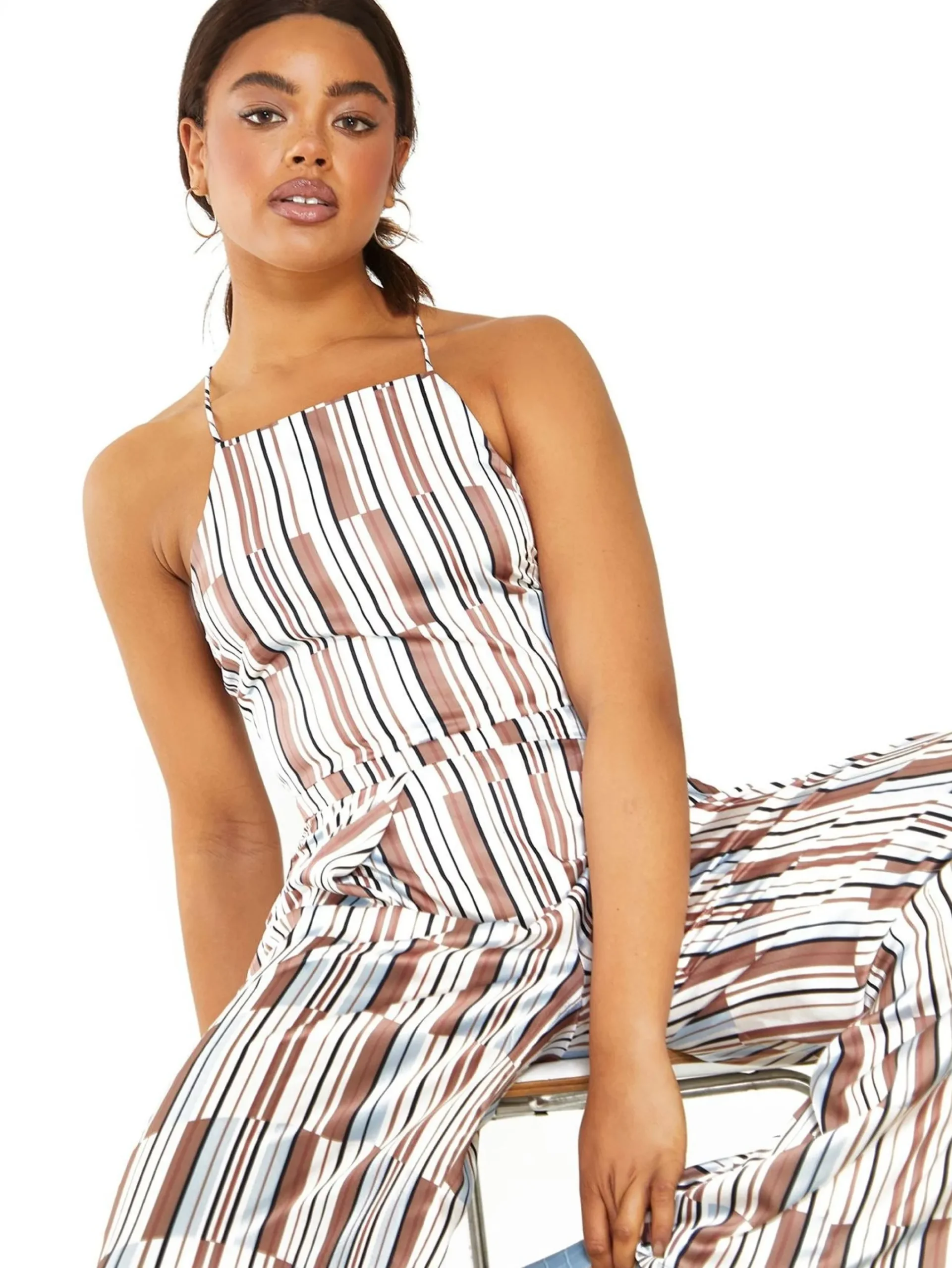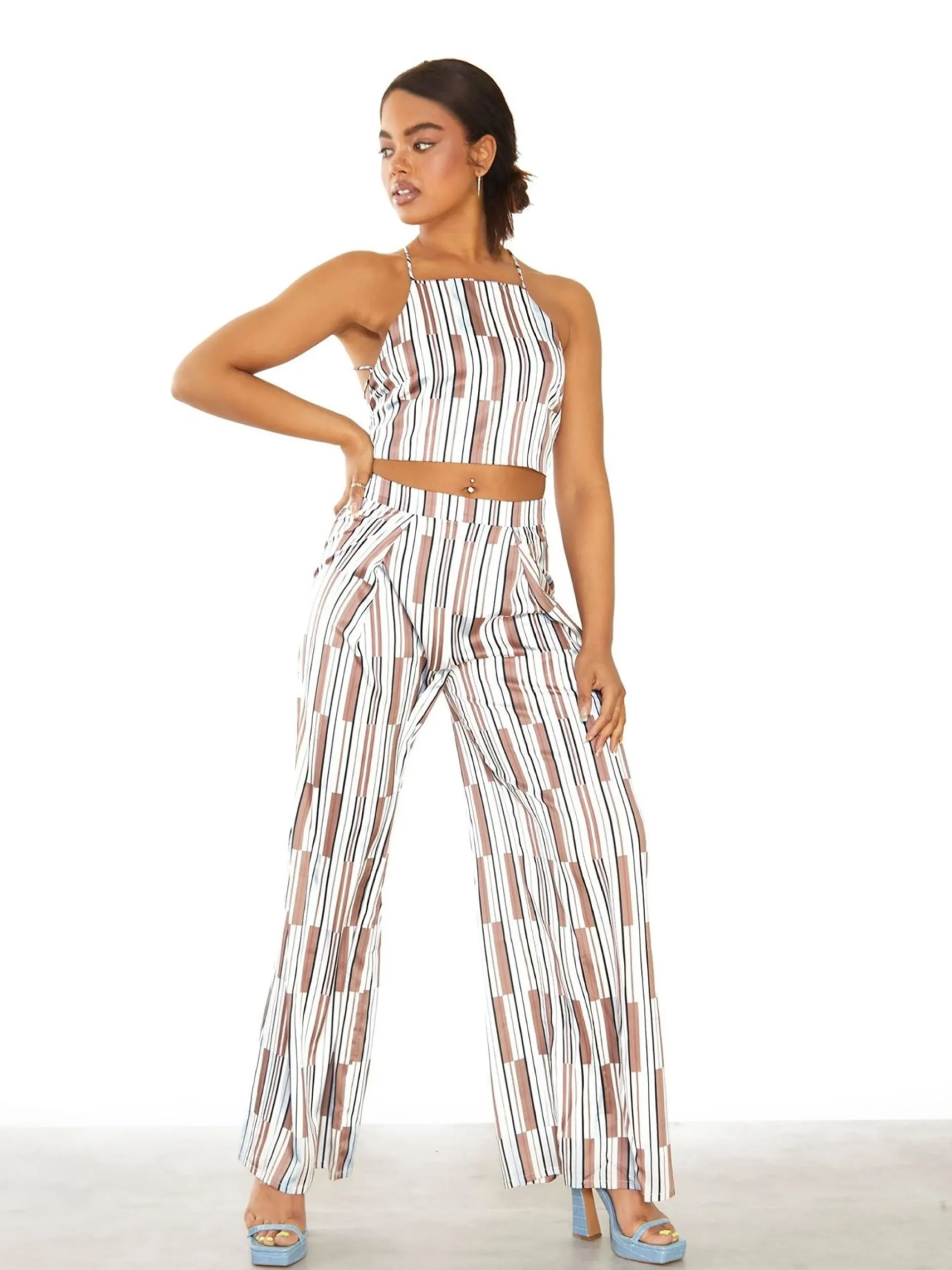 Glamorous Womens Brown Blue Stripe Crop Top. This stripe cropped piece is perfect for this season. Featuring an on trend pattern and open tie back this piece will not fail to impress. Pair with matching Brown blue Stripe�co-ord�trousers and some chunky wedges for the ultimate effortless chic look.�