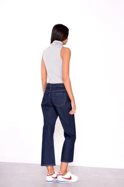 Glamorous Womens Dark Blue High Waisted 3/4 Length Jeans. This jeans are perfect for your wardrobe this season. Featuring a straight leg and flattering fit you wont fail to impress in these staple denim jeans. Pair with a chic white bodysuit and some chunky trainers for that fashion forward daytime look this season.