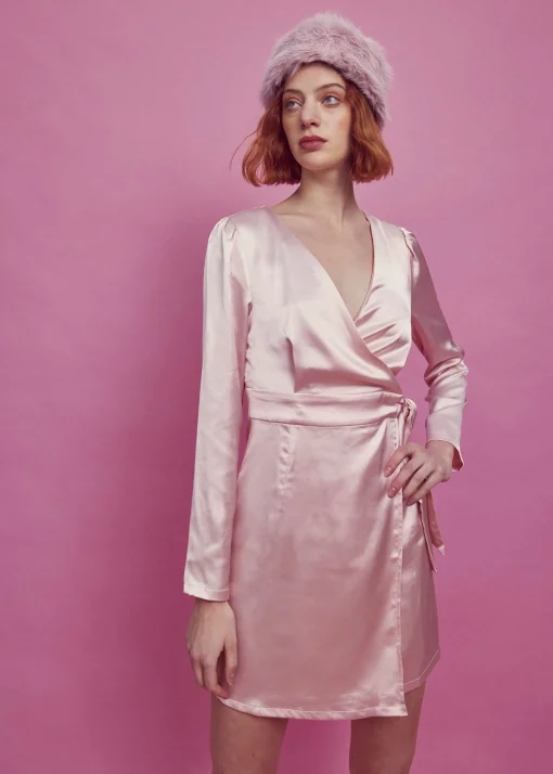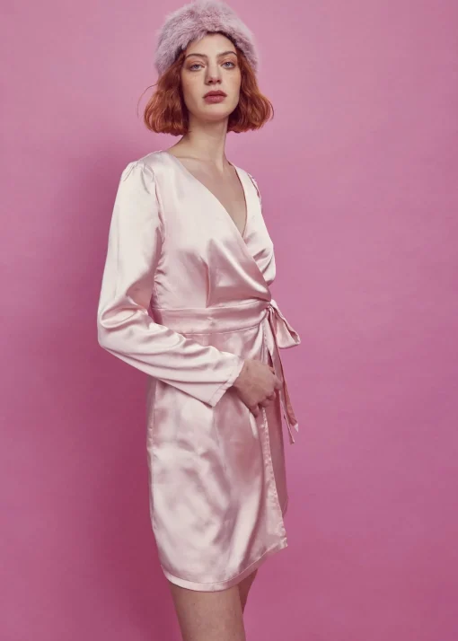 Collective the Label Women’s Sarah Wrap Mini Dress -Pale-Pink Satin. Look stylish and feel comfortable in this must-have dress. Crafted from soft sating fabric and featuring a flattering wrap design, this mini dress will turn heads wherever you go. Perfect for days you want to make an effortless and glamorous impression.
