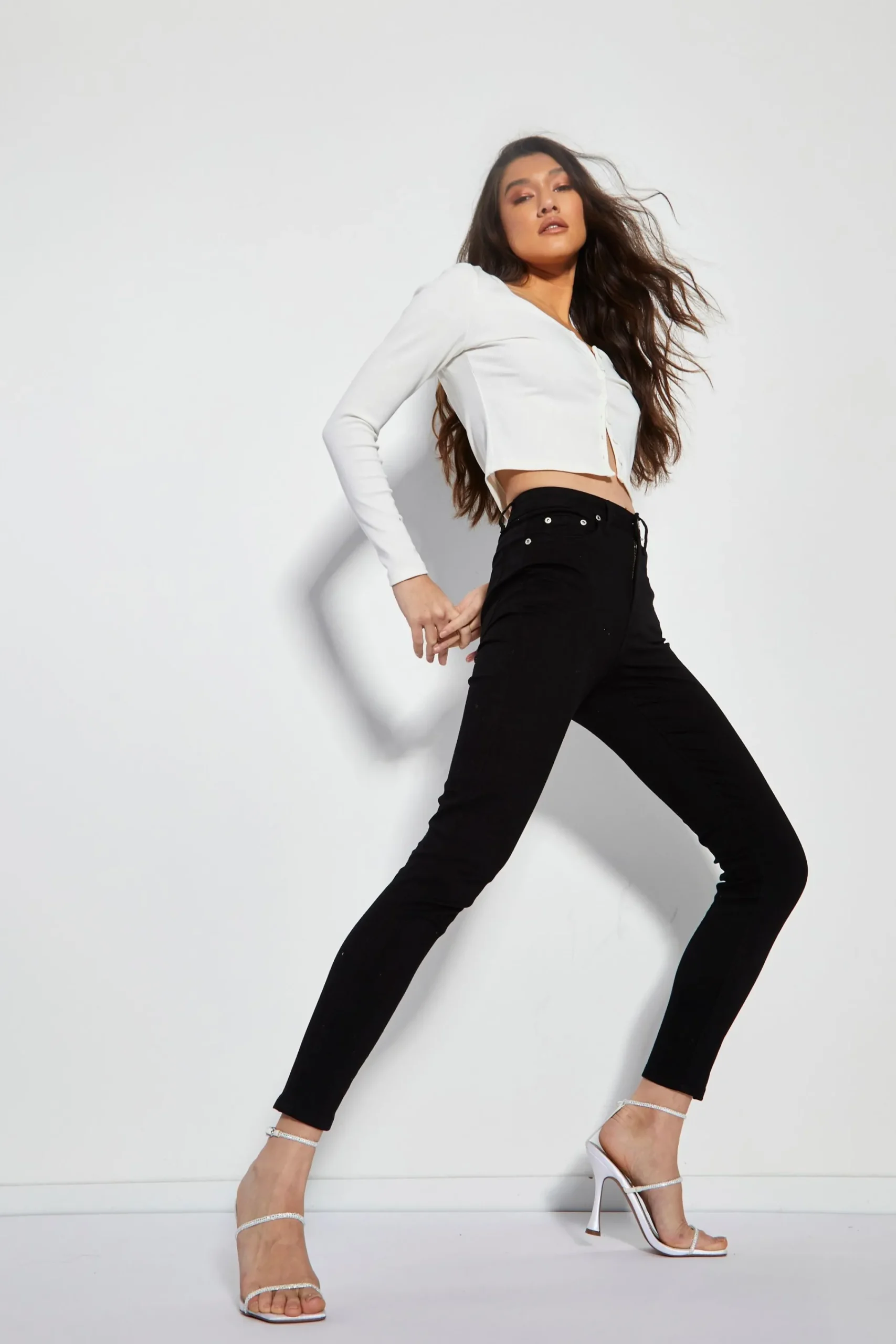 Glamorous Womens Black Skinny Jeans. These jeans will be your go to denim piece this season. Featuring a flattering skinny fit these jeans will not fail to impress! Pair with cute blouse and strappy heels for an elevated on trend look this season.