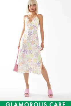 Glamorous Best Dressed Guest|Chic Escapes|Cream Peach Ditsy Organza Midi-Dress –