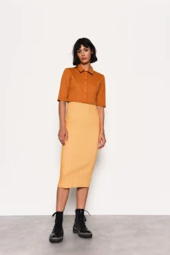 Glamorous Chic Escapes|Flat Shoes|Yellow Textured Flattering Cotton Blend Midi Skirt –