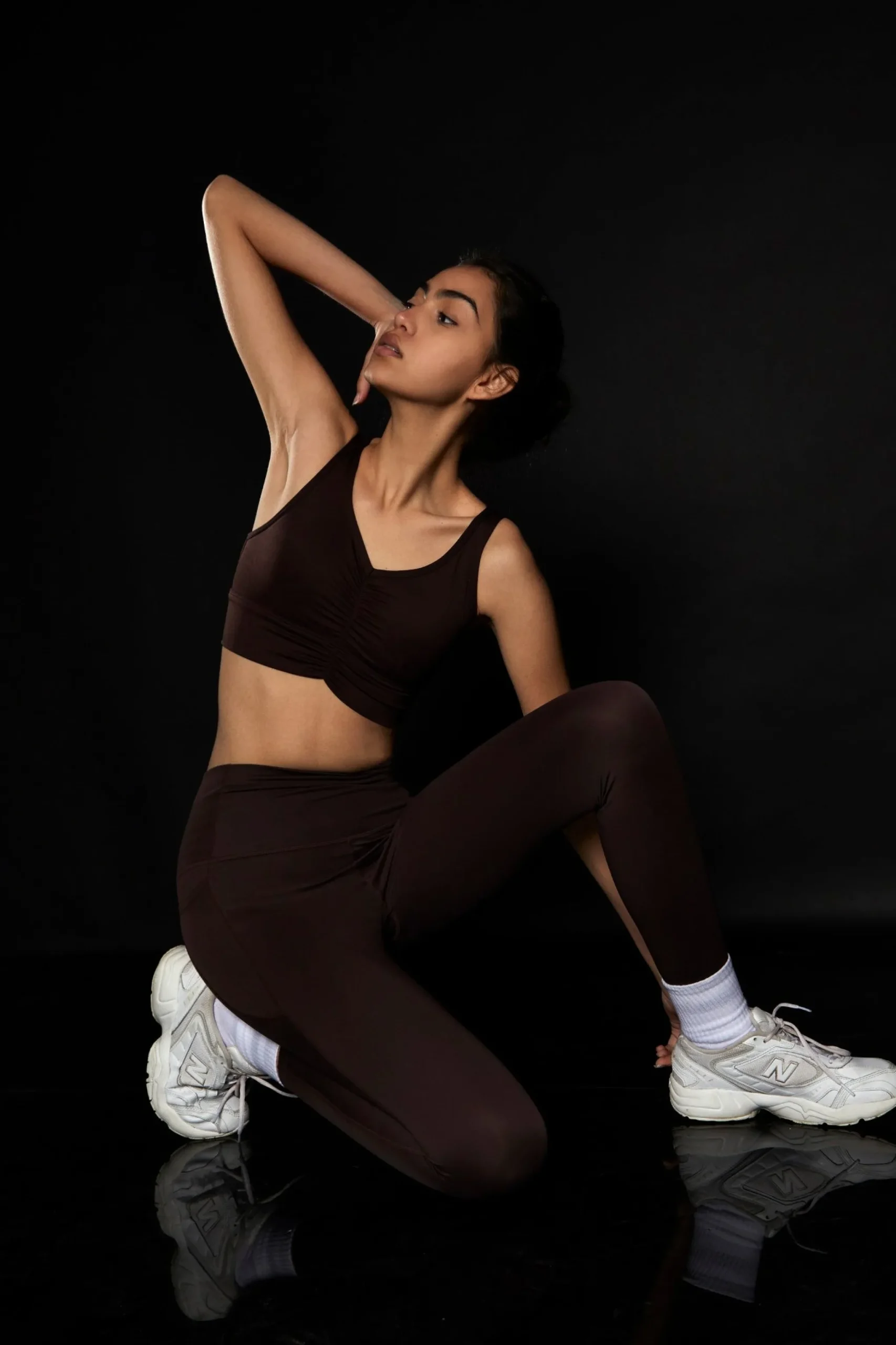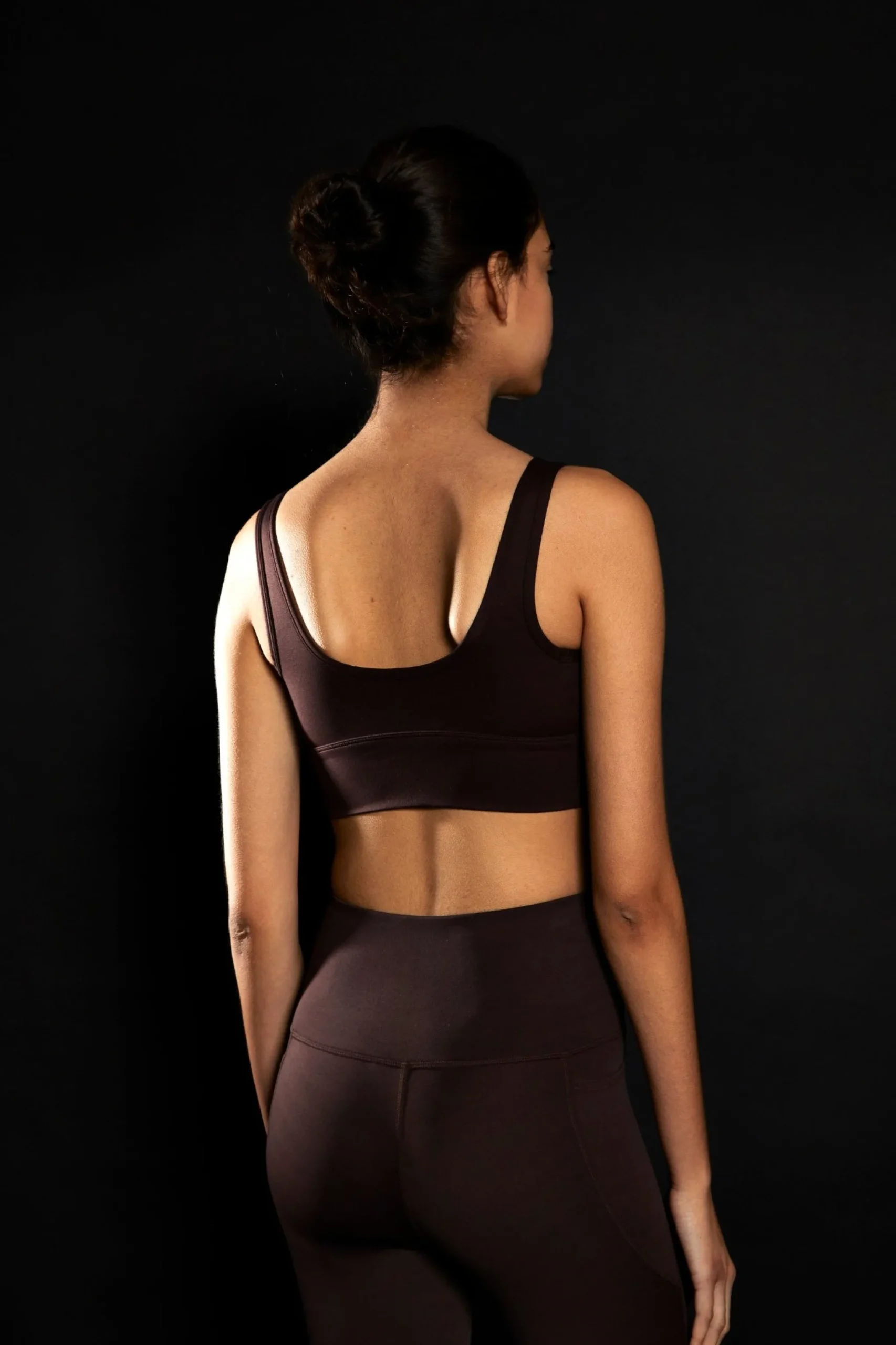 Glamorous Move Womens Chocolate Ruched Sports Bra. This sports bra is exactly what you need for your activewear wardrobe this season. Delivering the ultimate flattering fit with a V-neckline and ruched front detail, youll be reaching for this piece no matter the workout!