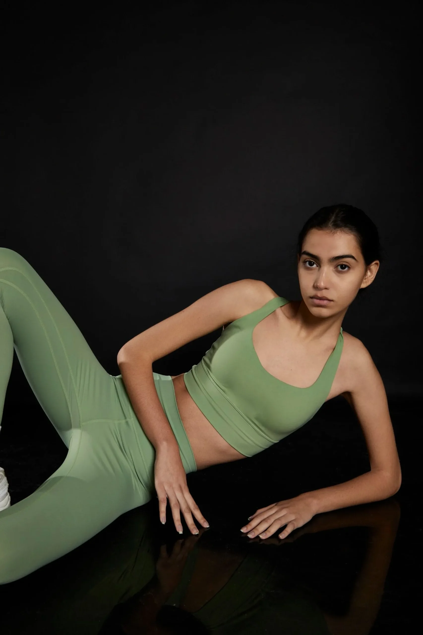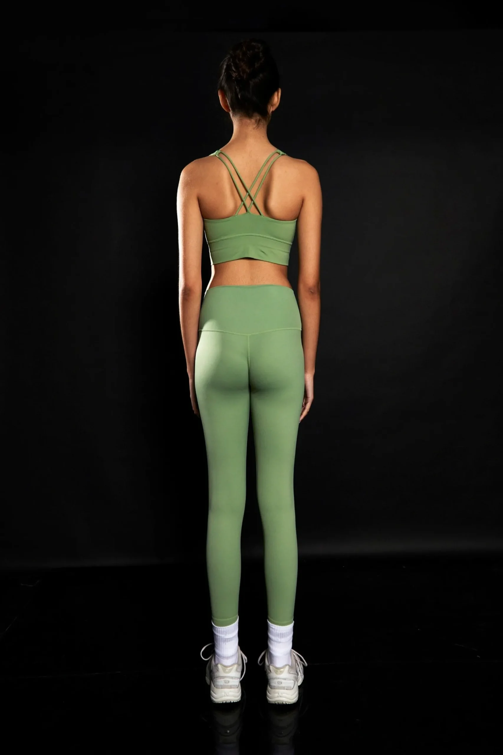 Glamorous Move Womens Fern Green Cross Back Sports Bra. This ultra-soft sports bra is an absolute workout essential. Featuring a flattering scoop neckline and cropped fit with criss-cross back detailing for an elevated finish that is perfect for any activity.