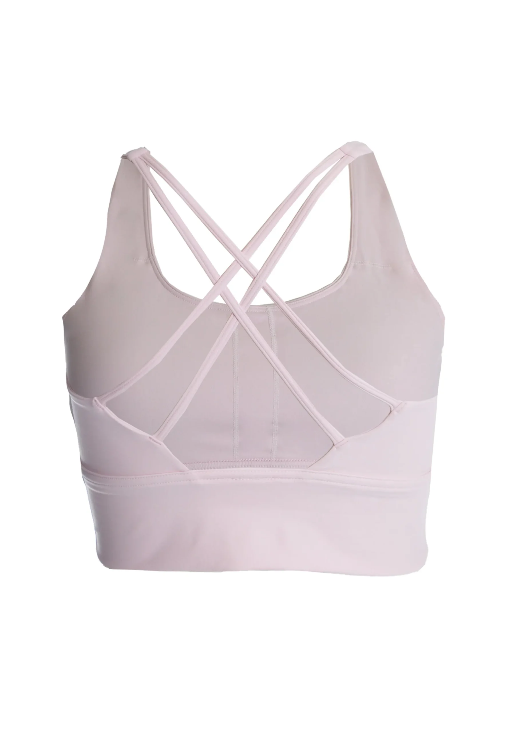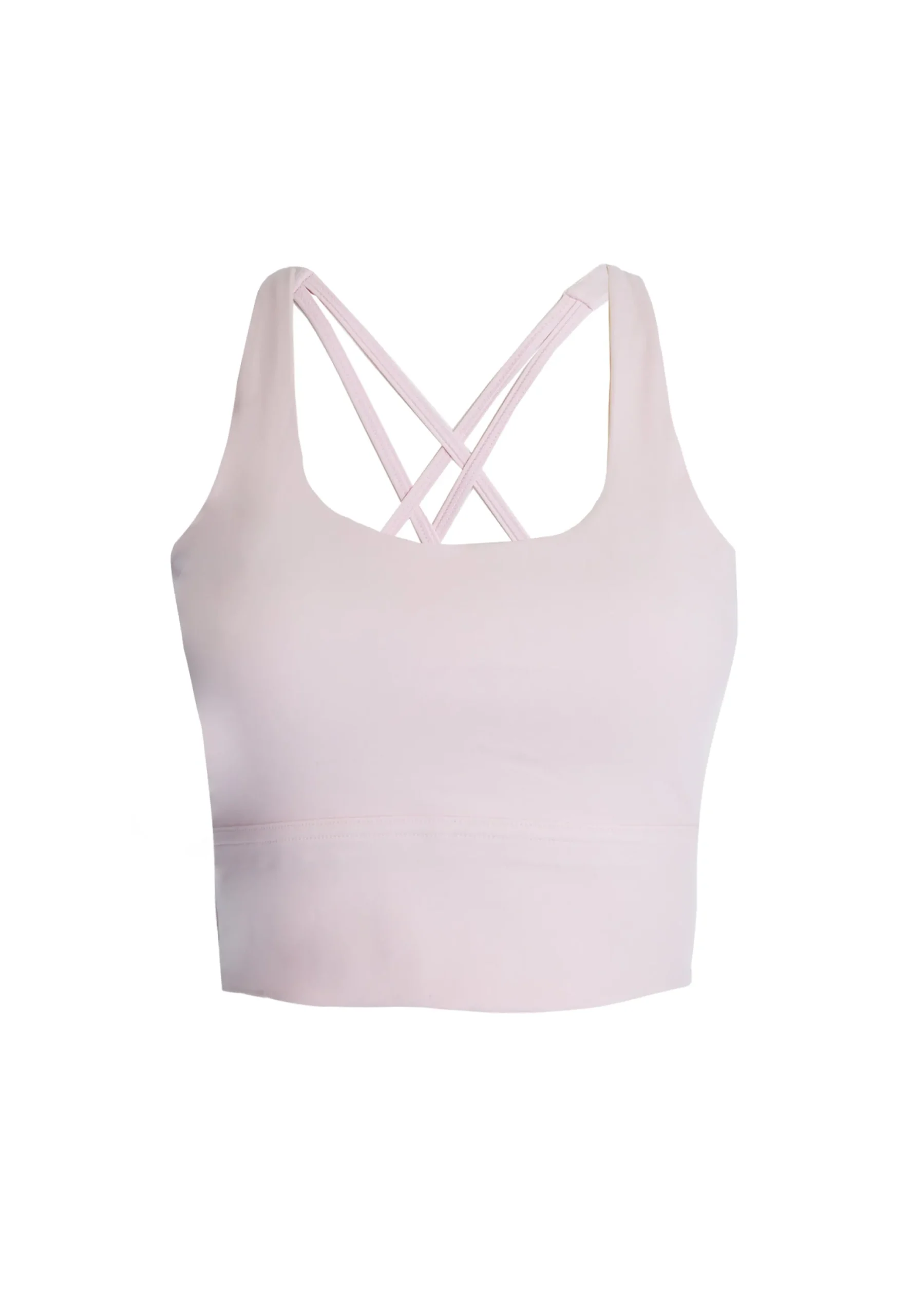 Glamorous Move Womens Light Pink Seamless Bra. Kickstart your path to healthy living! Featuring a flattering scoop neck with a crisscross supportive design to give you comfort and versatility. It is a must-have workout essential with a seamless finish.