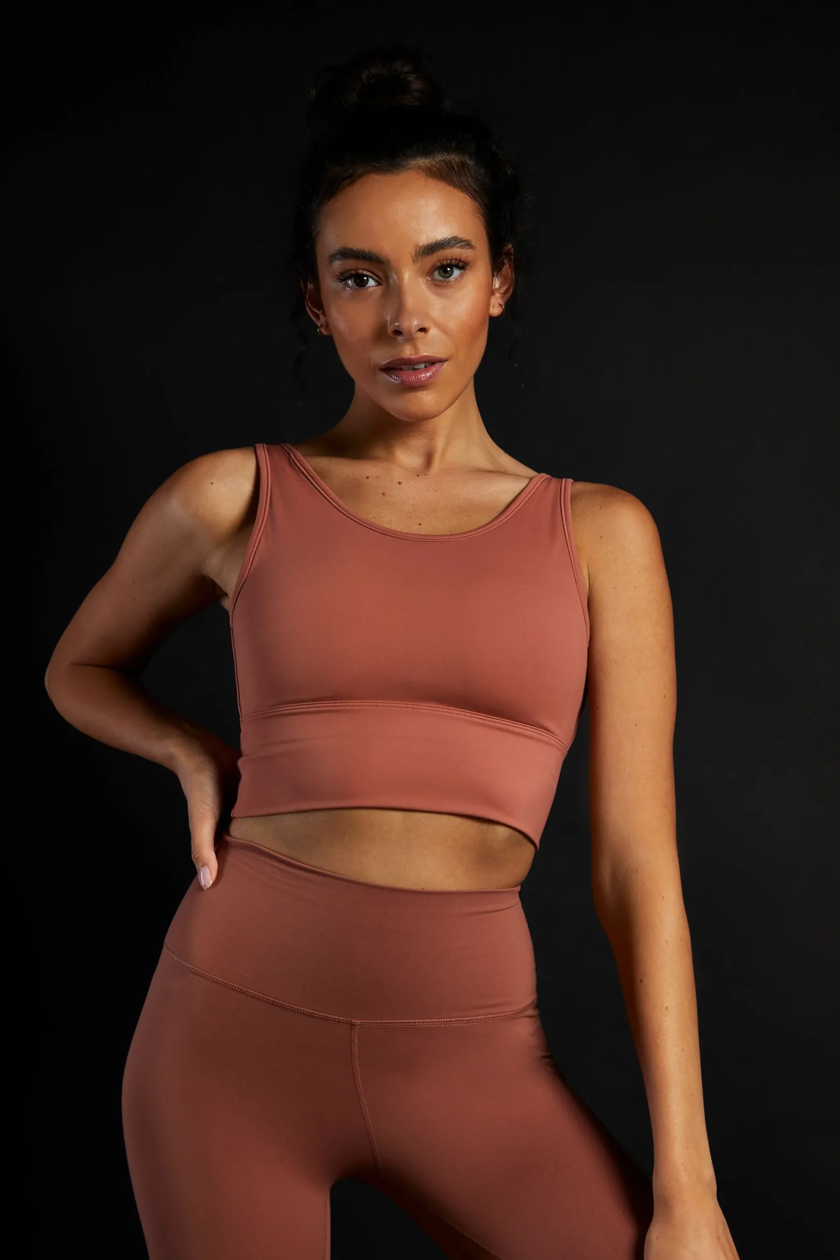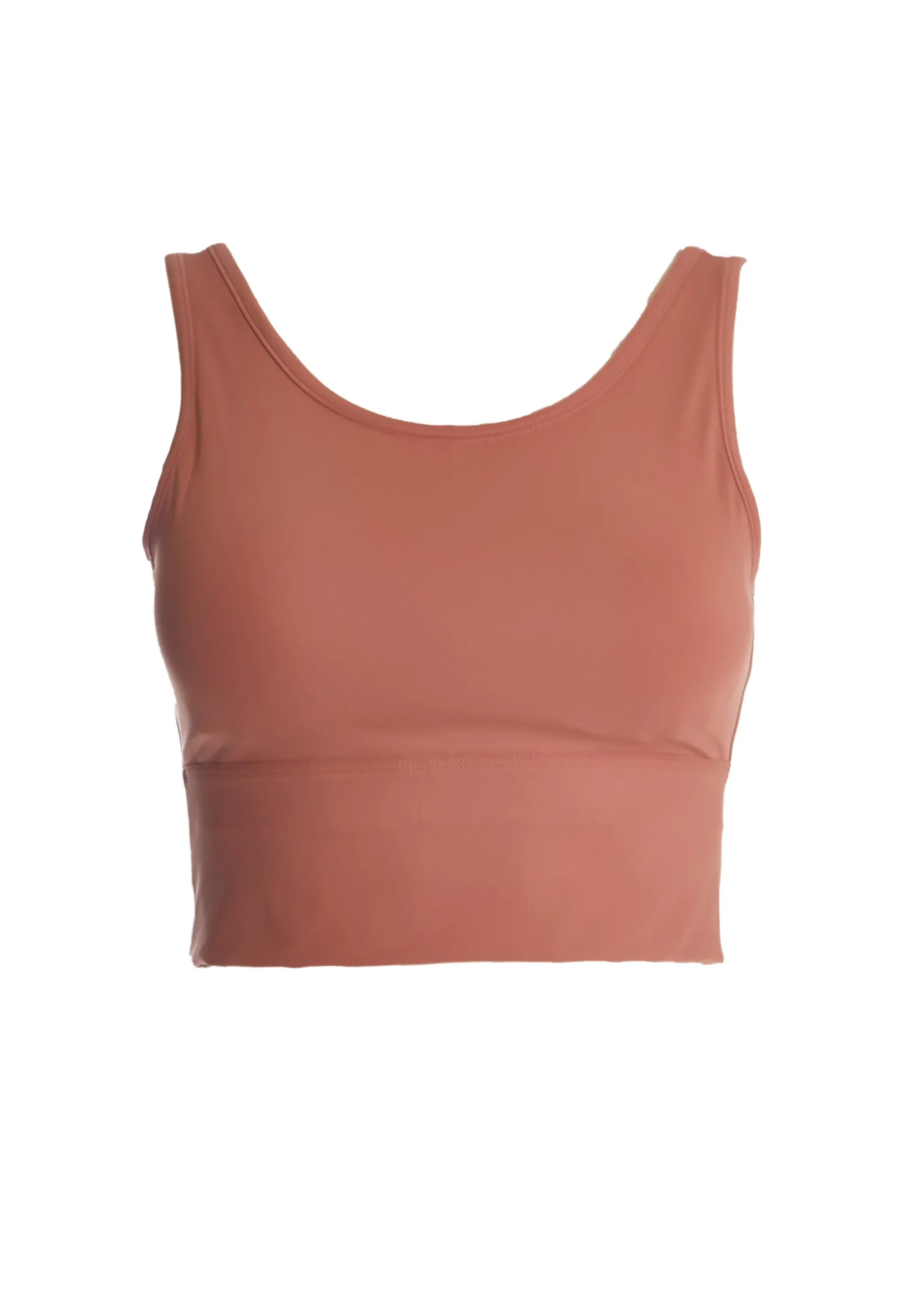 Glamorous Move Womens Terracotta Seamless Bra. This sports bra will become your all-time favourite in sense of comfortability and versatility. Crafted from a blend of nylon and elastane, this bra comes with high support and removable padding. It is also breathable and ultra-soft.