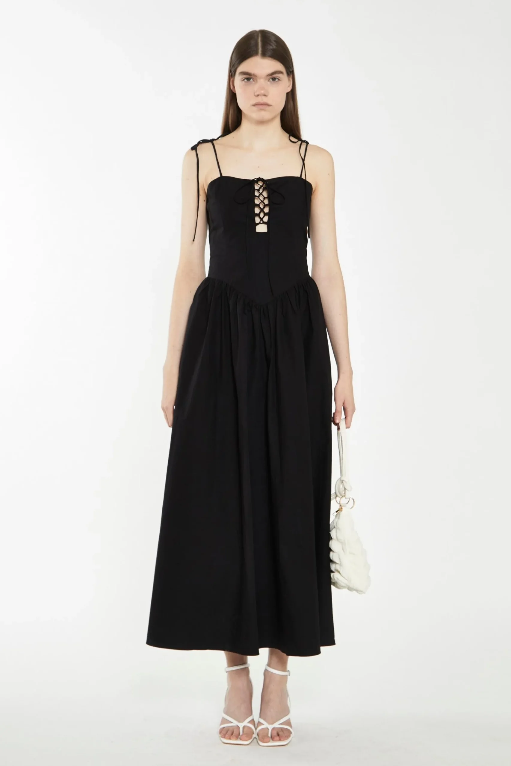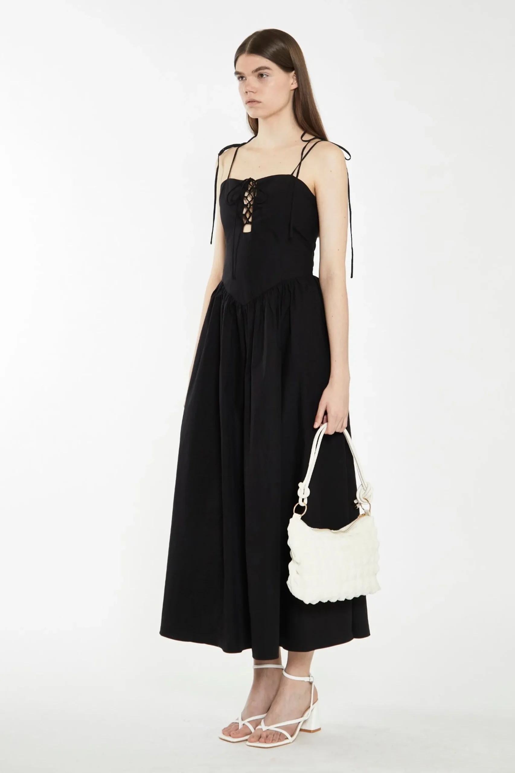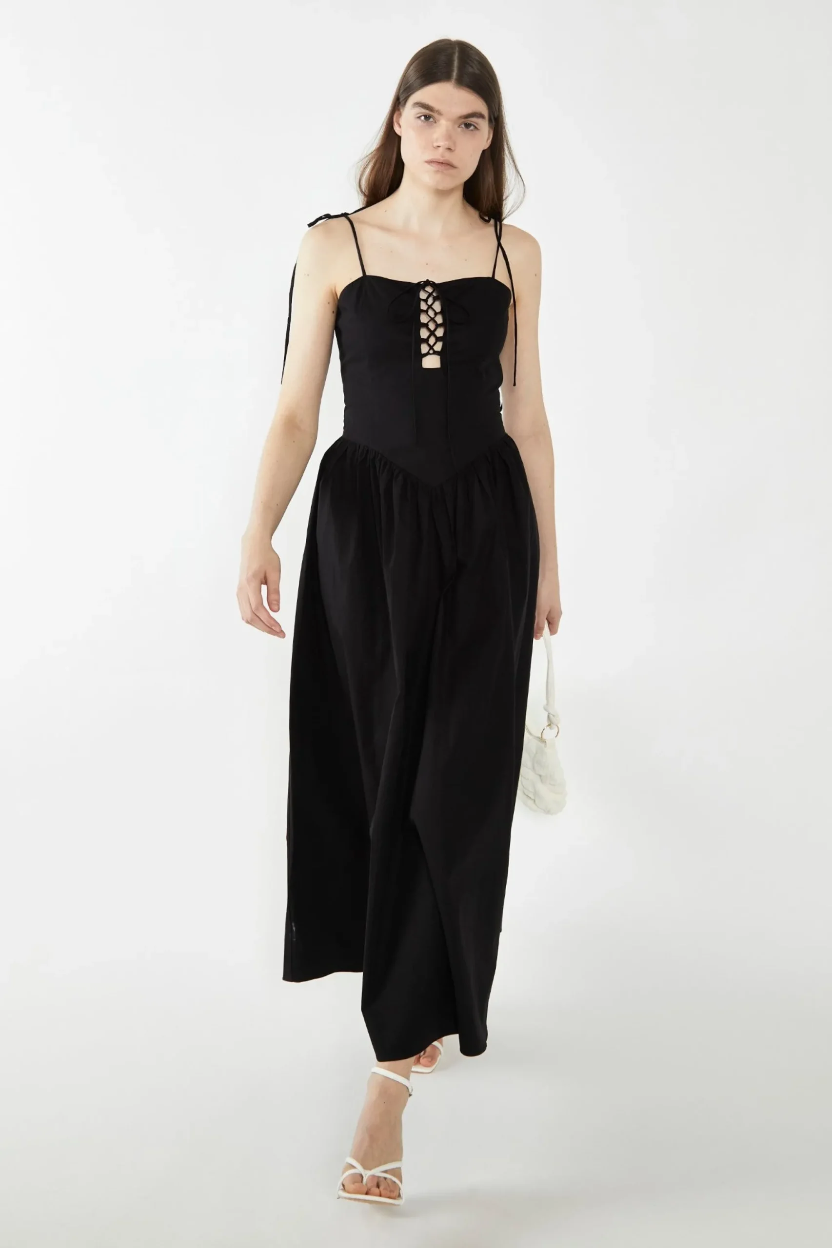 - Stunning black colour and lace-up bodice design