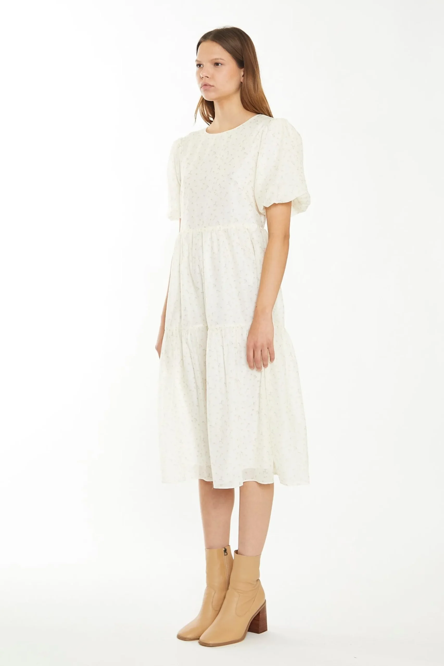 Glamorous Womens Cream Peach Ditsy Organza Midi-Dress. This gorgeous midi dress is an absolute show stopper! Featuring puff sleeves, open tie back detail and a tiered style in a gorgeous ditsy floral print, this dress is perfect for you. Make sure to pair with some heeled ankle boots for that chic daytime look.