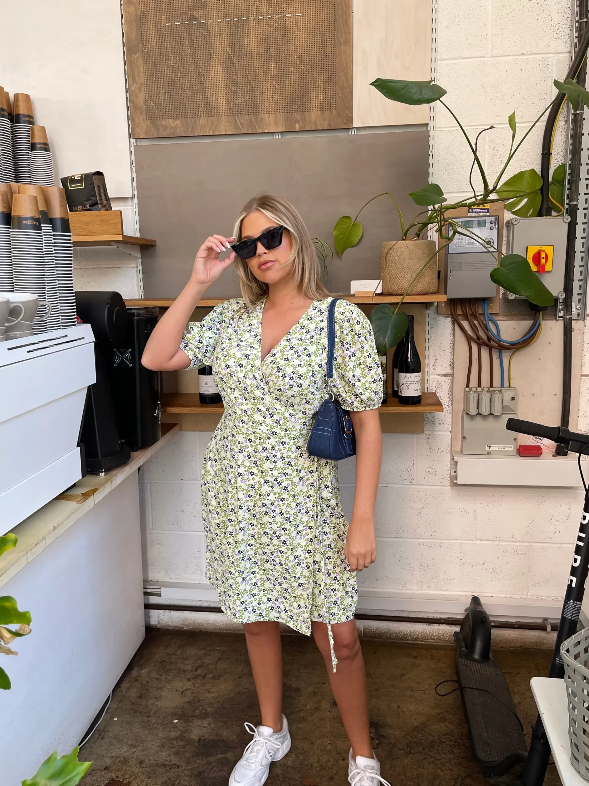 Featuring a floral print design and a flattering wrap silhouette, this dress is sure to turn heads wherever you go. The lightweight and breathable fabric ensures comfort while the short sleeves provide coverage and a bit of elegance.