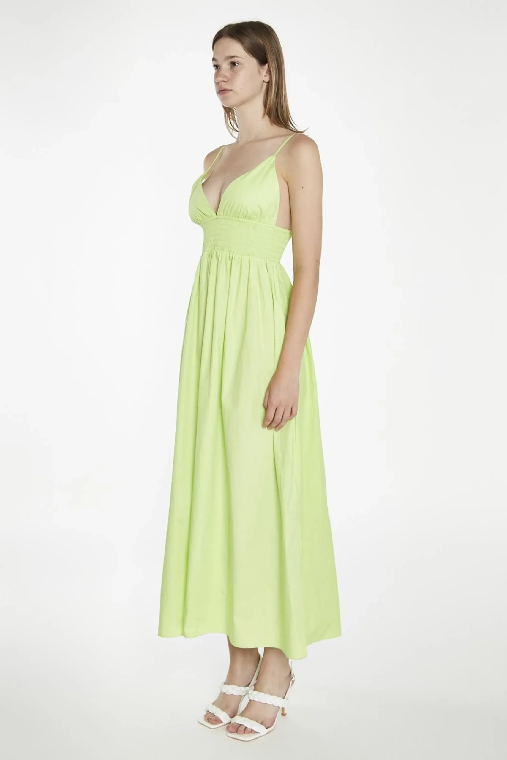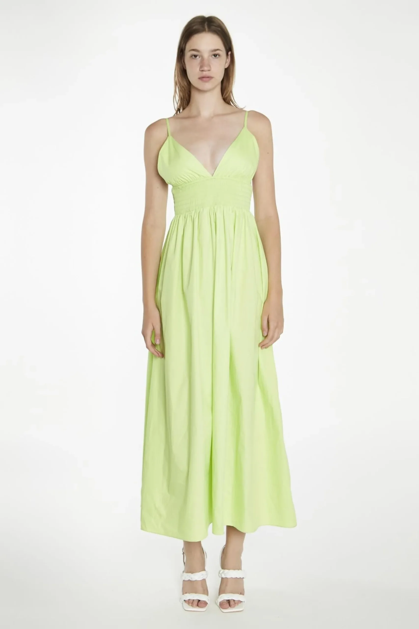 Glamorous Women’s Electric-Lime Shirred Waist Maxi-Dress. Soak up the summer sun in style with our Electric-Lime Shirred Waist Maxi-Dress! The flirty V-neck, customizable spaghetti straps, and twirl-worthy skirt make for an effortlessly chic look. And thanks to its lightweight cotton material, you’ll stay cool and comfy no matter where your summer adventures take you.