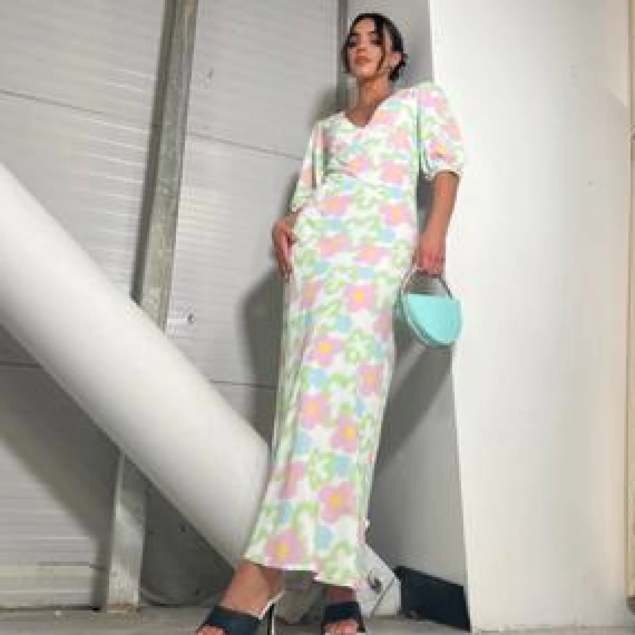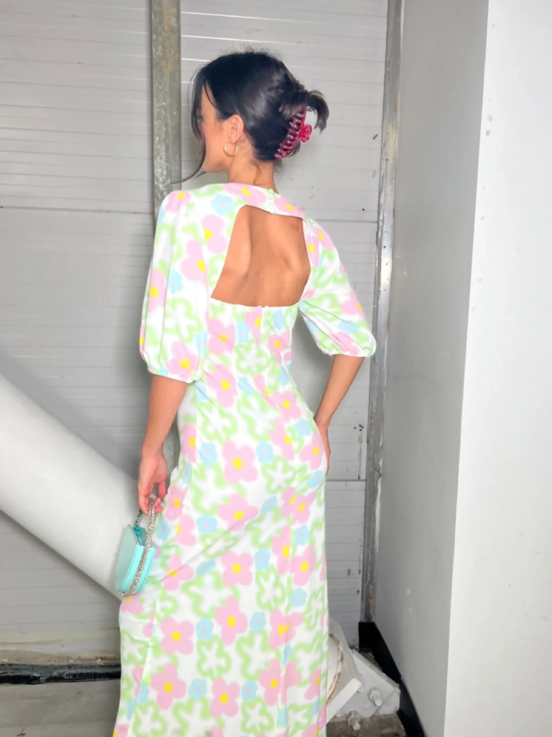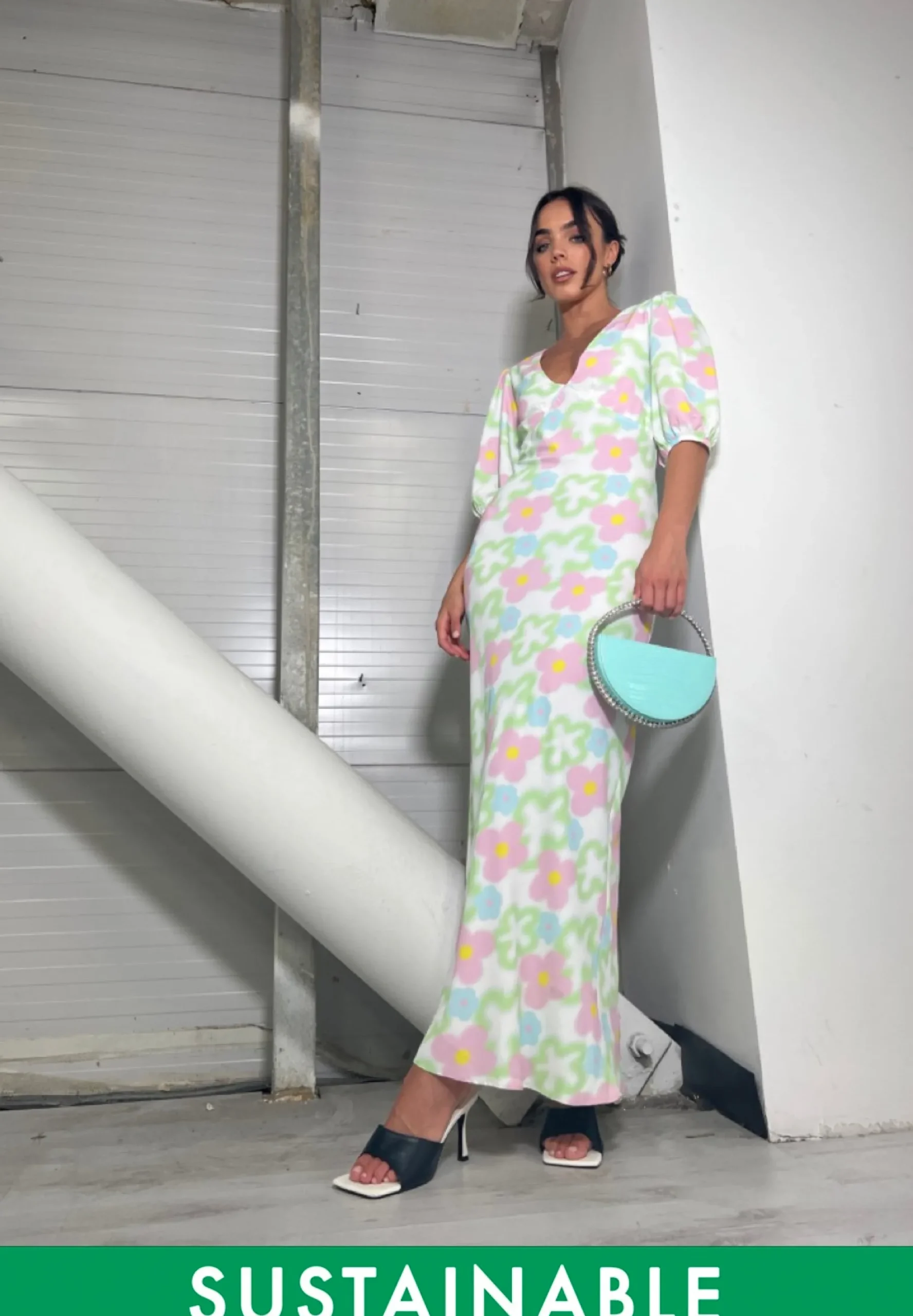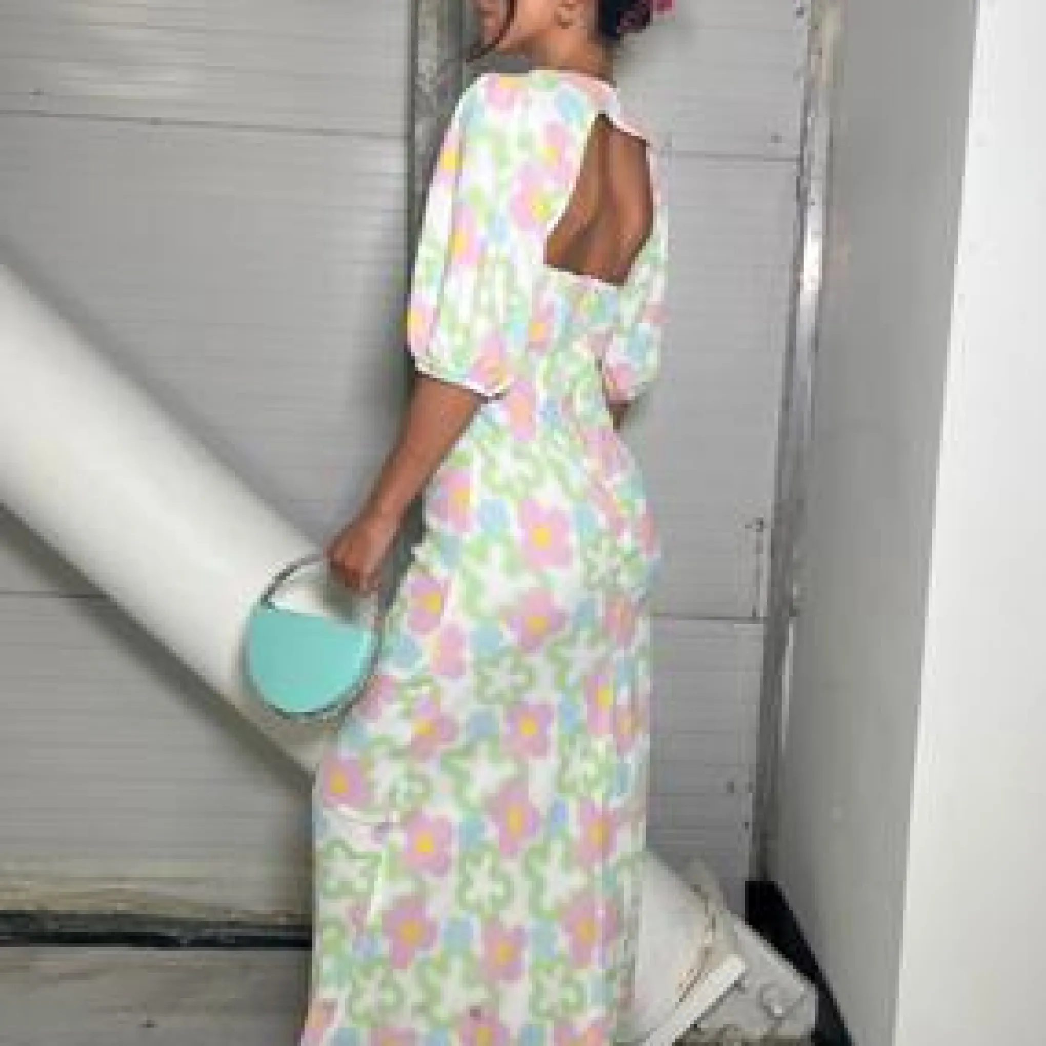 Glamorous Women’s Multi Blurred Floral Maxi Dress. Join our positive journey towards reducing the impact that fashion has on our planet with this sustainable maxi dress. Featuring puff sleeves with open back detail and a V-neckline in a gorgeous blurred floral print, we love this piece here at Glamorous! Elevate the look with some mule sandals and a cute strappy bag for an on-trend vibe.