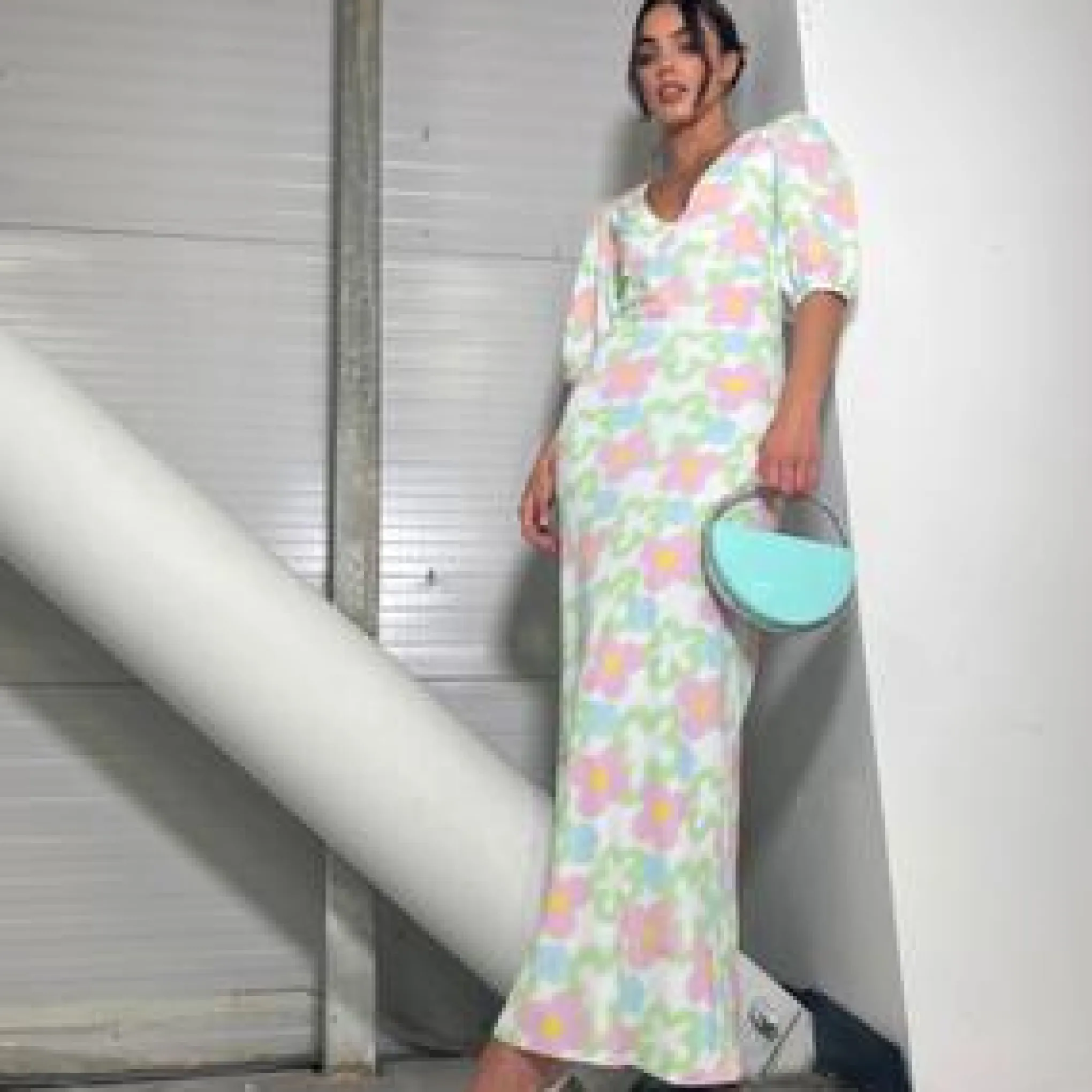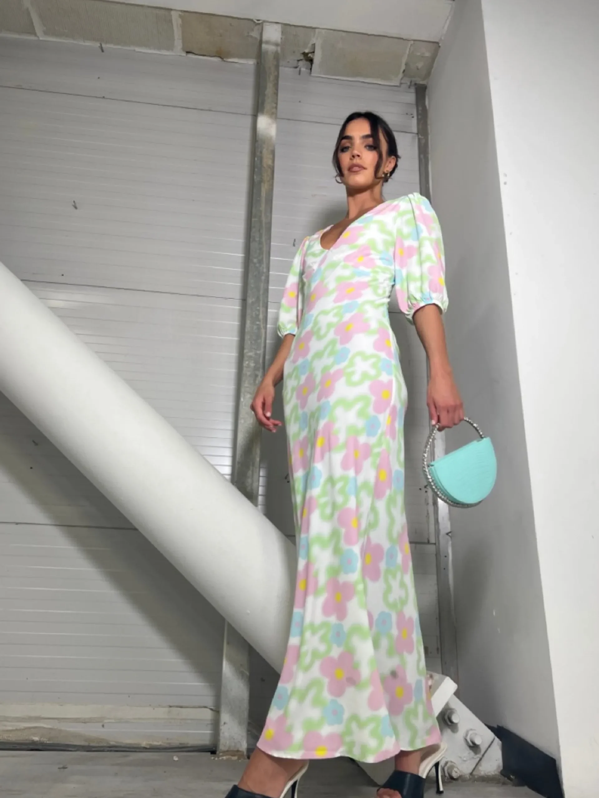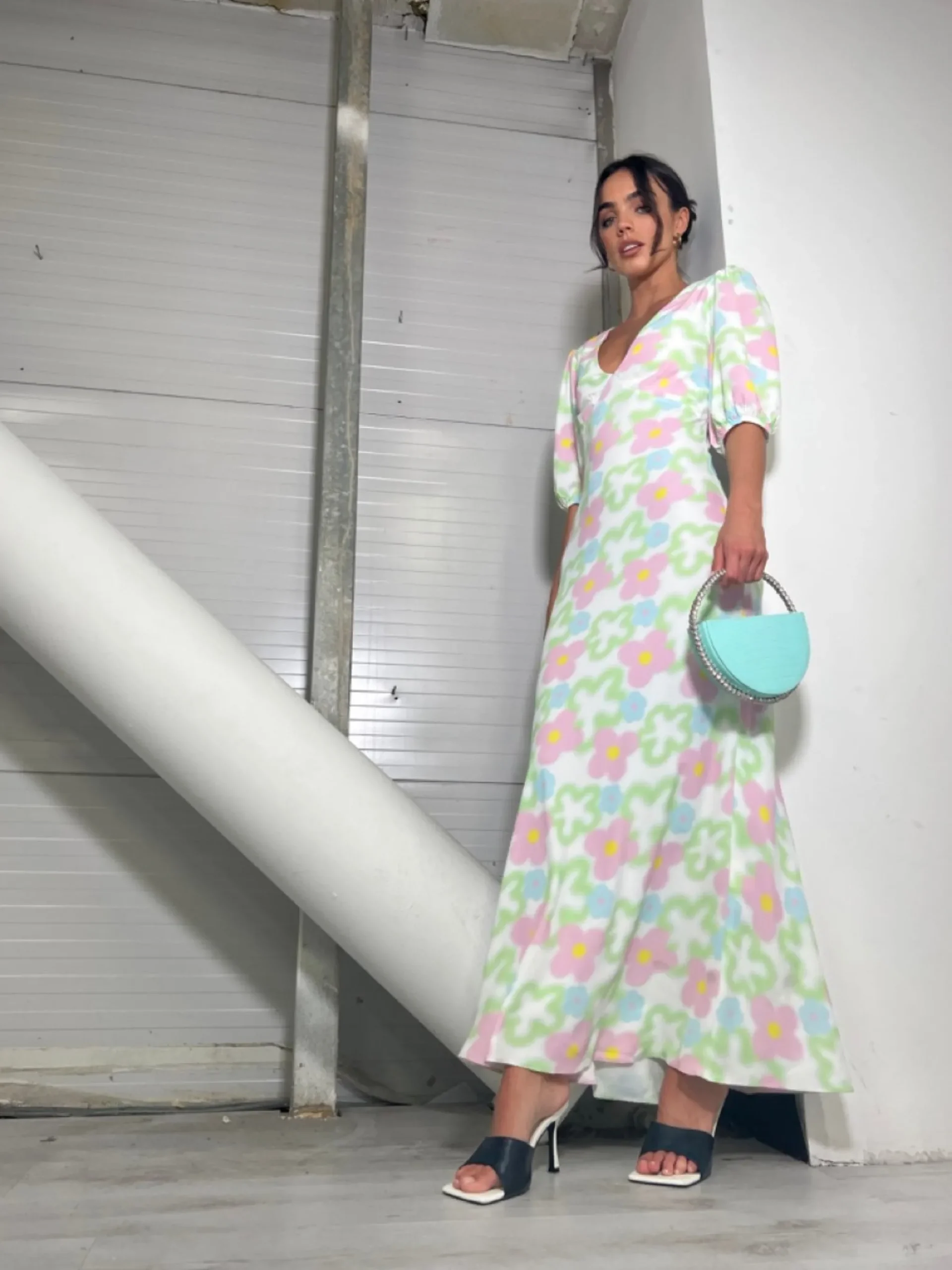 Glamorous Women’s Multi Blurred Floral Maxi Dress. Join our positive journey towards reducing the impact that fashion has on our planet with this sustainable maxi dress. Featuring puff sleeves with open back detail and a V-neckline in a gorgeous blurred floral print, we love this piece here at Glamorous! Elevate the look with some mule sandals and a cute strappy bag for an on-trend vibe.