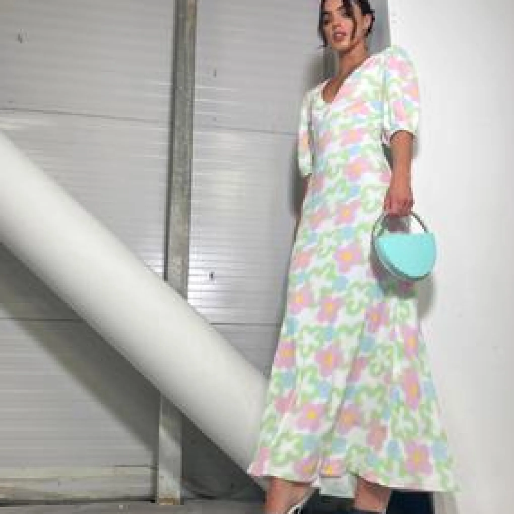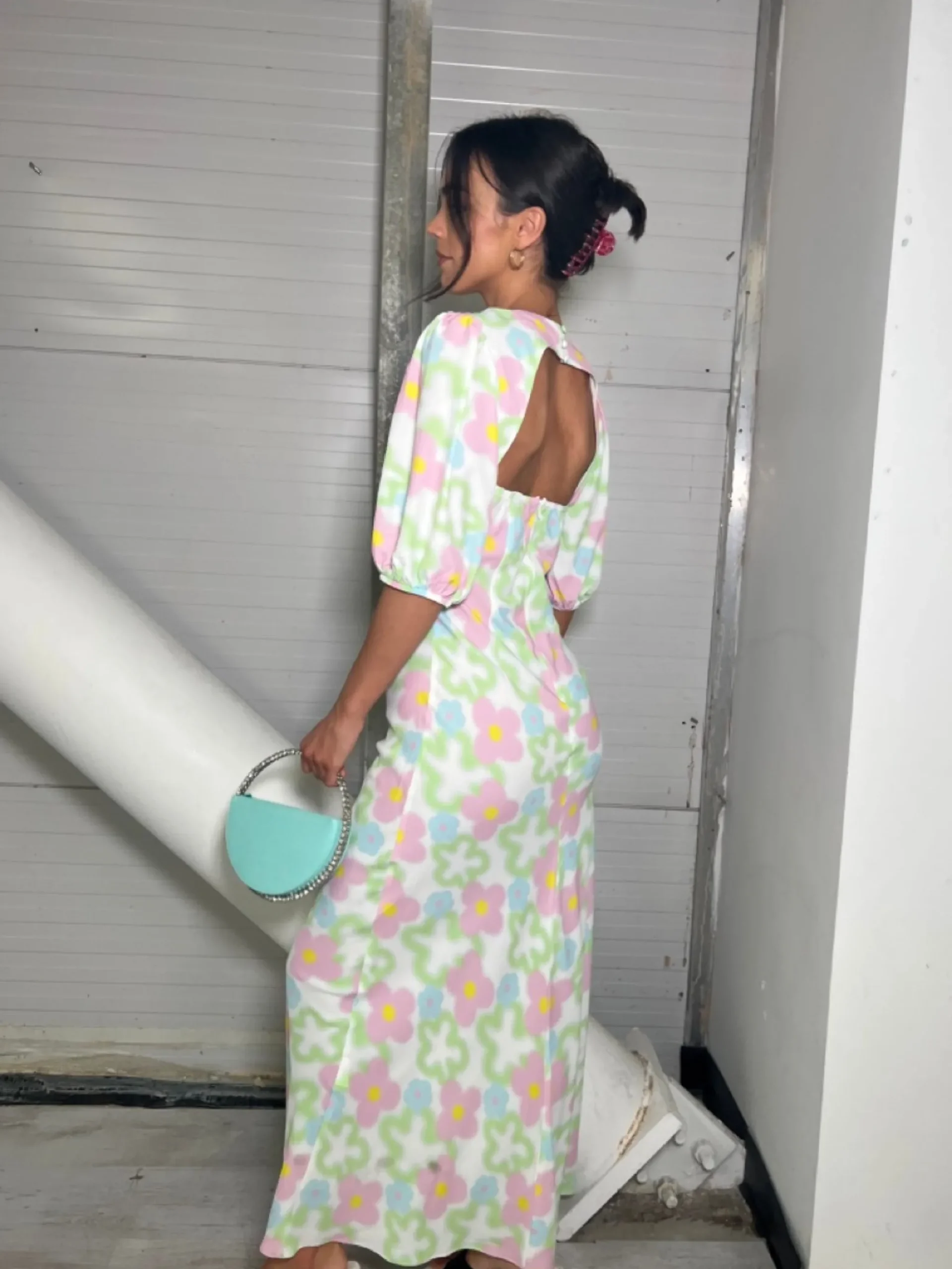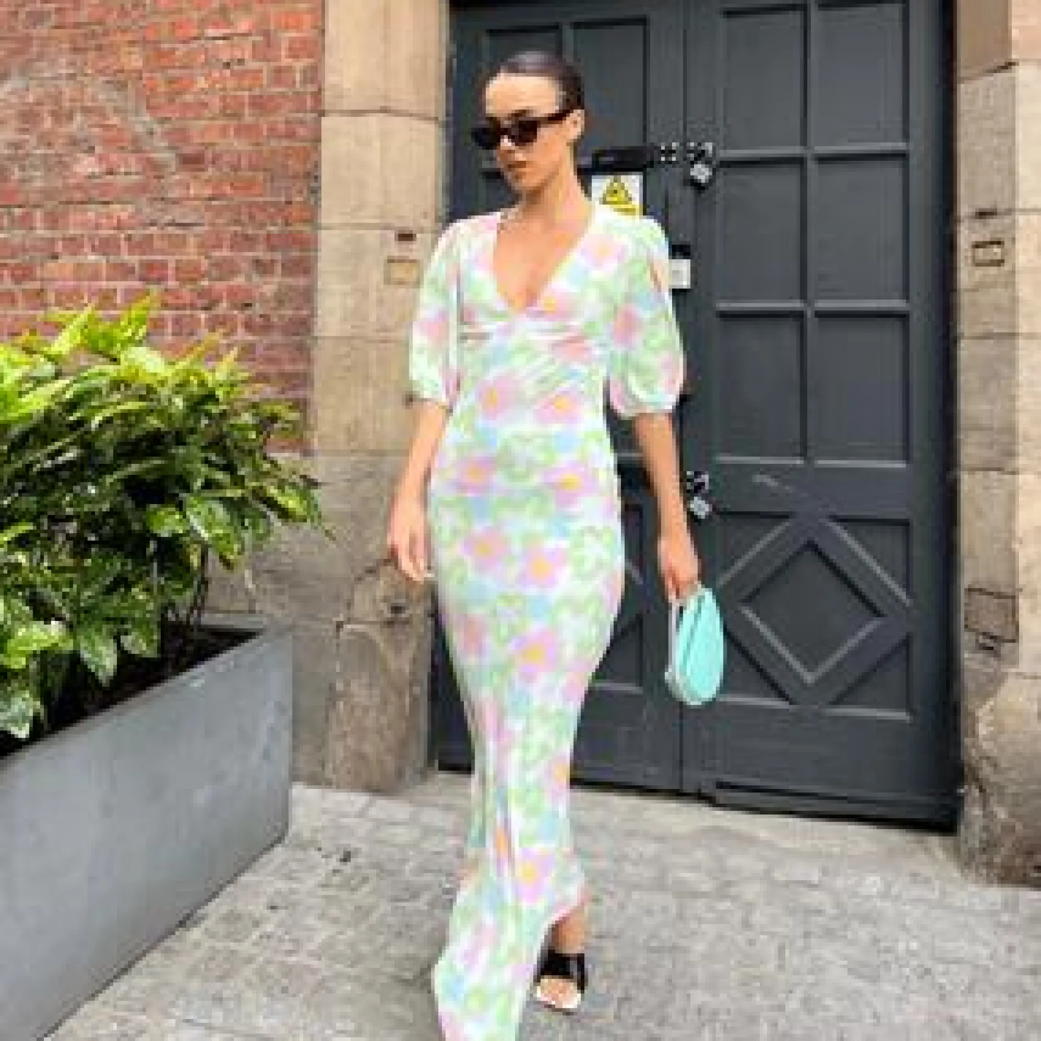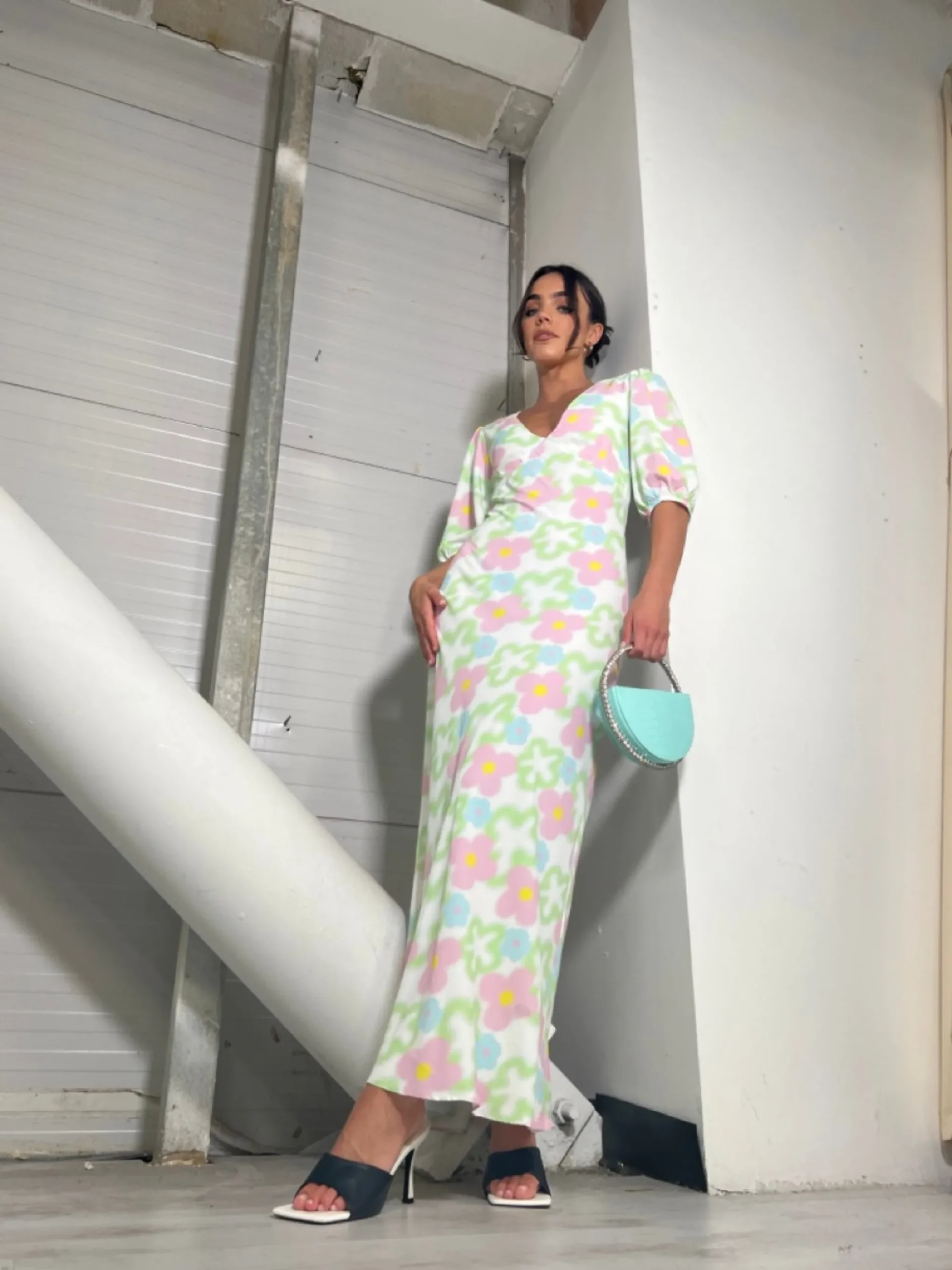 Glamorous Women’s Multi Blurred Floral Maxi Dress. Join our positive journey towards reducing the impact that fashion has on our planet with this sustainable maxi dress. Featuring puff sleeves with open back detail and a V-neckline in a gorgeous blurred floral print, we love this piece here at Glamorous! Elevate the look with some mule sandals and a cute strappy bag for an on-trend vibe.