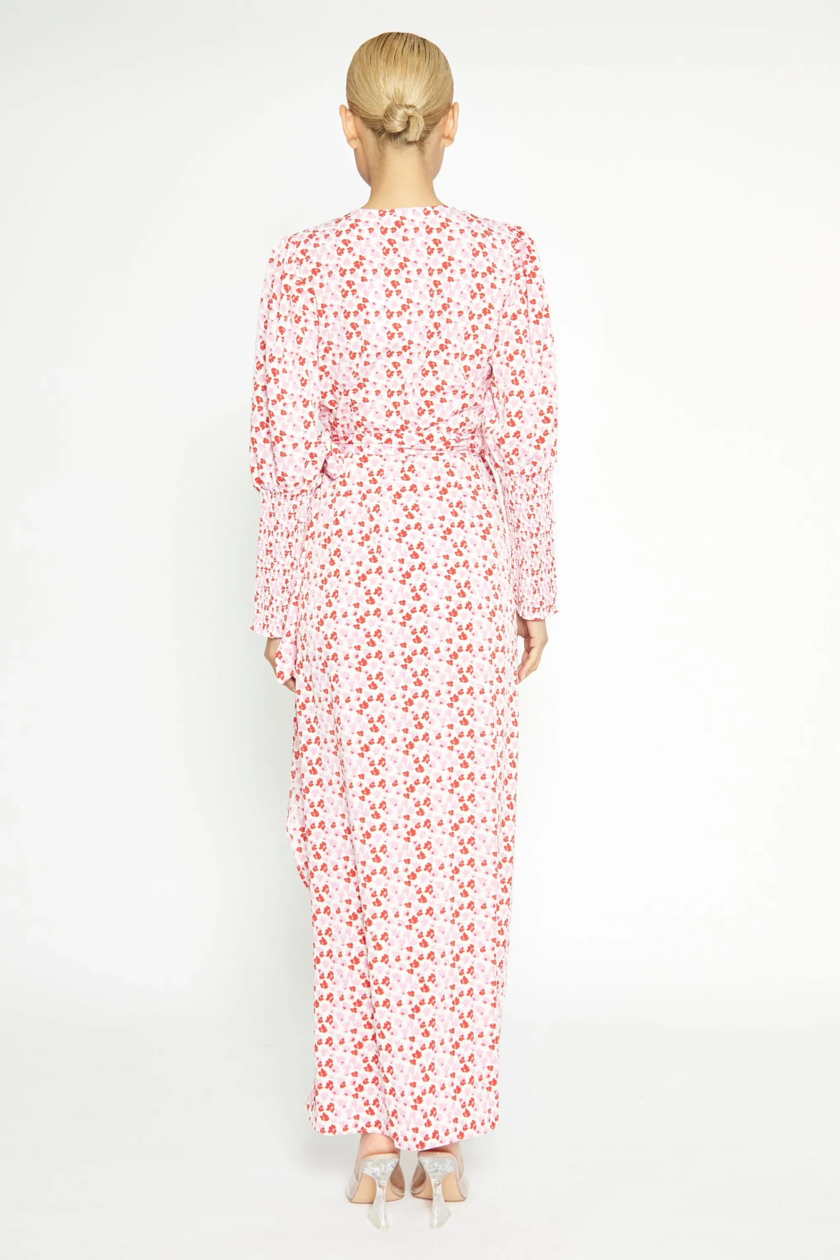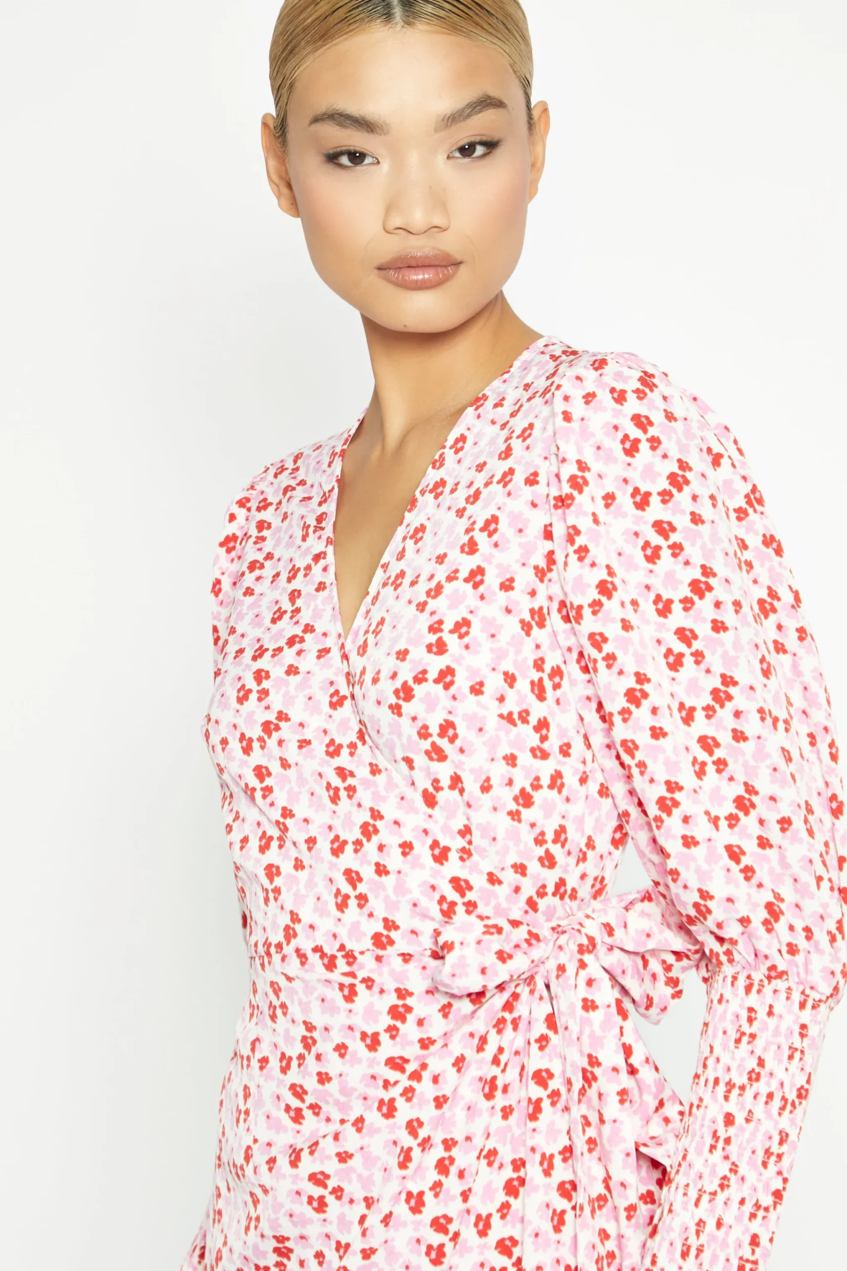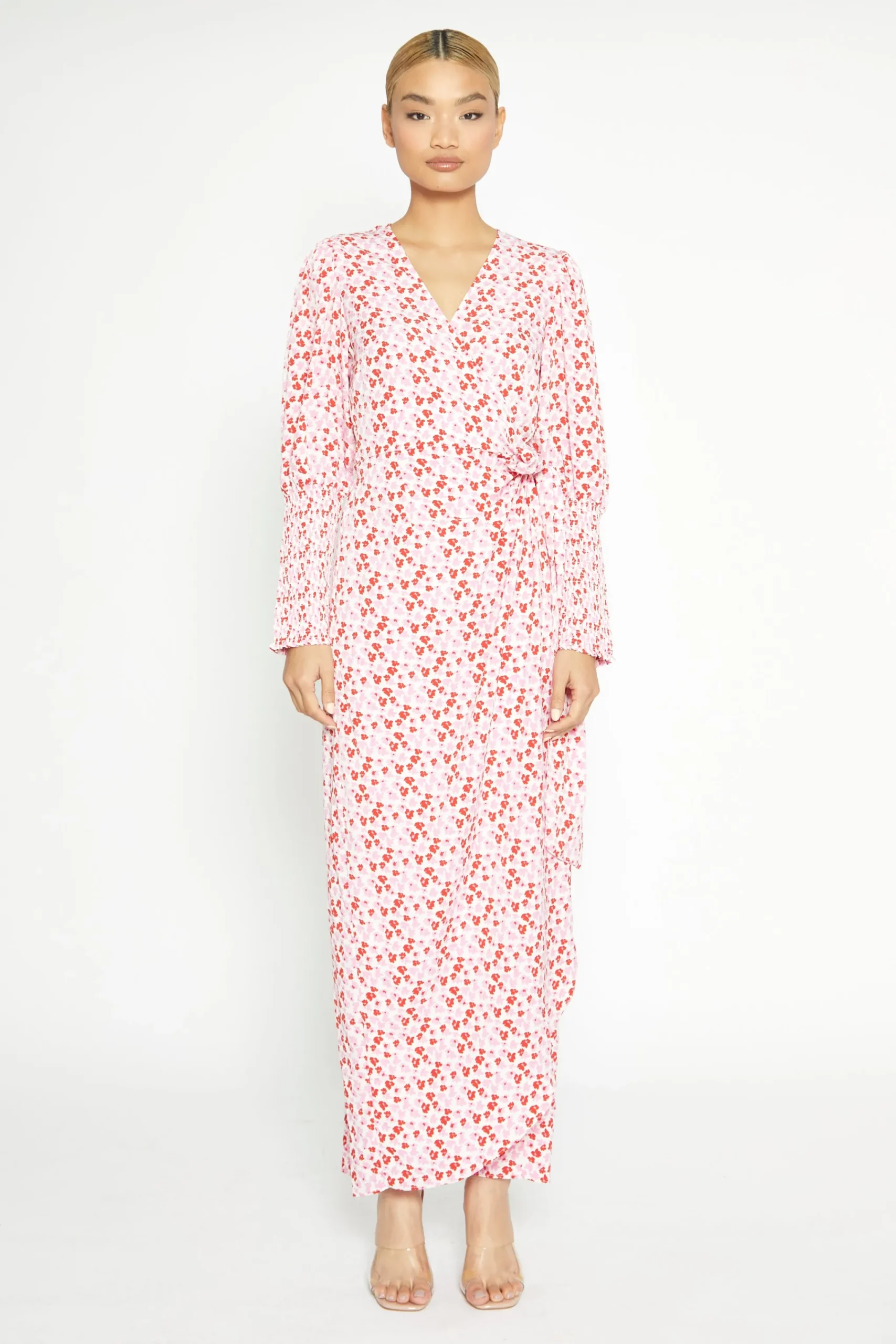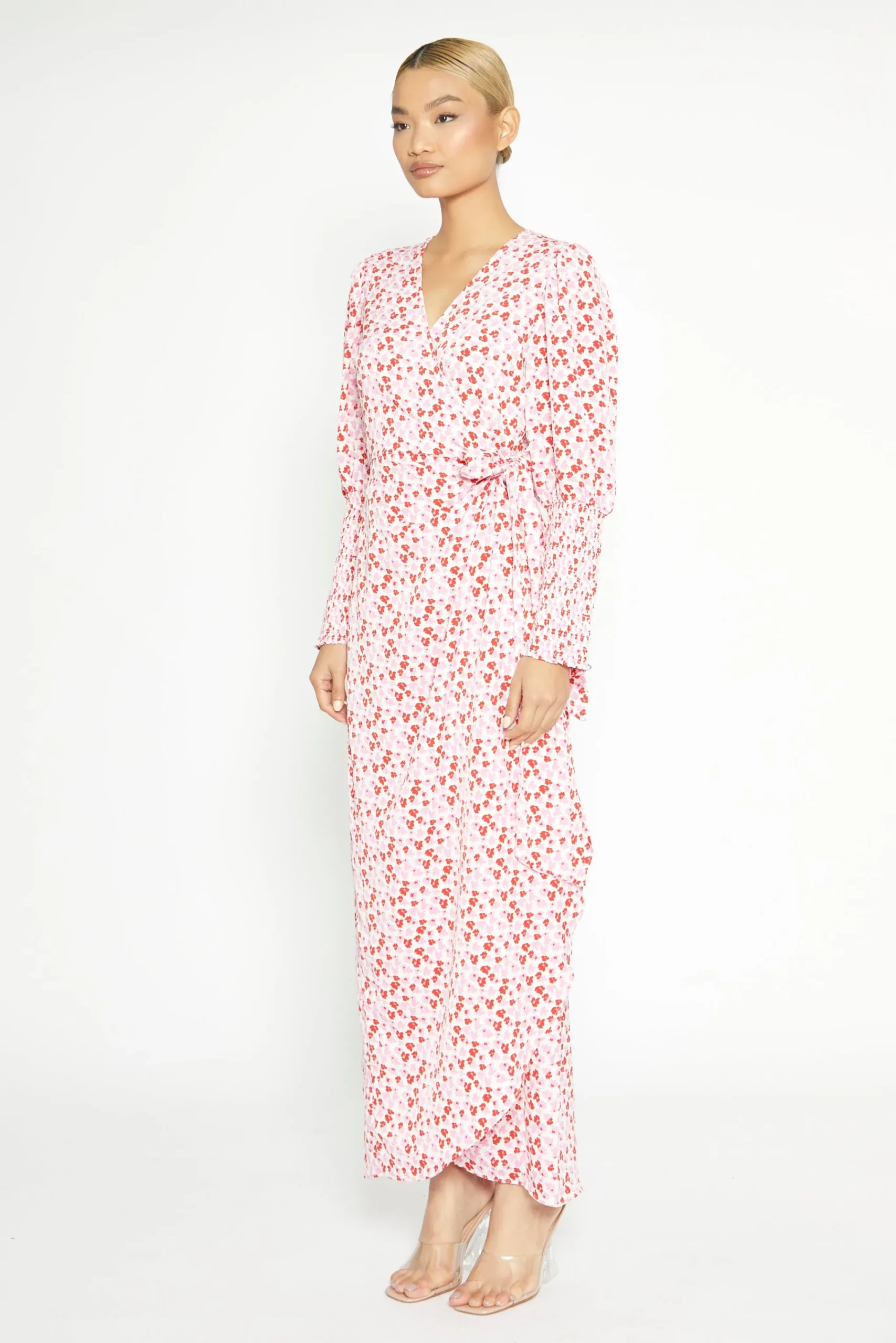 Glamorous Womens White-Red-Pink-Floral Wrap Maxi Dress. Add a pop of colour to your Winter wardrobe with this gorgeous maxi dress. Featuring long sleeves with shirred cuff detail, a wrap front design and tie waist detail, this dress will have heads turning. Take the look from day to night with a pair of strappy heels.