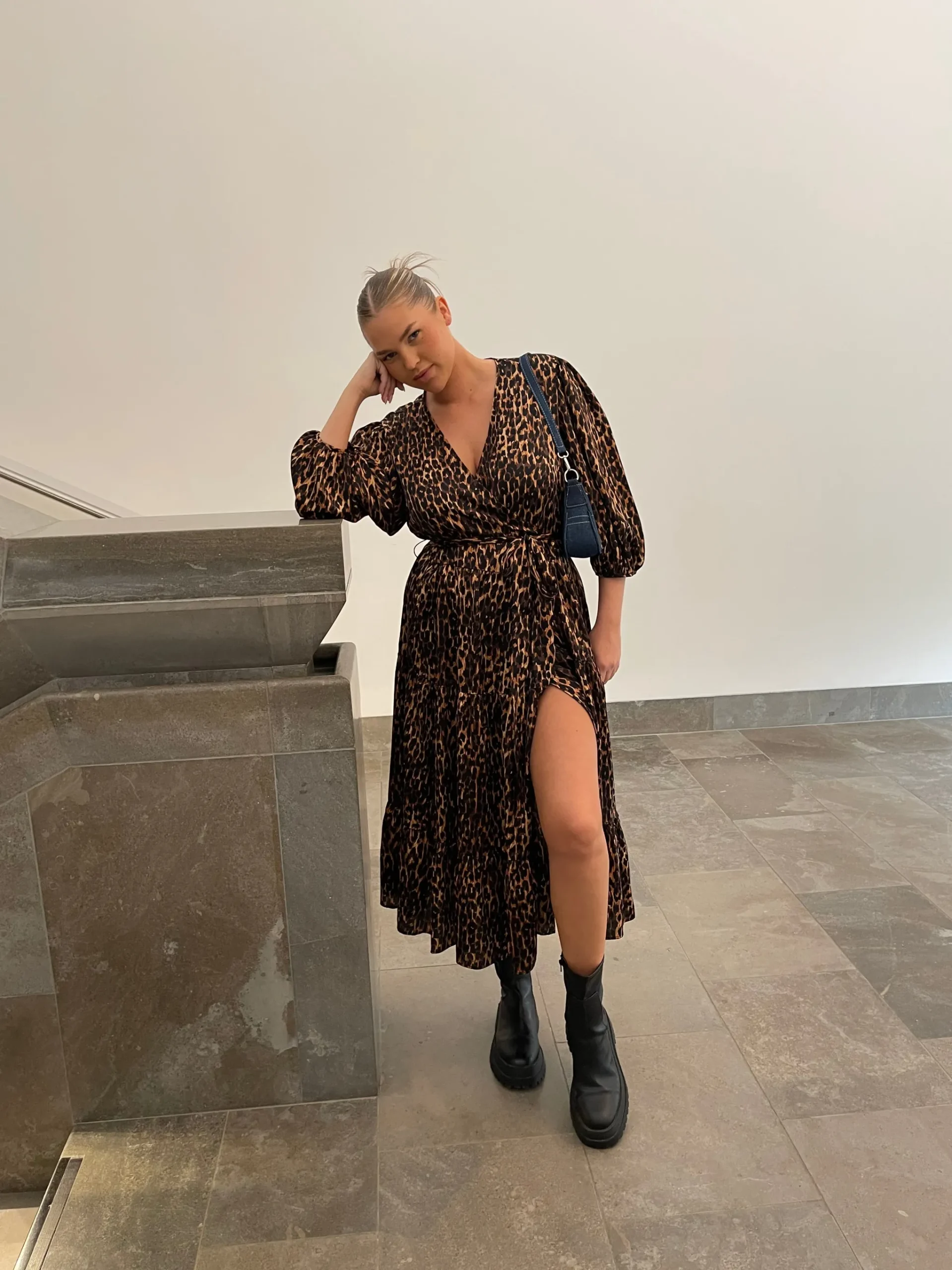 Glamorous Curve Women’s Brown Leopard Tiered Wrap Midaxi-Dress. This Midaxi dress is the perfect versatile piece that you will be wearing all year round! Featuring a flattering wrap front design and tiered skirt, this dress is will hug you in all the right places. Pair this with your favourite heeled boots for a stunning day to night look!