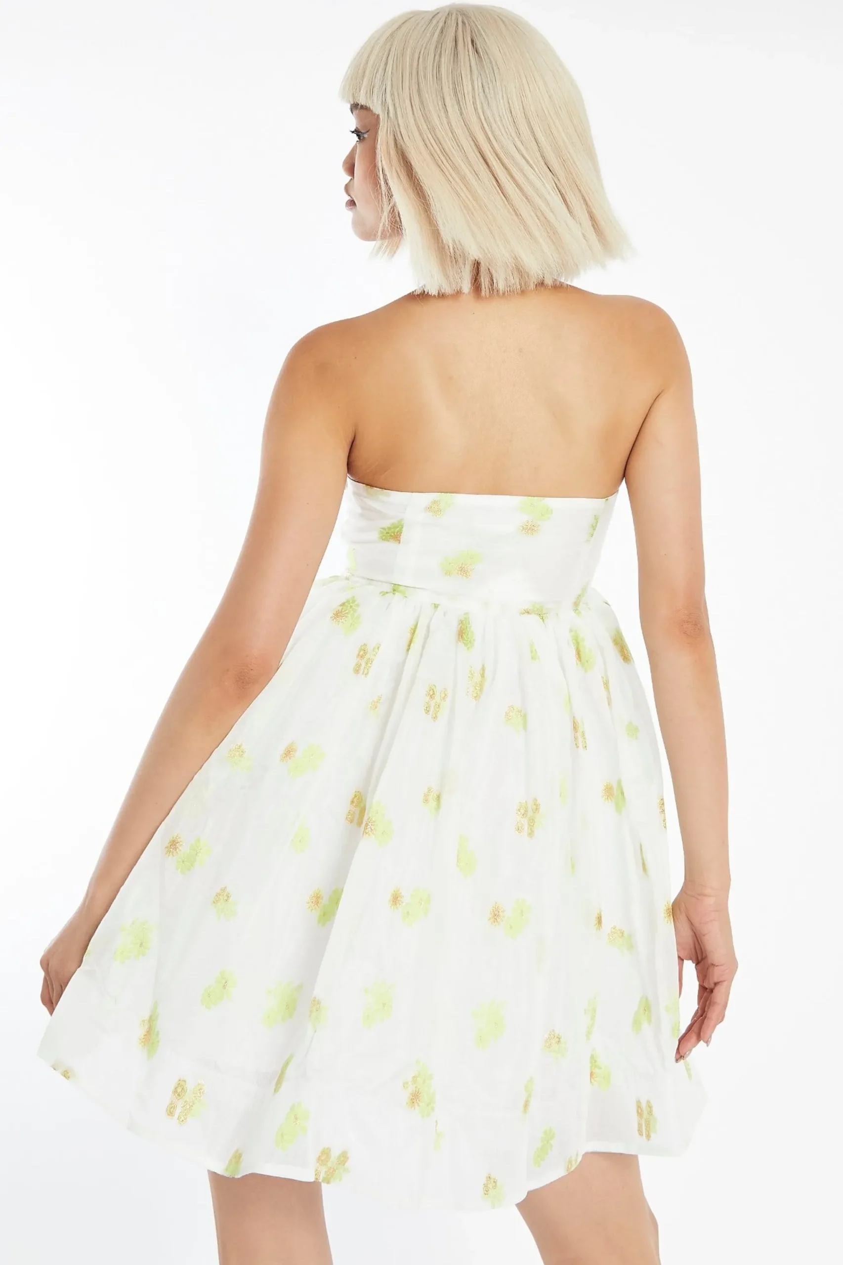 Glamorous Collection Womens Lime-Gold Floral Organza Empire-Line Puff Skirt Mini-Dress. This gorgeous dress is an absolute show stopper! Featuring an empire line design, with a puff statement skirt, this luxe Lime & Gold Floral organza mini dress is the perfect way to elevate your look for year. Pair with some high heels and gold accessories for glam look!