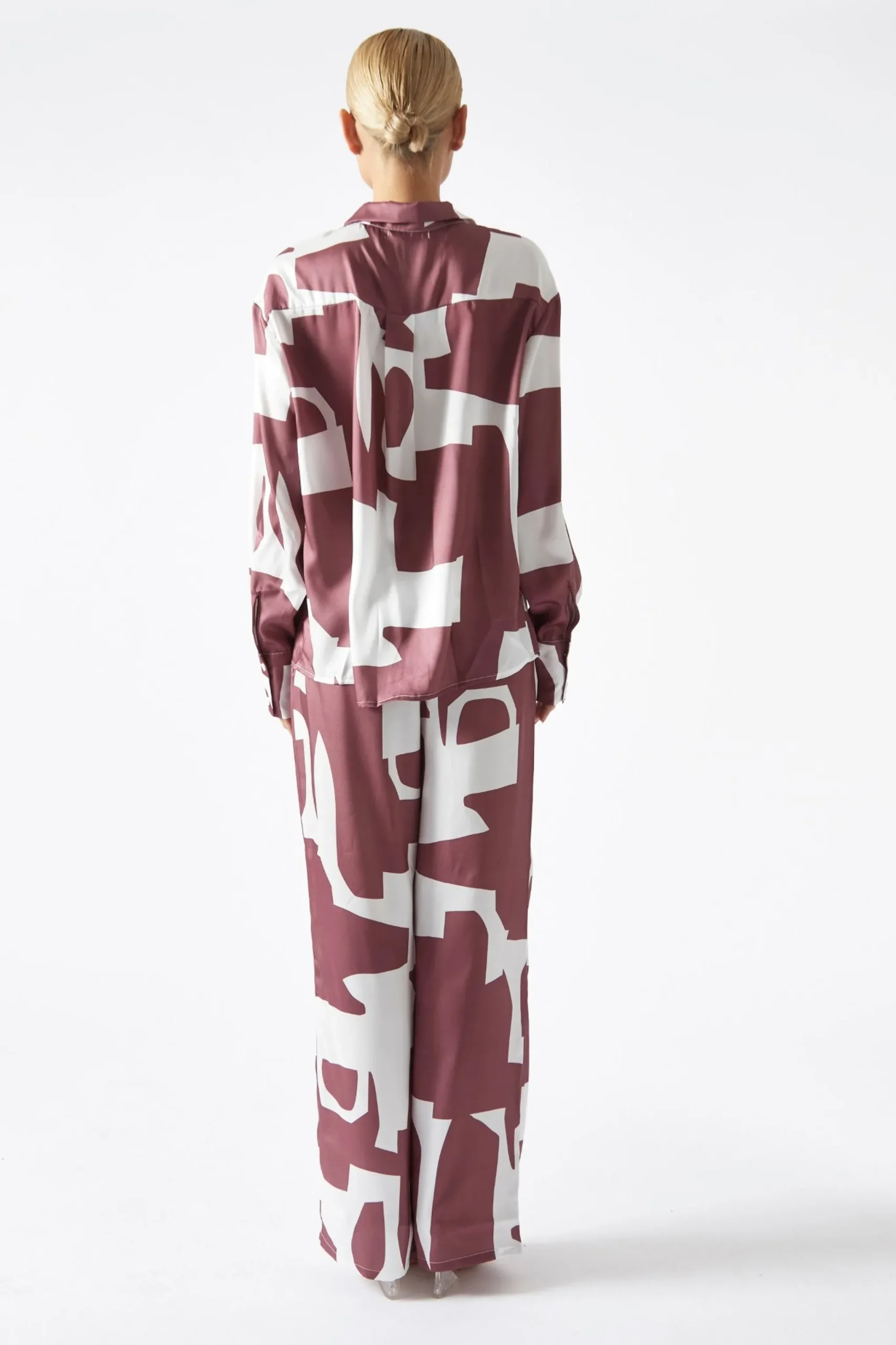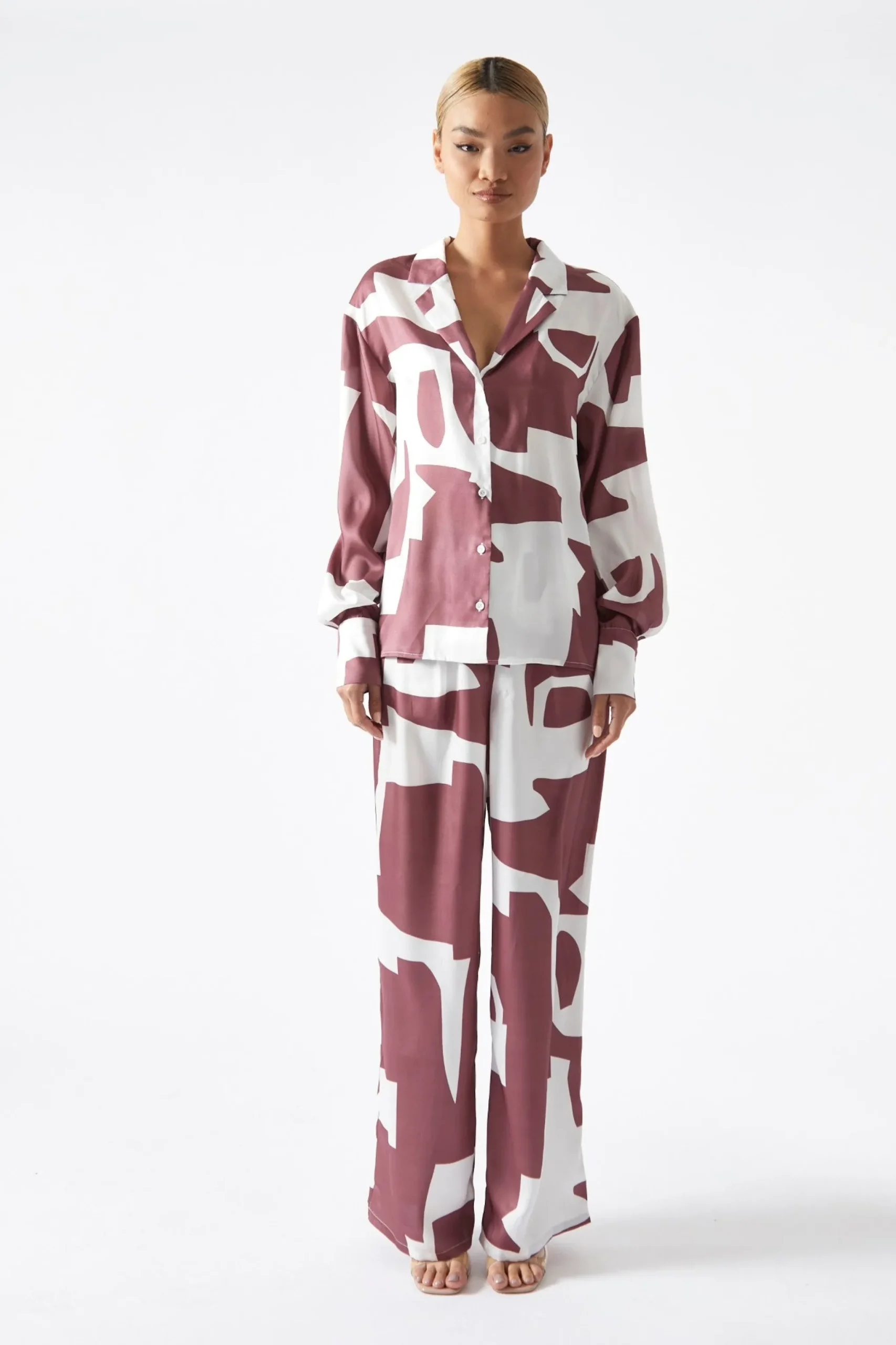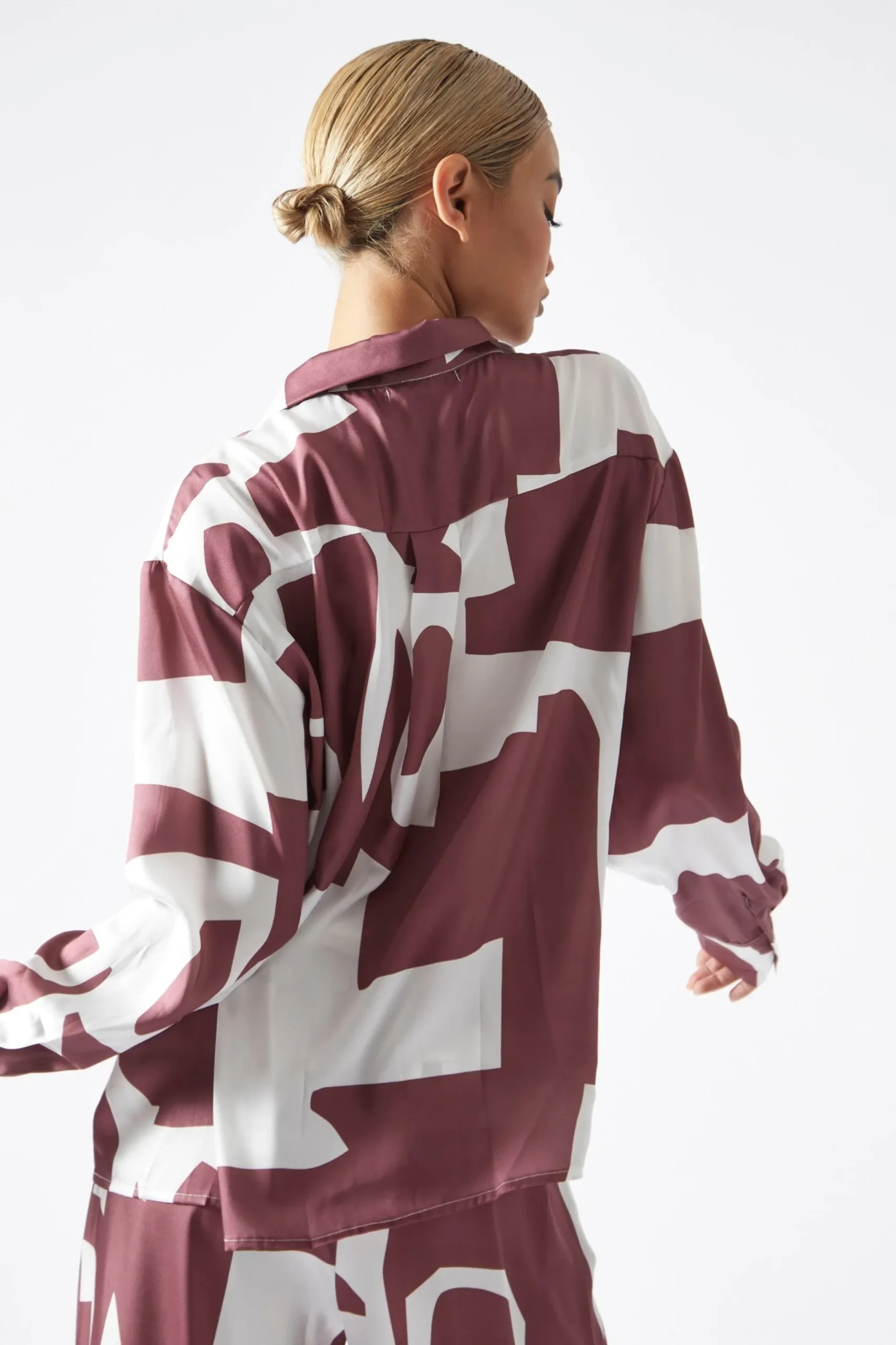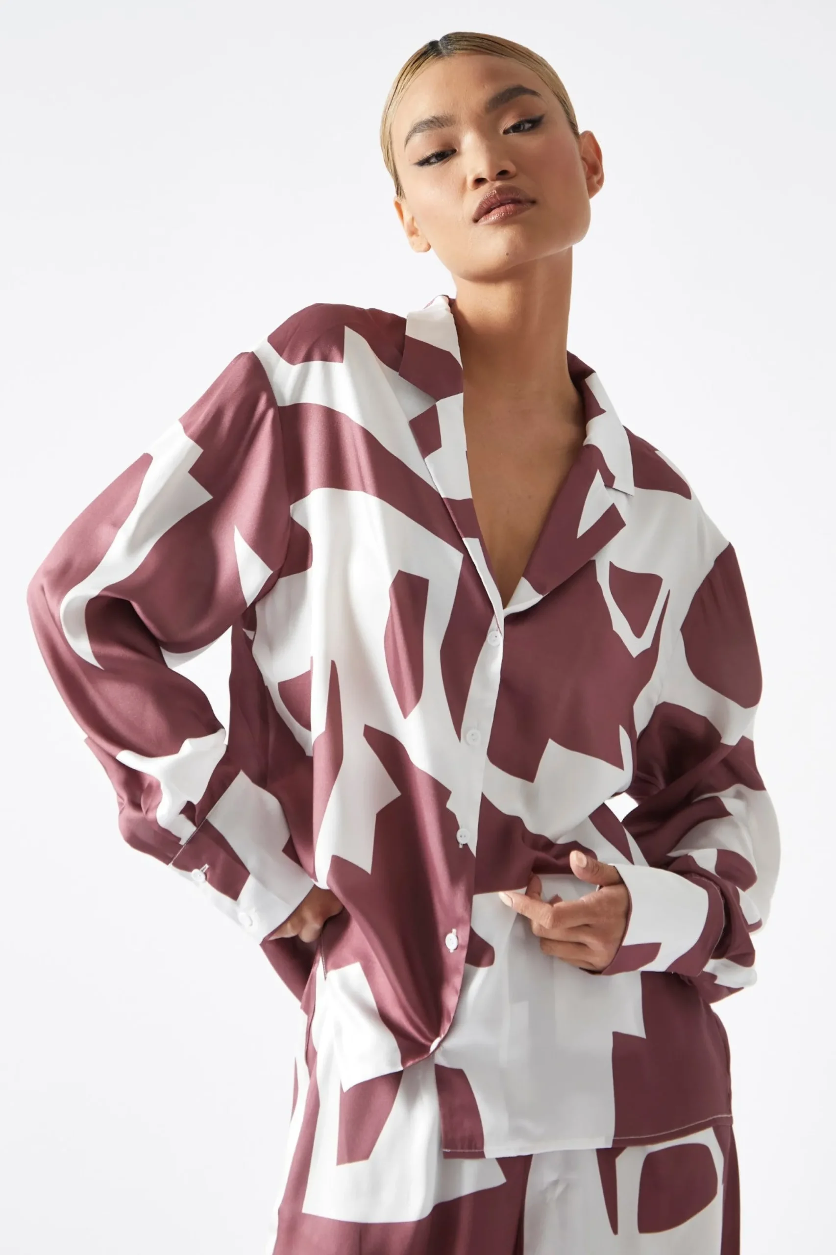 Glamorous Studio Womens Dark-Rose Abstract Oversized Shirt. An oversized shirt should be in everyones wardrobe!. Featuring a classic button-down collared shirt silhouette, youll love the unique print design and comfy oversized fit. Complete the look with the matching trousers for sophisticated date night fit!