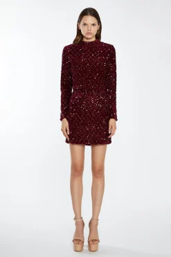 Glamorous Womens Port-Red Velvet-Sequin High Neck -Top. Opt for sequins with this top. Featuring a skinny fit, long sleeves and high neck, this top is perfect for drinks out with the girls. Make sure to pair with the matching skirt for a stand out co-ord look.