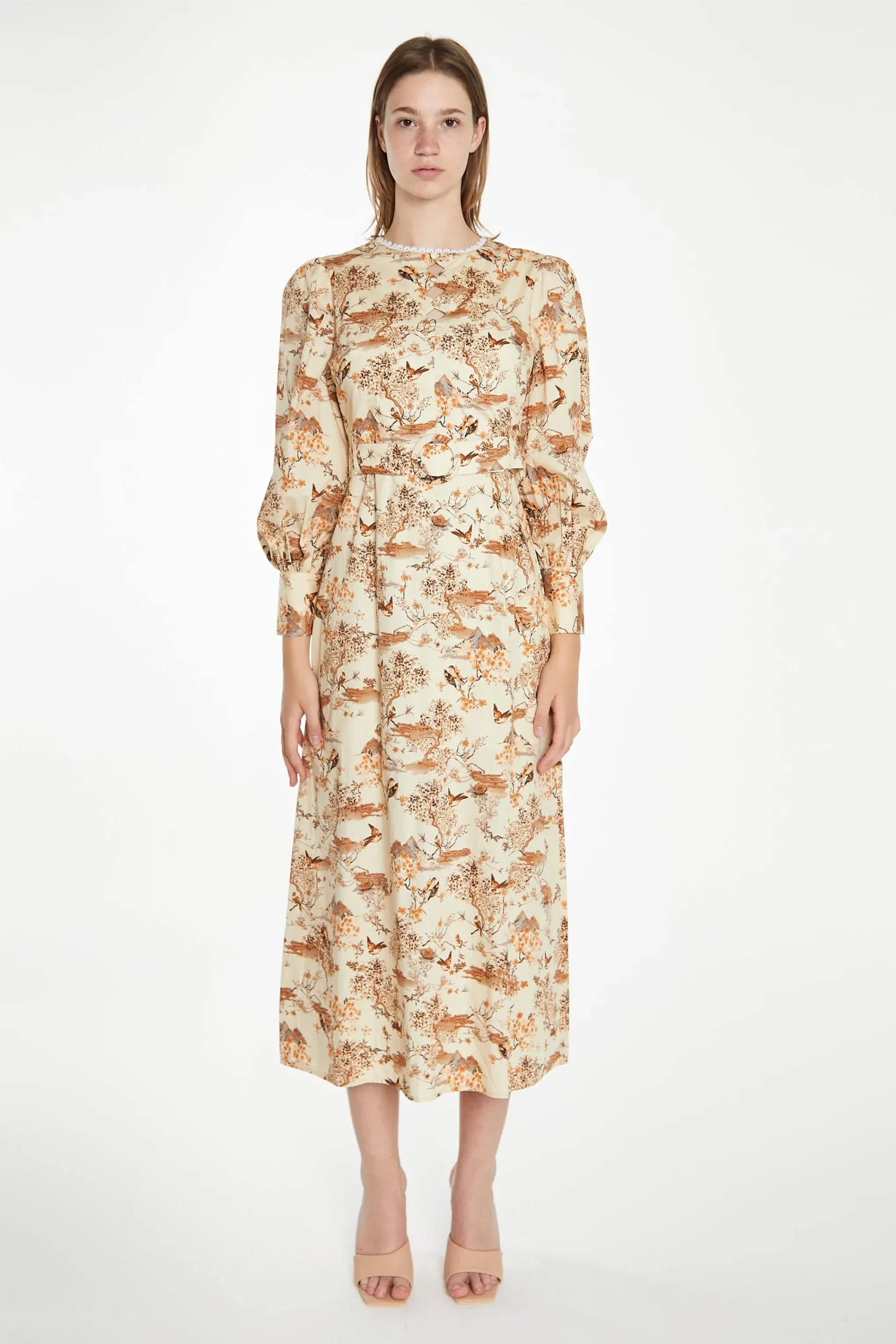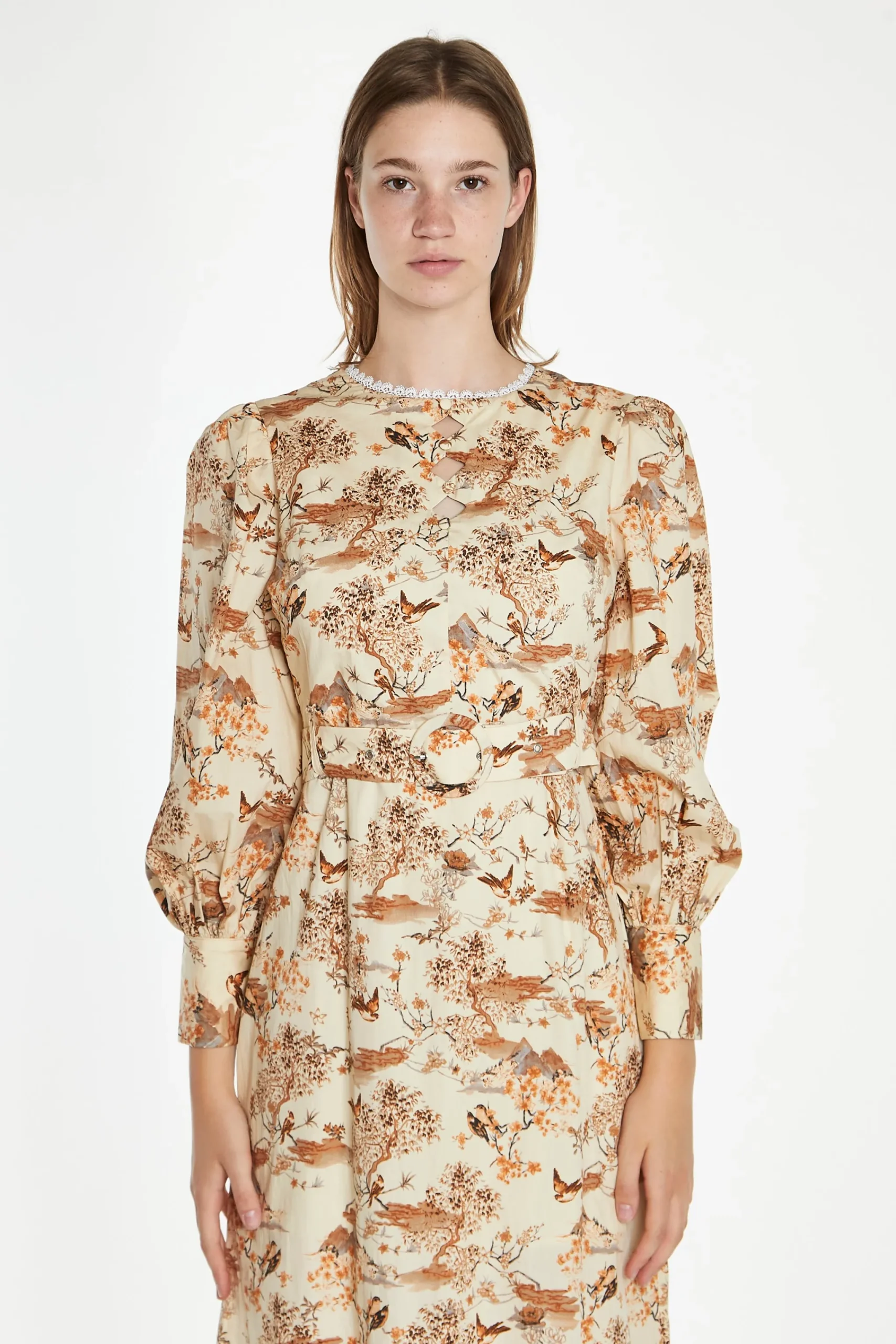 Glamorous Modesty Womens Tan Multi Blossom Long-Sleeve Belted Maxi-Dress. This stunning maxi dress showcasing a unique blossom print is destined for your wardrobe this Spring. Featuring cut-out and belted detail with long sleeves in a maxi length, we love this statement piece here at Glamorous. Add some heeled ankle boots for the ultimate look.