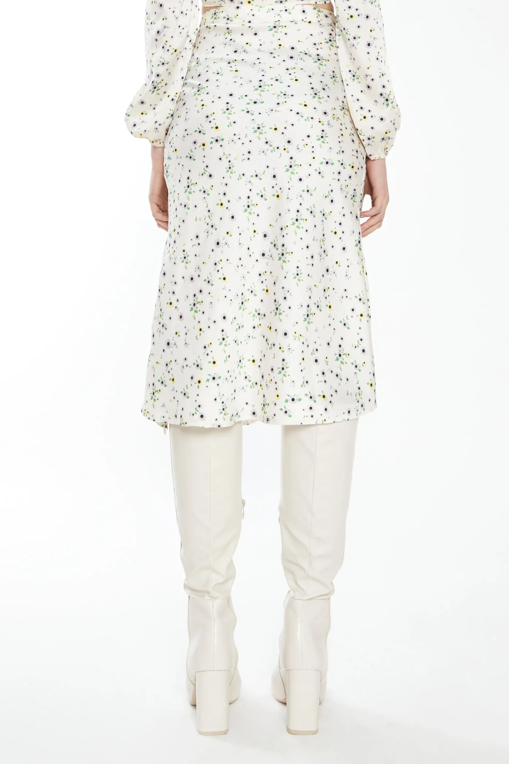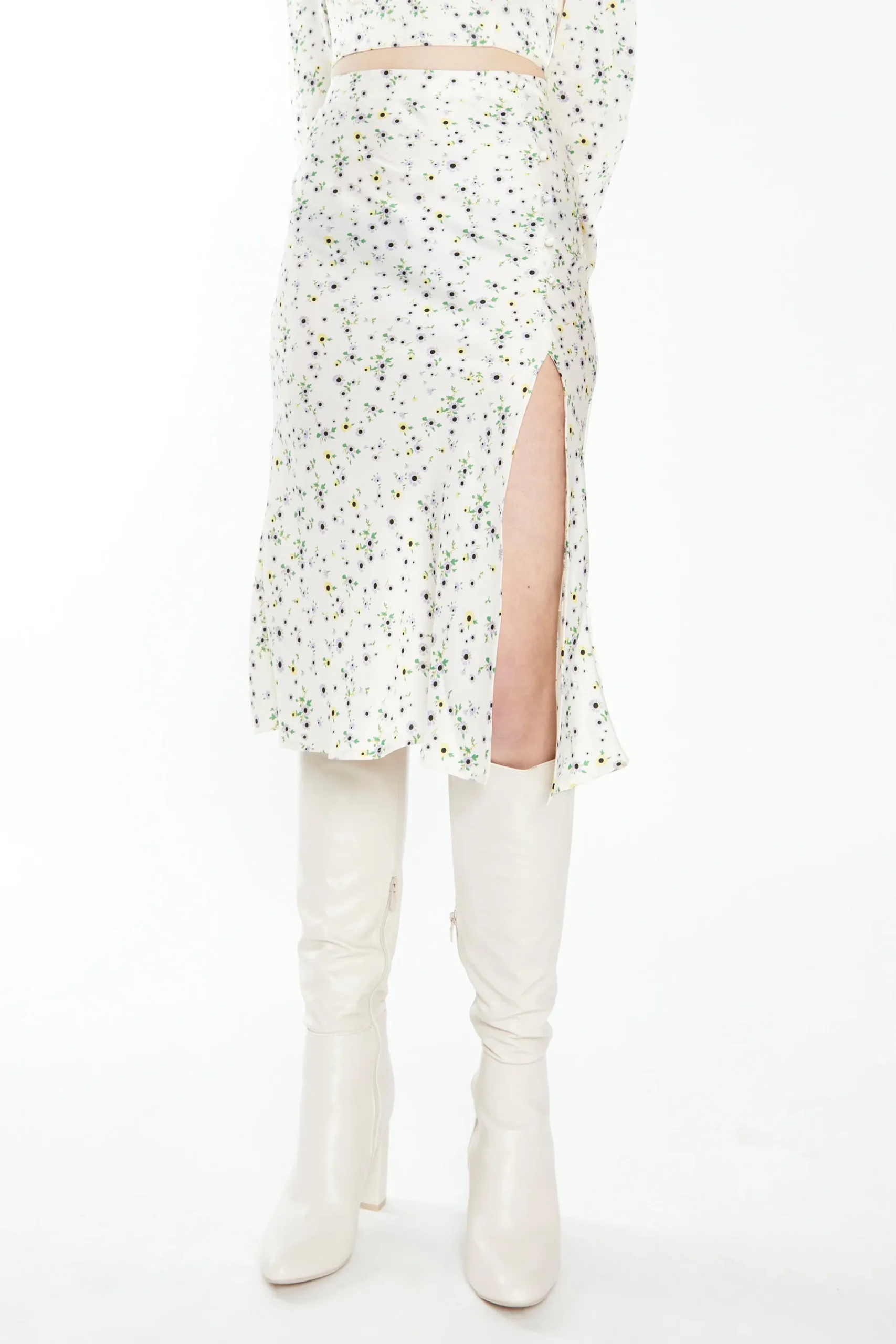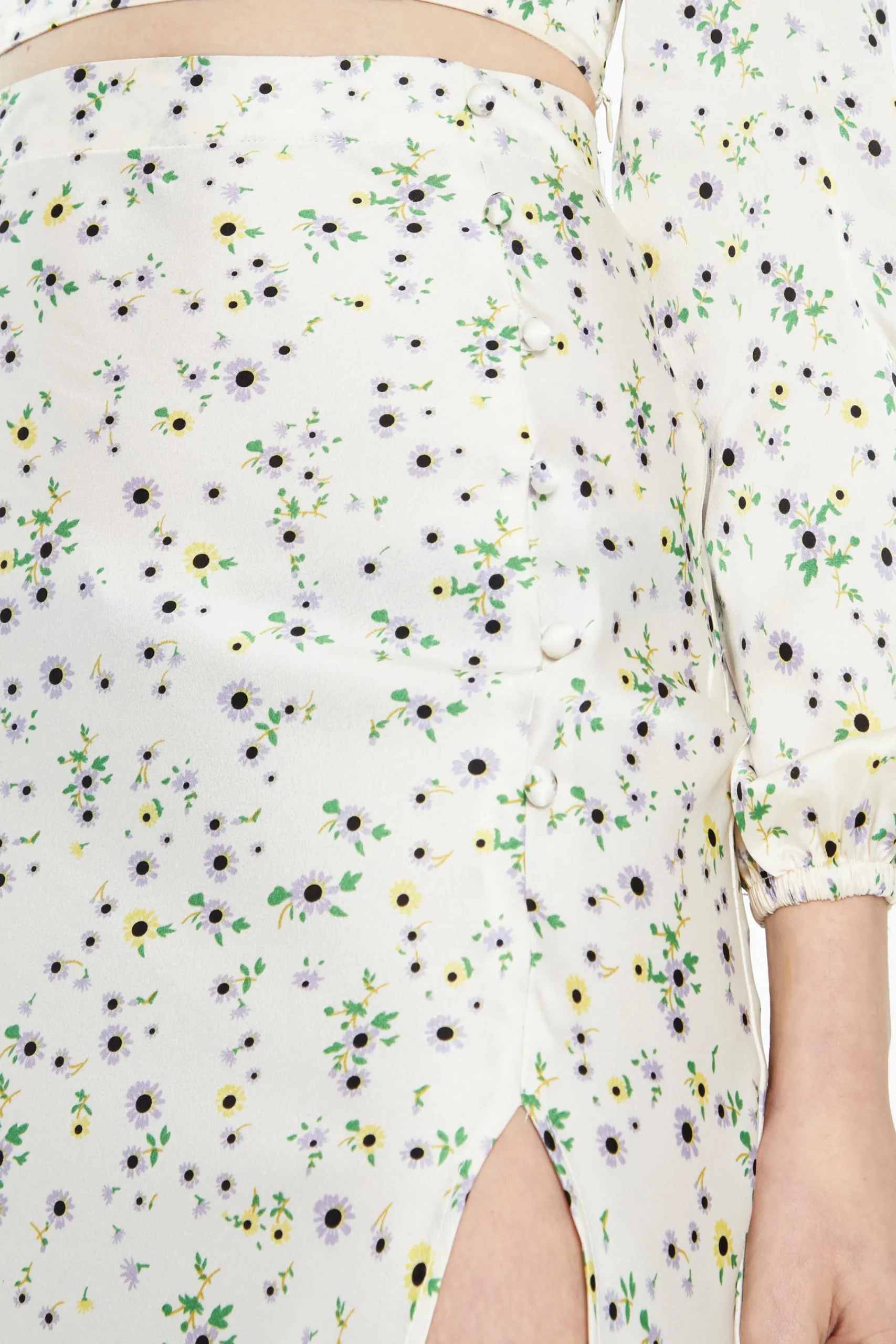 Glamorous Cream Lilac Floral Midi Skirt with Front Side Split. This staple piece is a must have for your summer wardrobe. Featuring a front side split and midi length, we love this piece here at Glamorous. Looks great teamed with chunky boots or dressed up with your favourite heels for cocktails with the girls. Can be worn with the matching top.