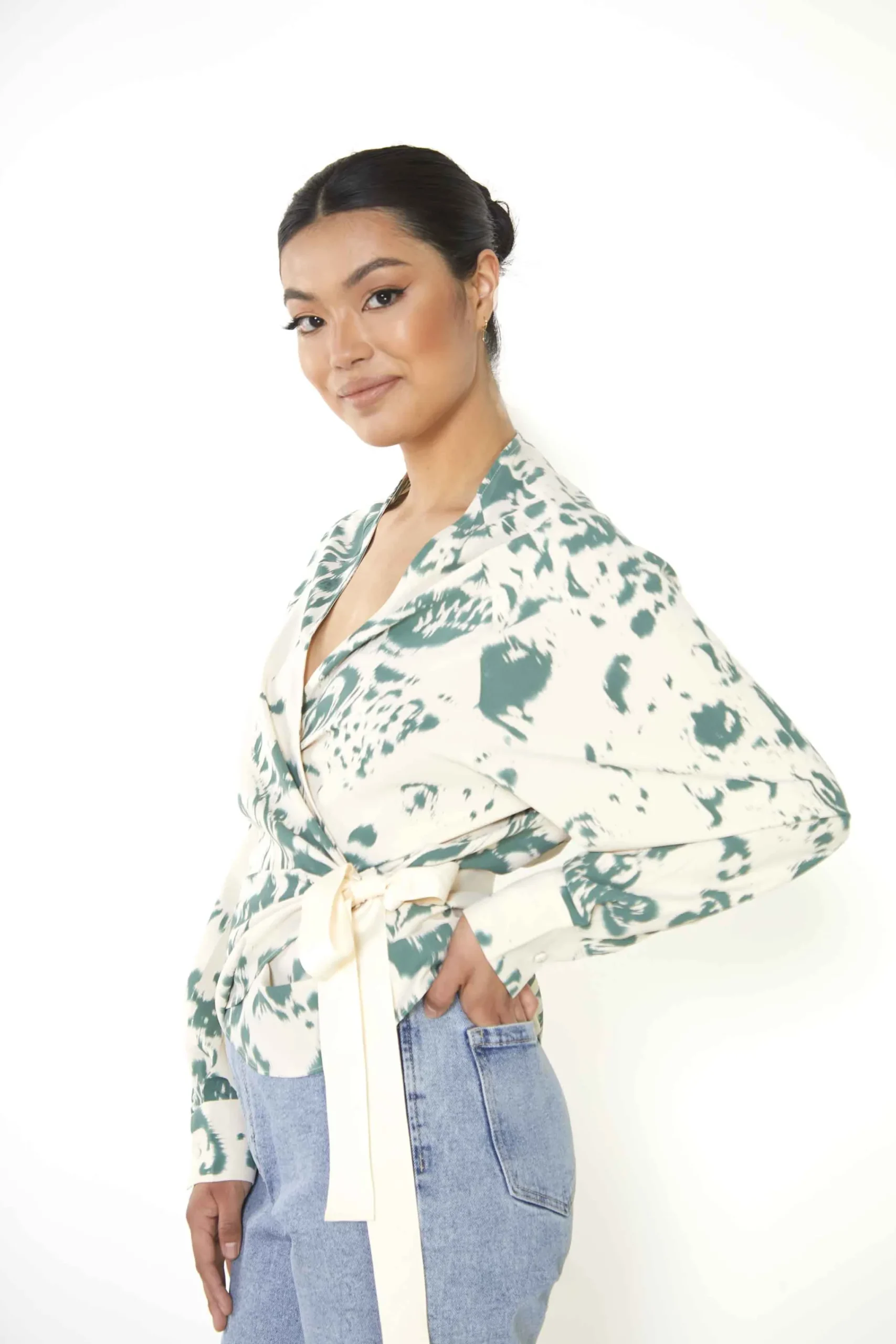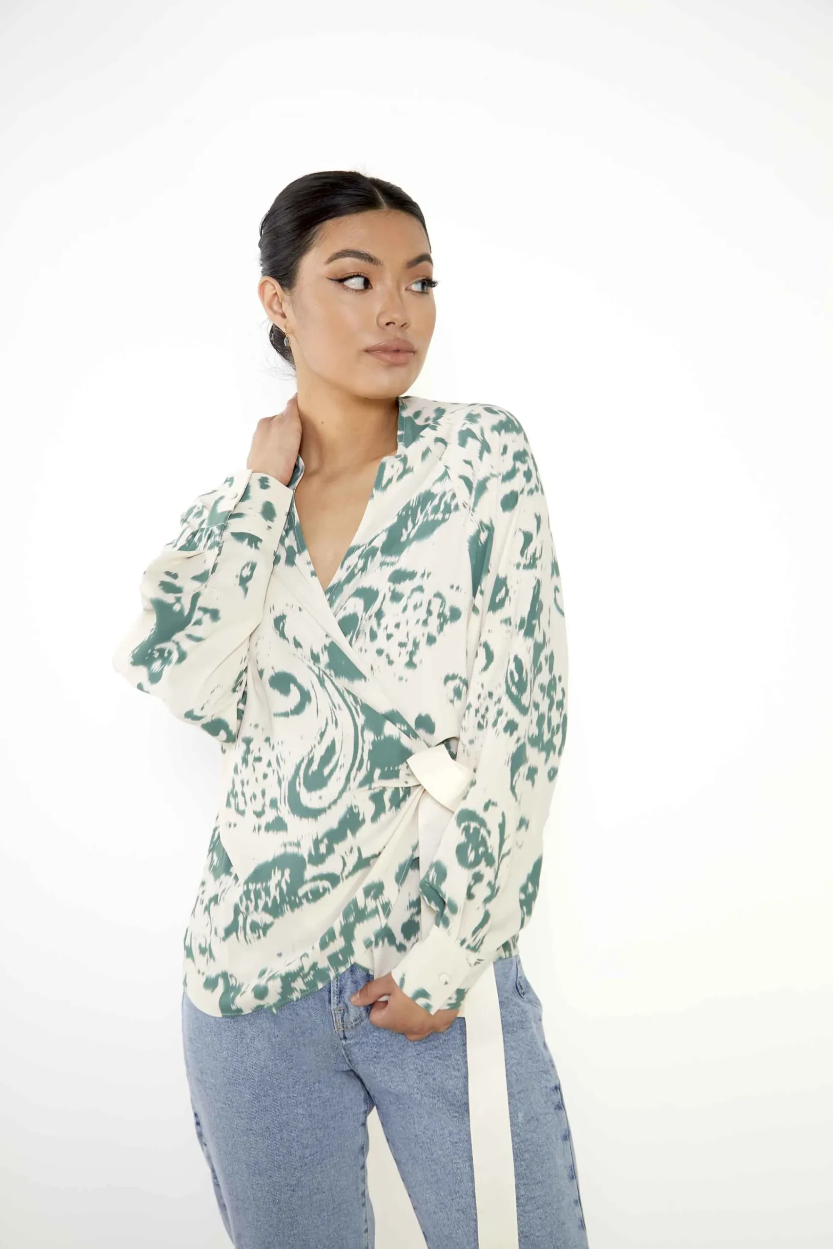 Glamorous Cream Green Abstract Oversized Blouse with Wrap Tie. Fashion forward and feminine, this abstract print blouse is the perfect daytime look. Featuring a wrap tie and oversized fit, we love this piece here at Glamorous Looks great teamed with jeans and boots.