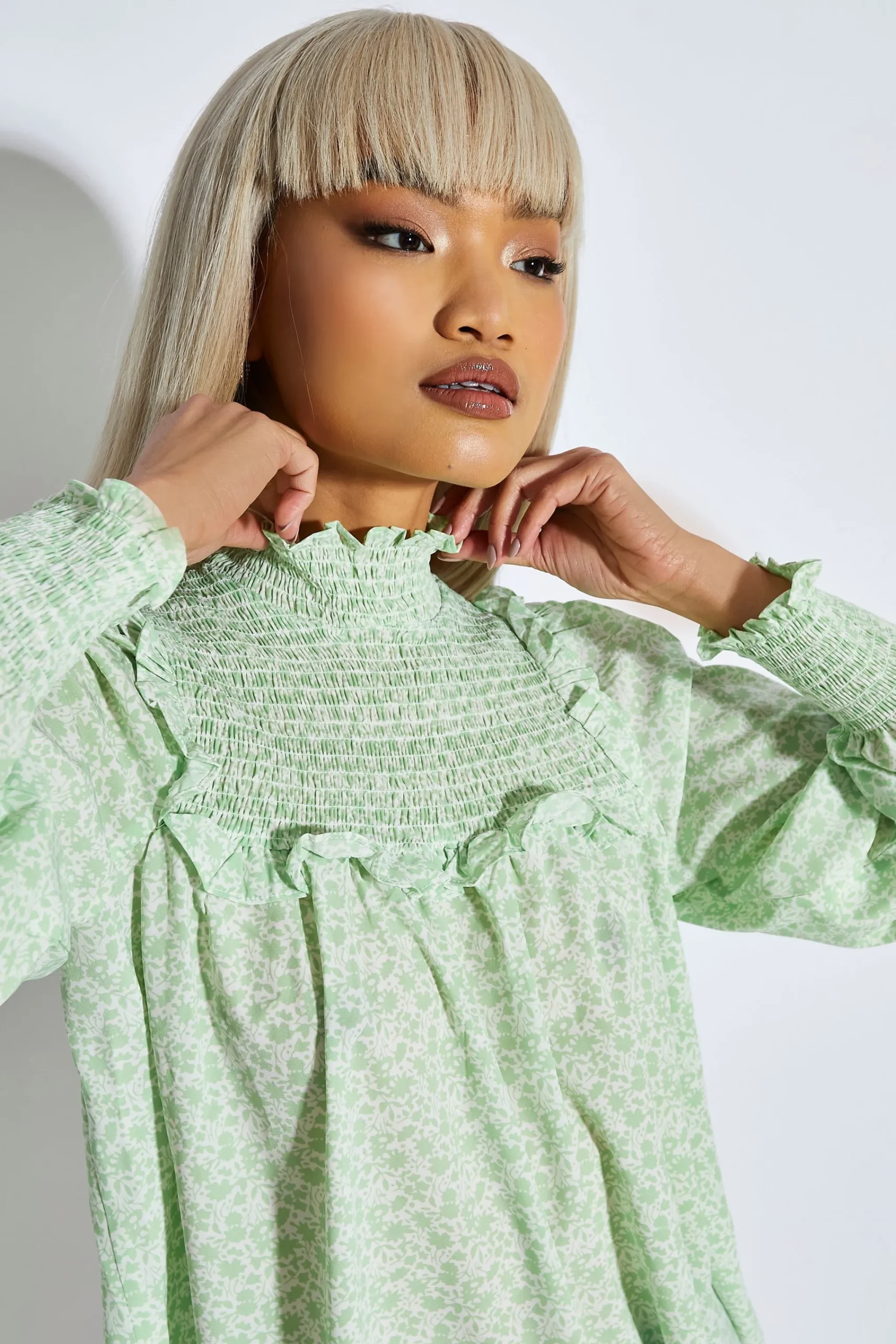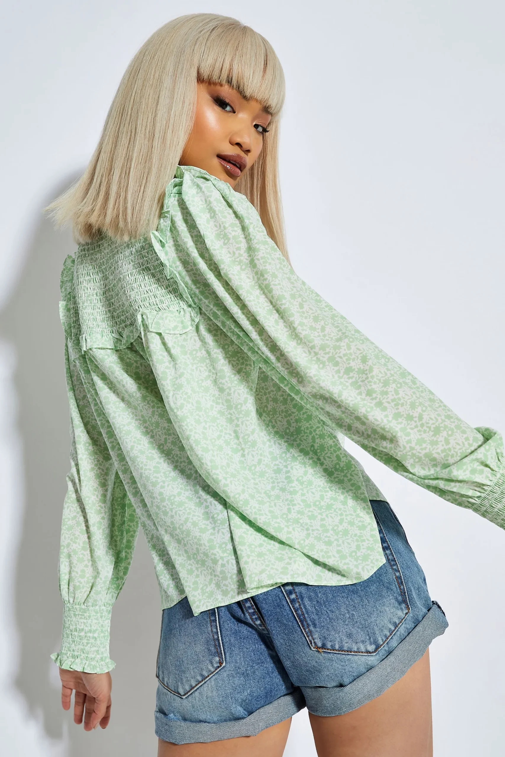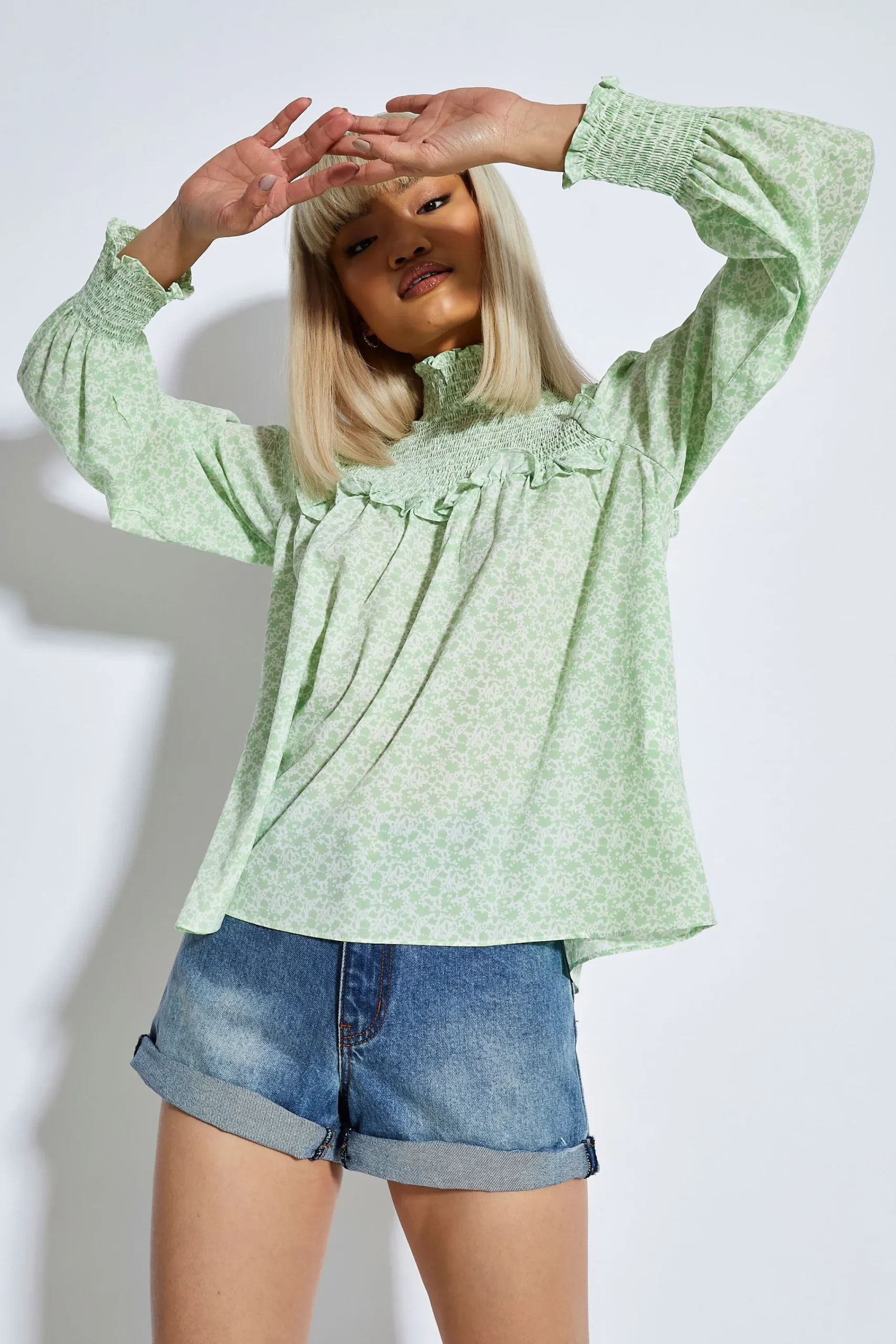 Glamorous Womens White Mint Ditsy High Neck Blouse. This top is perfect for your wardrobe this season! Featuring a high neck and ruffle detail, we love this piece here at Glamorous. Pair with jeans and a boots for the ultimate fashion forward look.
