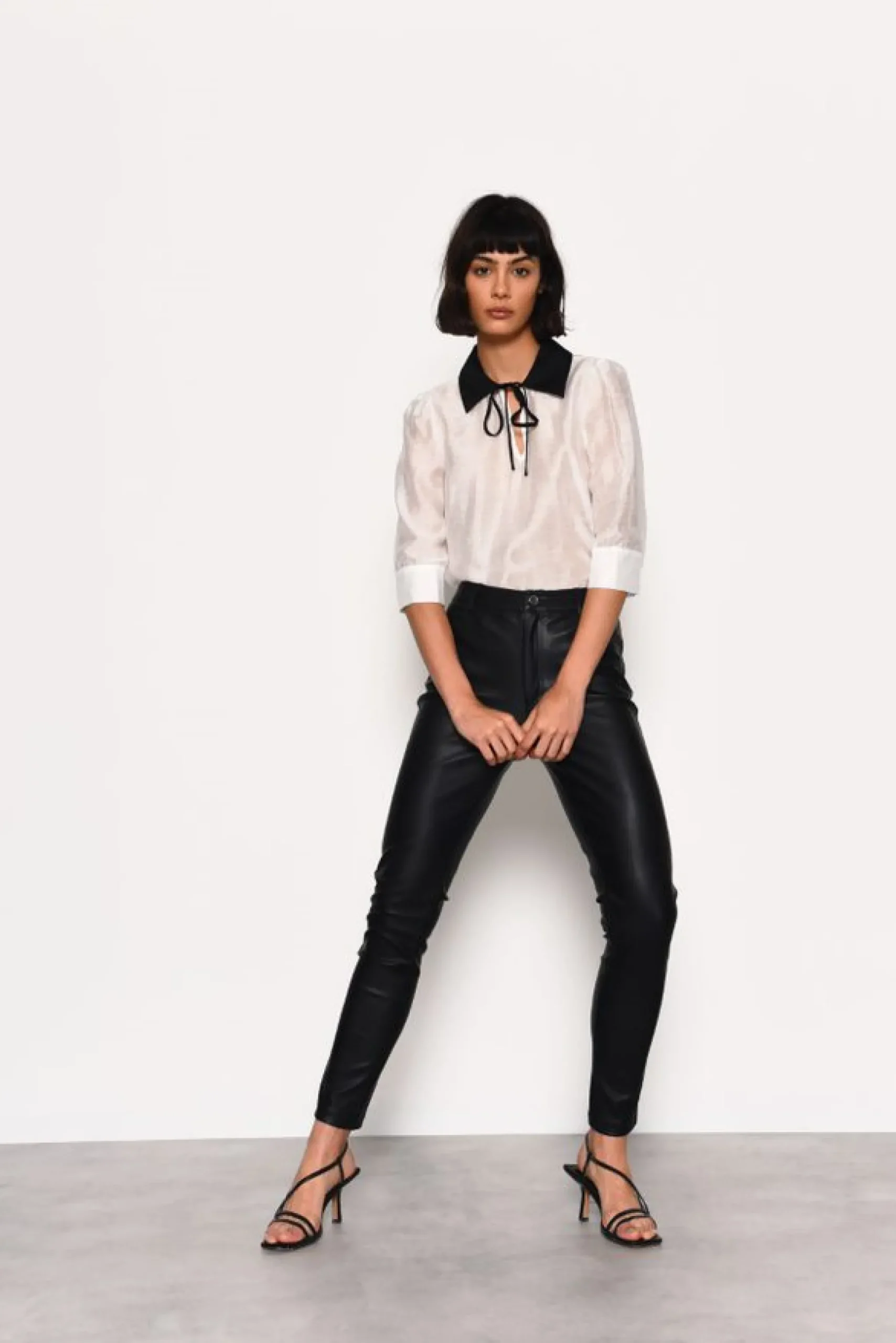 Glamorous Womens White Sheer Blouse With Tie Detail. This staple piece is a must have for your Autumn wardrobe. Featuring a flattering fit and tie detail with a statement contrast black collar, this blouse will look great on you! Make sure to pair with some black trousers and a pair of strappy heels for that chic daytime look.