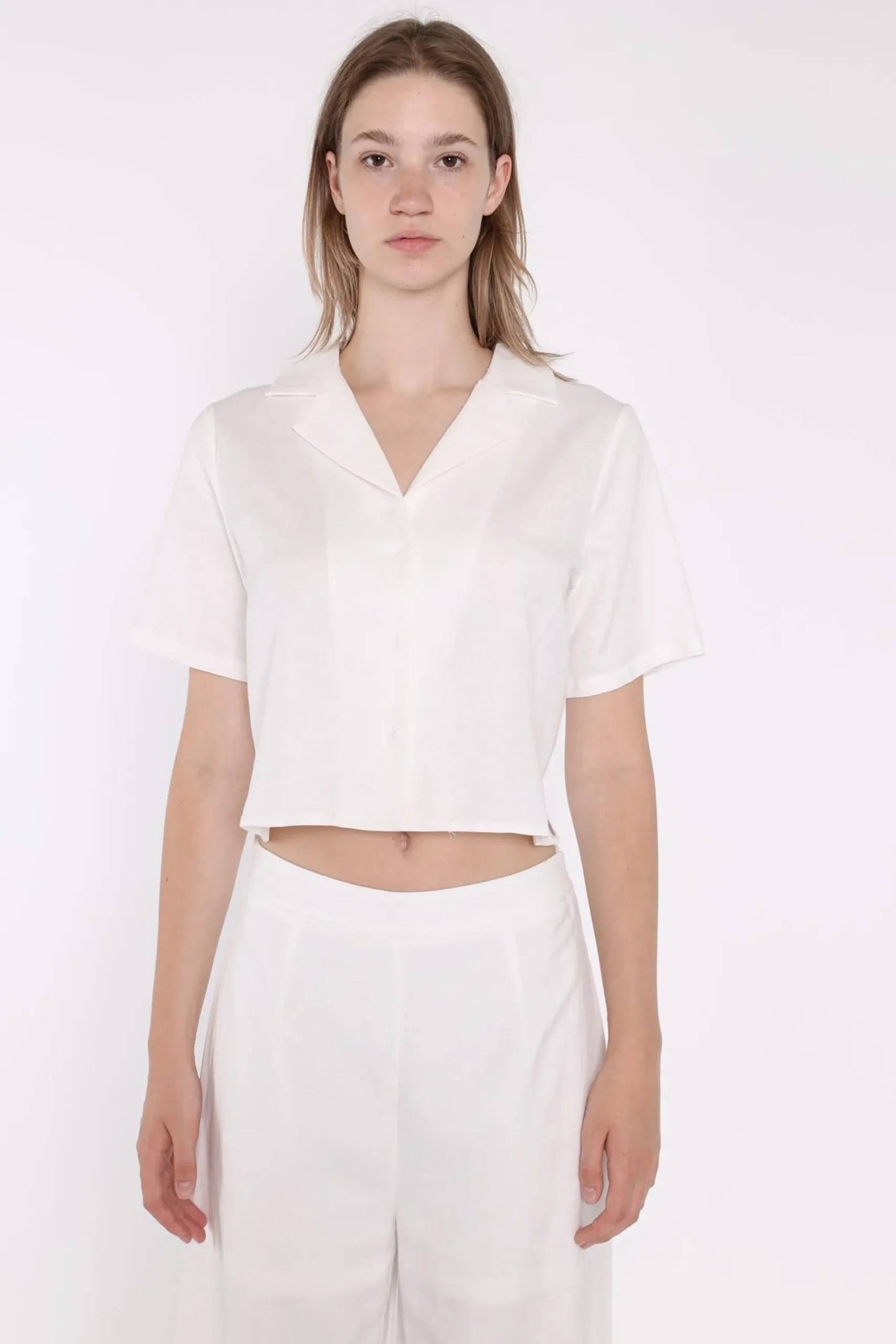 Glamorous Women’s White Short-Sleeve Cropped-Shirt. Embrace the effortless charm of this white short-sleeve cropped shirt. Crafted with a classic silhouette, it boasts a boxy fit that drapes beautifully, offering both comfort and style. The cropped length adds a contemporary touch, while the short sleeves keep you cool and breezy. Pair it with your favourite denim for a casual weekend look or over a tailored skirt for a polished office ensemble. Versatile and timeless, this piece seamlessly transitions from day to night, making it a wardrobe staple you’ll reach for time and again.