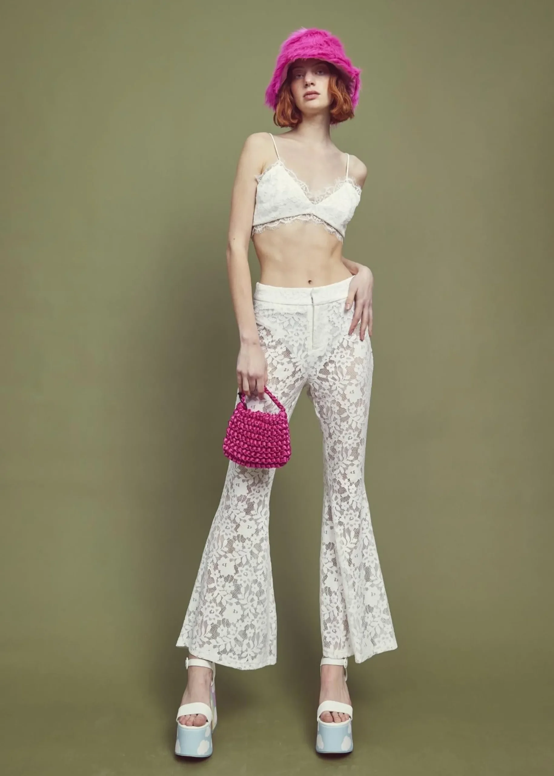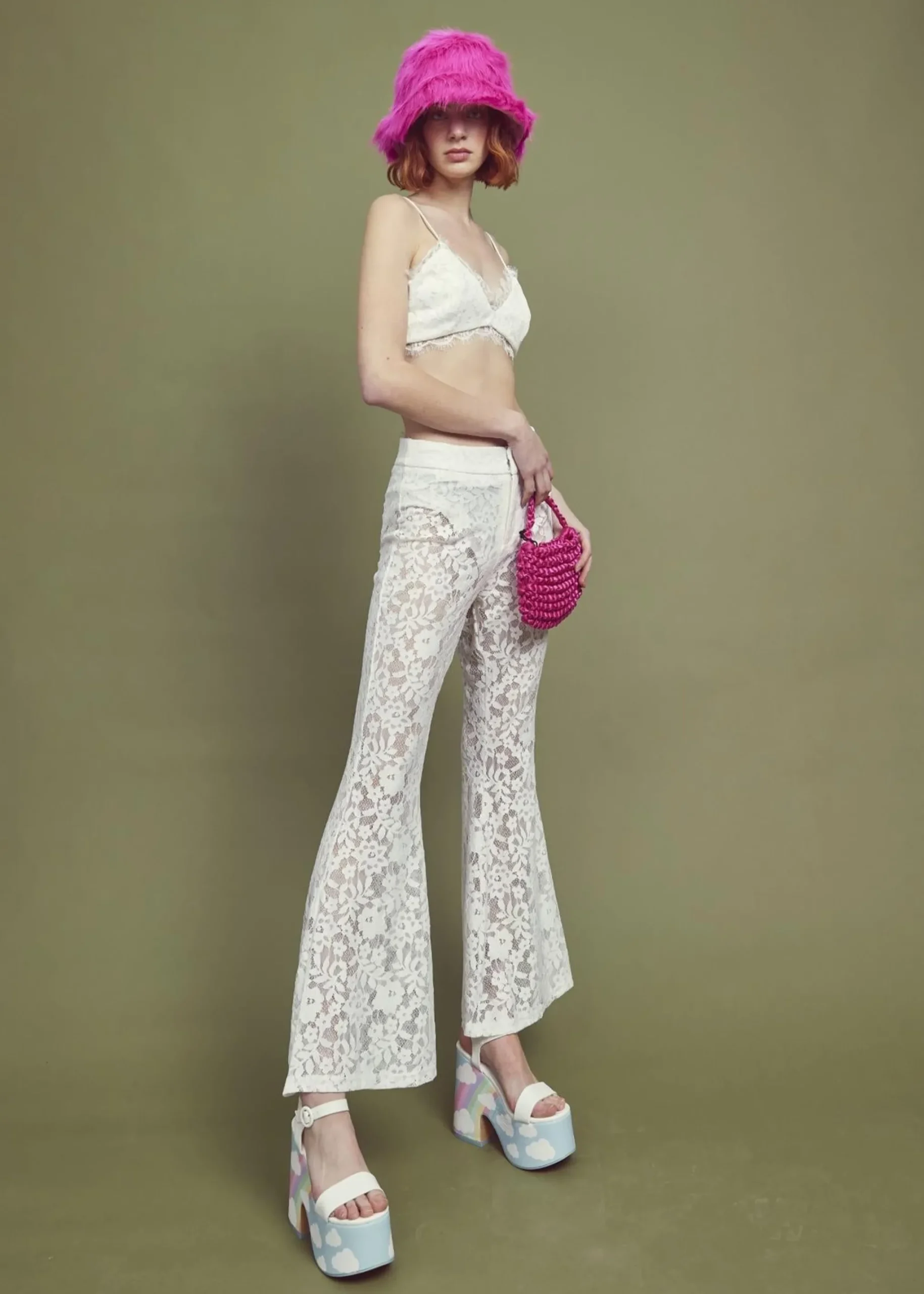 Collective the Label Women’s Flora Co-ord Flared Trousers -Ivory. Show up to your next event in the show-stopping Flora Co-ord! With its daring use of sheer lace and on trend shapes, you’ll be sure to stand out at any event! These sheer lace trousers come in a flared shape with built in hot pants. Make them stop and stare with this daring look and feel the fearlessness that comes with taking risks.