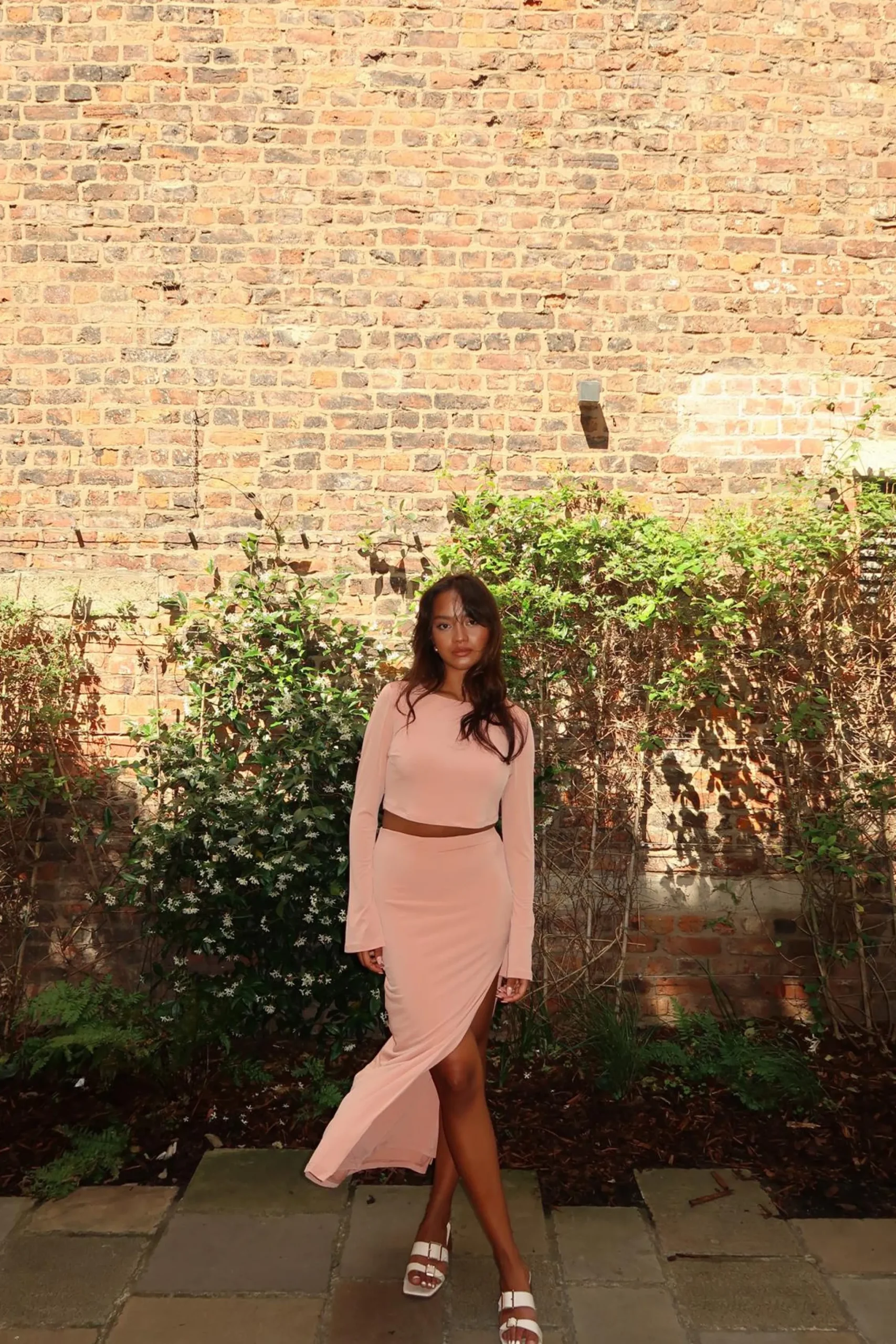 Narrated Women’s Soft-Terracotta High-Waisted-Split-Leg Maxi-Skirt. This flowing maxi skirt combines comfort and style in one eye-catching piece. The high-waisted design flatters your figure, while the elasticated waistband ensures a snug yet comfortable fit. A daring leg split adds a touch of allure and allows for easy movement, making this skirt suitable for various occasions. The soft, earthy hue complements a range of skin tones and pairs well with both neutral and bold colours. Try teaming it with a crop top for a summer-ready look, or tuck in a blouse for a more polished ensemble. The skirt’s versatile length works well with different shoe styles – from strappy sandals to ankle boots. Add a wide-brimmed hat and oversized sunglasses for a chic daytime outfit, or dress it up with statement jewellery for evening events. This maxi skirt is a wardrobe staple that effortlessly transitions from casual to dressy, offering endless styling possibilities.