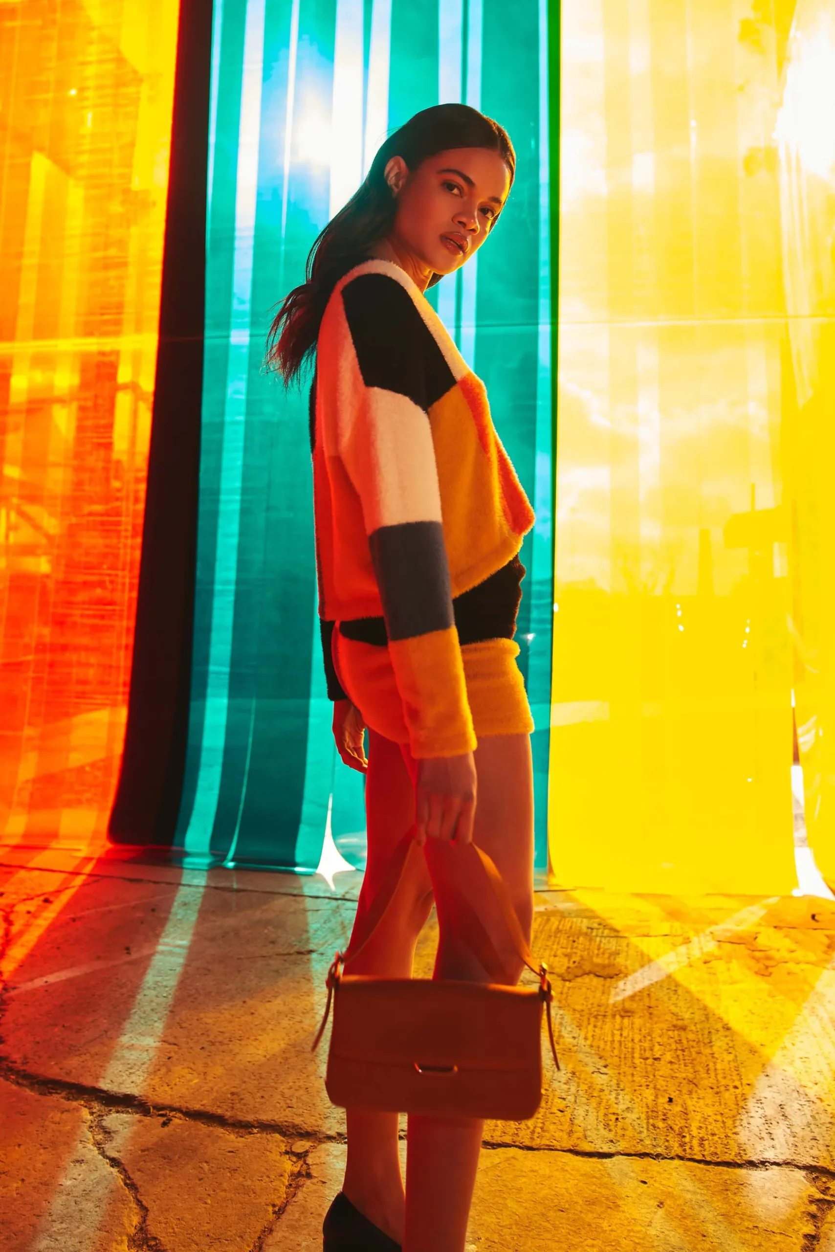 Glamorous Womens Navy Orange Multi Button Front Cardigan. This gorgeous cardigan is perfect for your wardrobe this Autumn season. Featuring an on trend pattern detail and contrasting colours, this flattering piece will look great on you! Pair with some relaxed white trousers and mule sandals for a fashion forward daytime look.