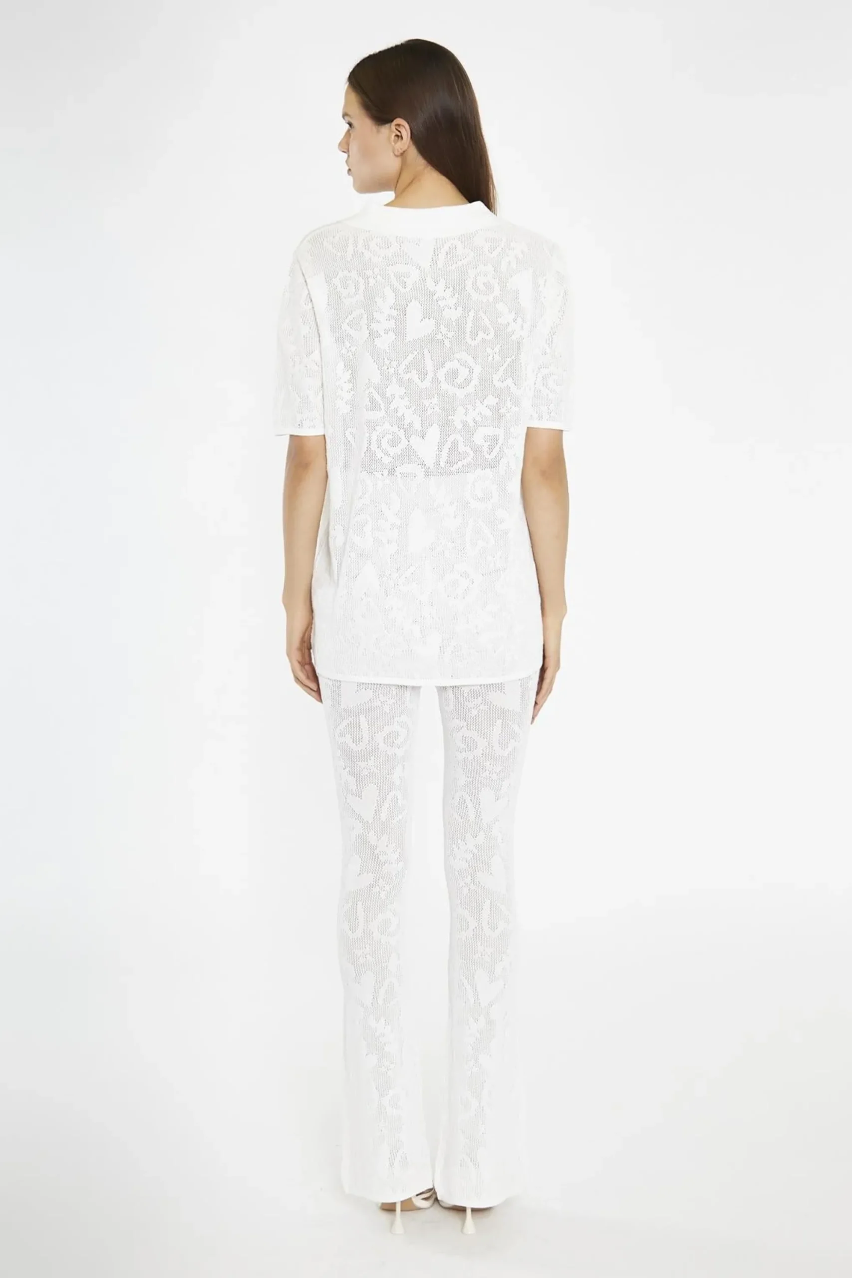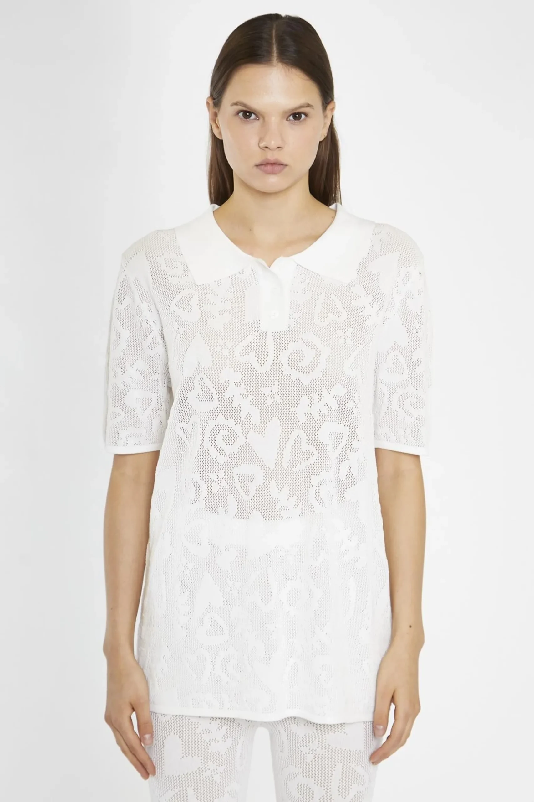 Glamorous Women’s White-Textured Knit-Top. Elevate your casual style with this white textured knit top. The classic polo shirt silhouette gets an update with a textured knit design, adding depth and interest to your look. Pair it with the matching trousers for a coordinated, monochromatic ensemble, or mix and match it with your favourite bottoms for a versatile outfit. The breathable knit fabric keeps you cool and comfortable all day long. Dress it up with sleek accessories for a night out, or keep it casual with sneakers for a laid-back vibe. Effortlessly chic and endlessly wearable, this top is a must-have for your wardrobe.