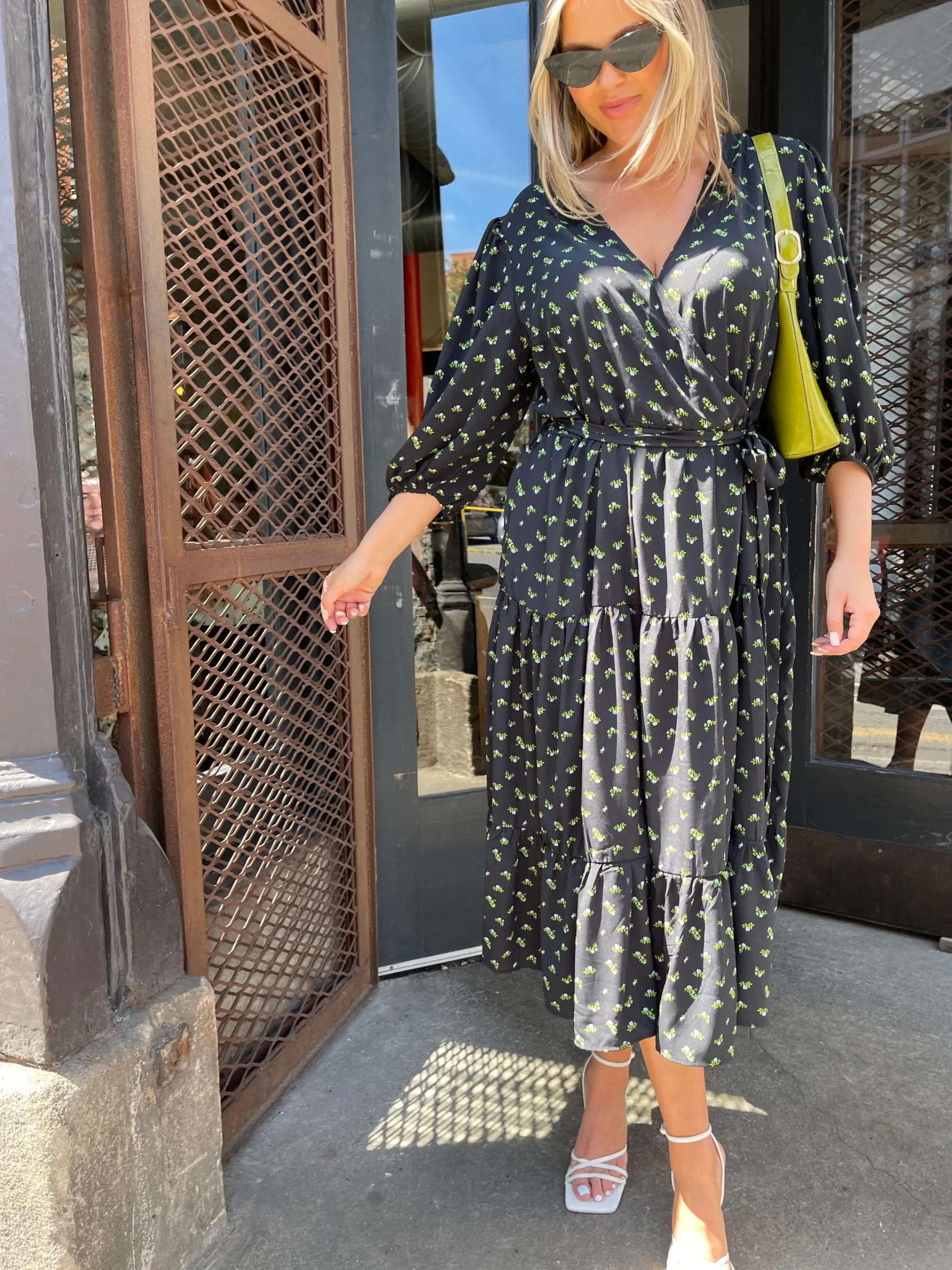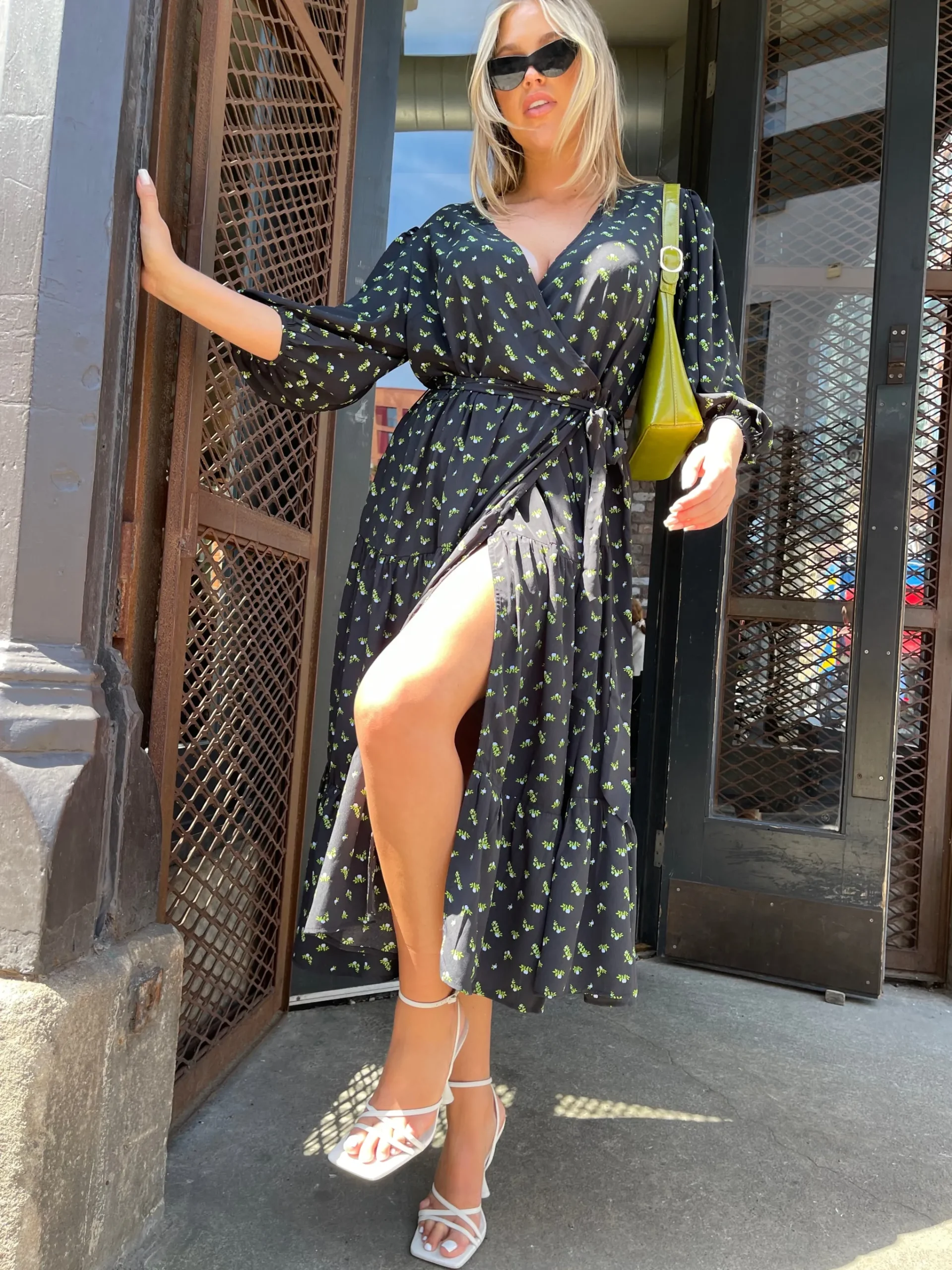 Glamorous Curve Women’s Rosebud Floral Tiered Wrap Front Midaxi-dress. This Midaxi dress is the perfect versatile piece that you will be wearing all year round! Featuring a flattering wrap front design and tiered skirt, this dress is will hug you in all the right places. Pair this with your favourite heeled boots for a stunning day to night look!