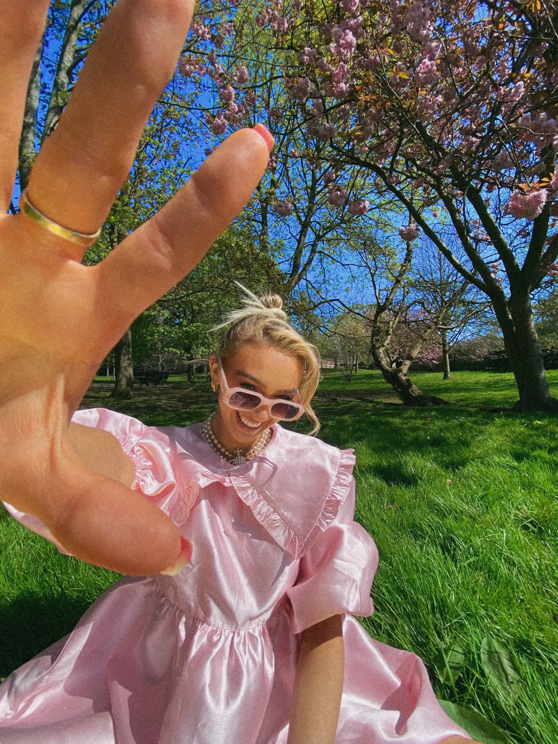 Glamorous Soft Pink Satin Statement Collar Mini Dress with Voluminous Sleeves. Fashion forward and feminine, this soft pink mini is the perfect daytime look. With a statement collar and voluminous sleeves, you wont regret adding this piece to your wardrobe. Looks great teamed with chunky boots or dressed up with your favourite heels for cocktails with the girls.