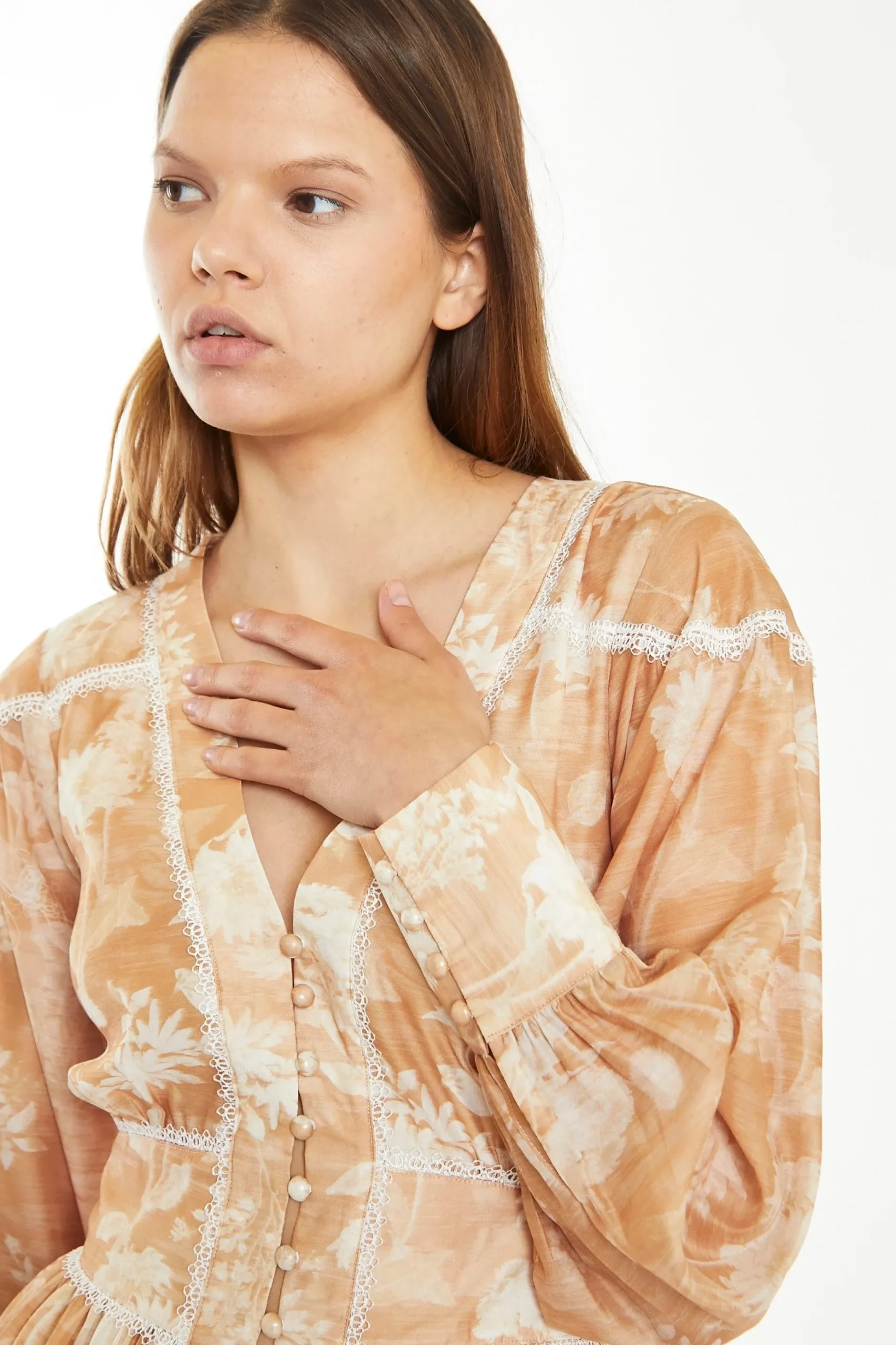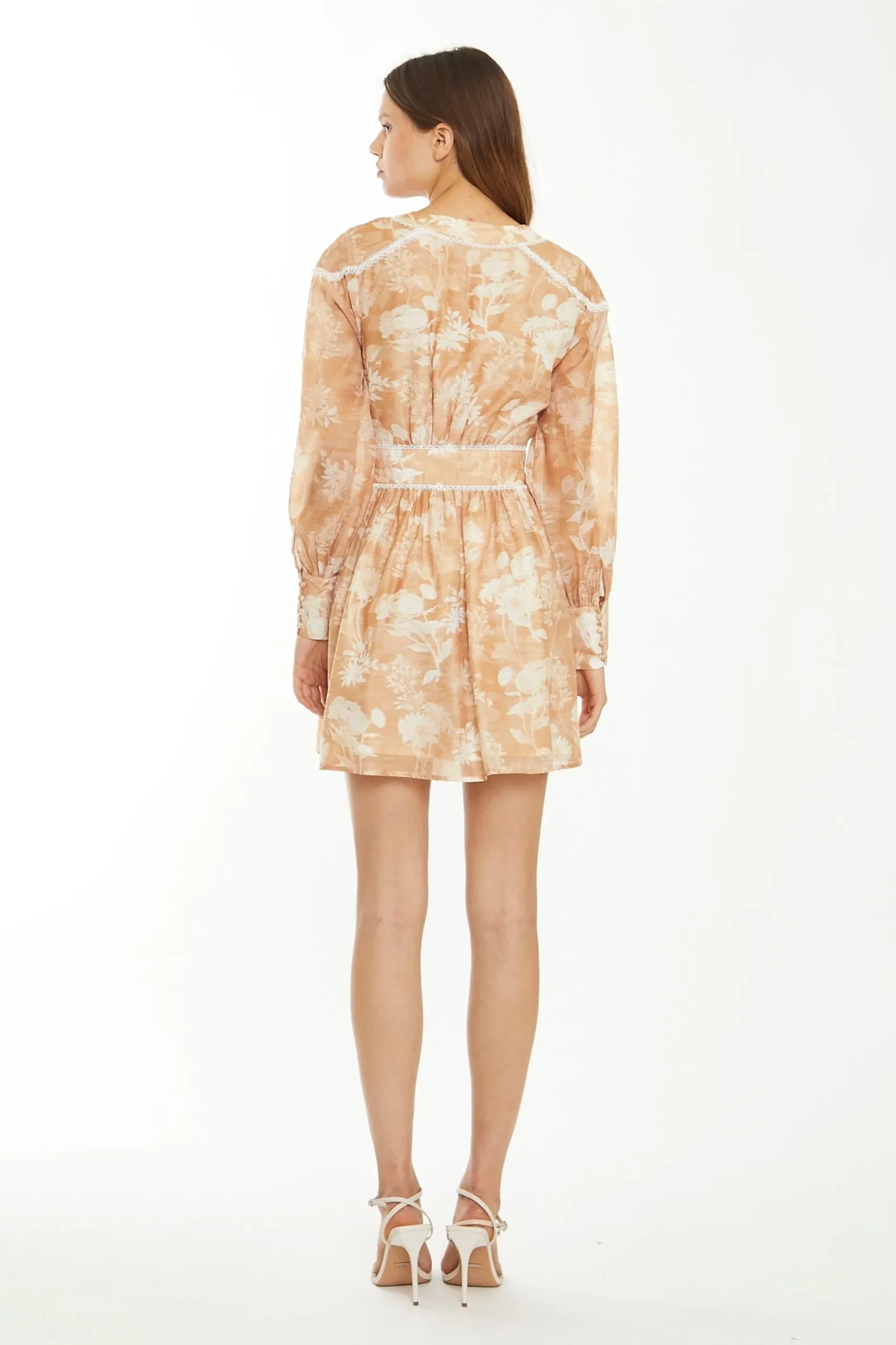 Glamorous Womens Tan White Floral Button-Through Mini-Dress. This gorgeous mini dress will look great on you! Featuring button front detail, a V-neckline and cuffed volume sleeves with a lace trim in a vintage inspired floral print, this dress wont fail to impress. Pair with some strappy heels for the perfect elevated look this Spring.