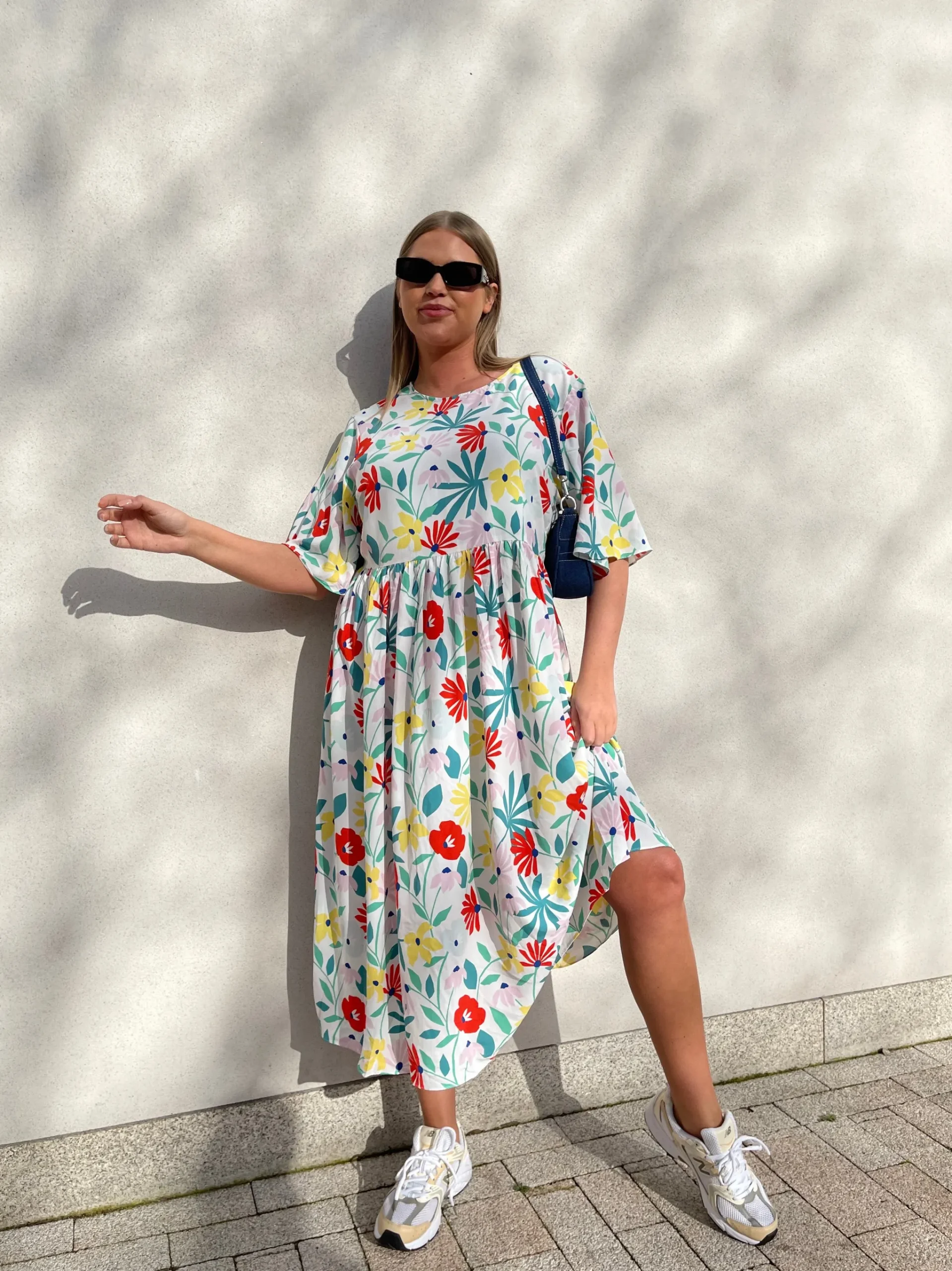 Glamorous Curve Bright Multi-Floral Midi Dress. Opt for a floral style with this feminine midi-dress. This statement style features a colorful floral print, short sleeves, and a voluminous cut. Style with strappy sandals and a grab bag for Spring.