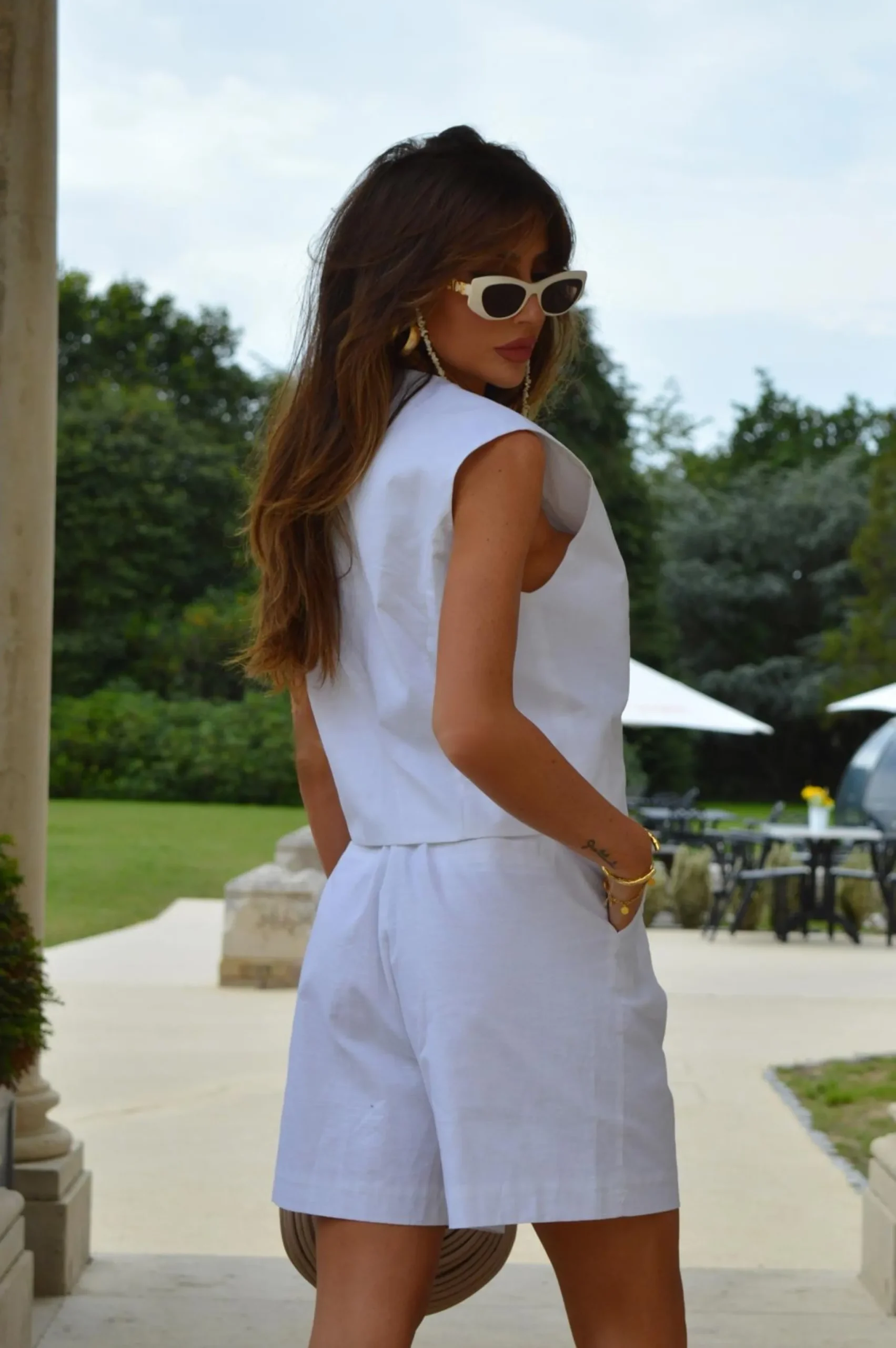 Glamorous Studio Women’s White Loose-Fit High-Waisted-Shorts. Get ready to rock your summer style in our White Loose-Fit High-Waisted-Shorts! The high-waisted and loose fit design provides both comfort and style, while the zip fastening, waistband belt loops, and side pockets make these shorts functional and fashionable. Made with light linen fabric and fully lined, these shorts are perfect for any warm weather occasion. The matching top and blazer options create endless outfit possibilities. Don’t miss out on this versatile and trendy addition to your wardrobe!