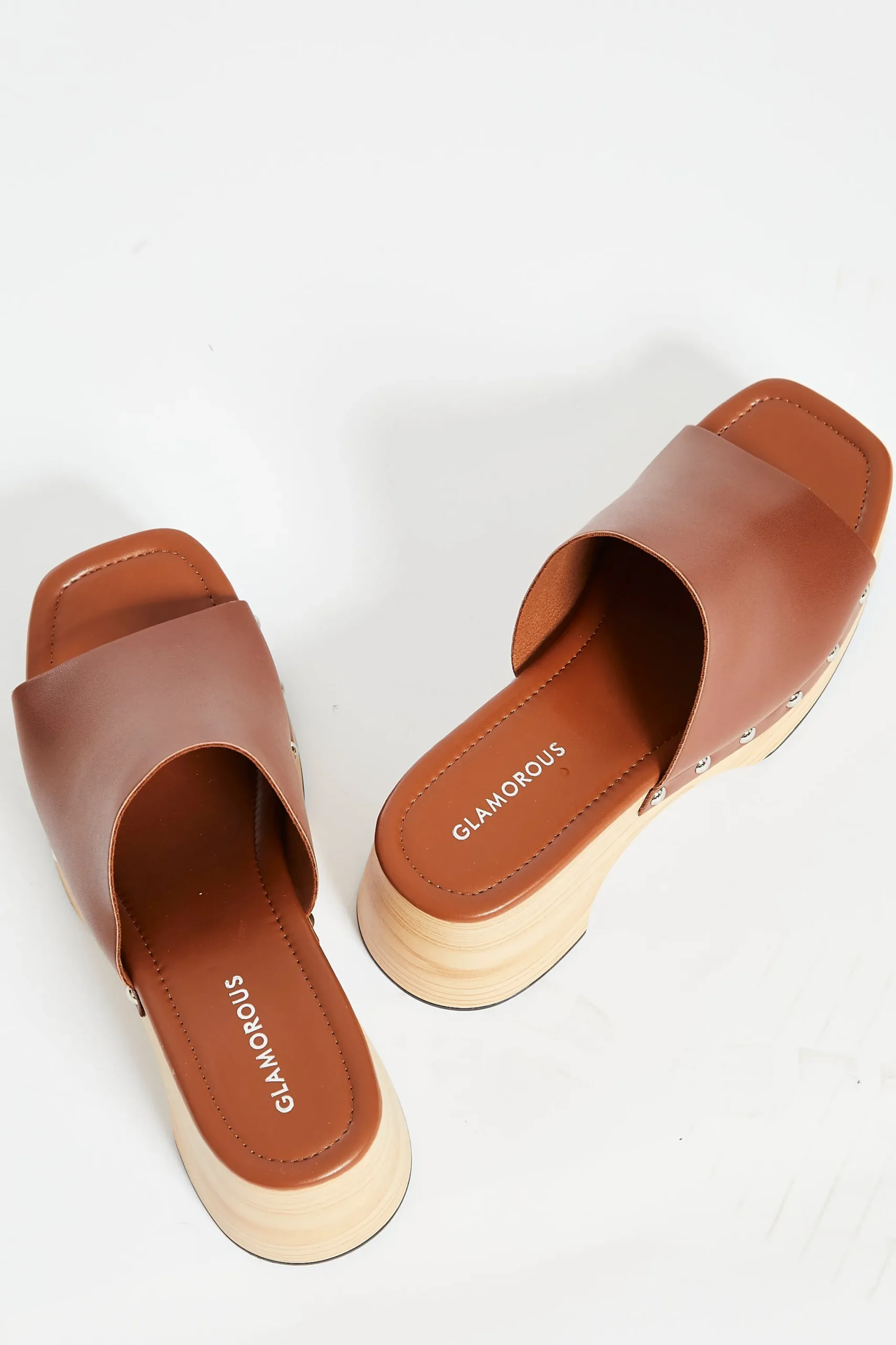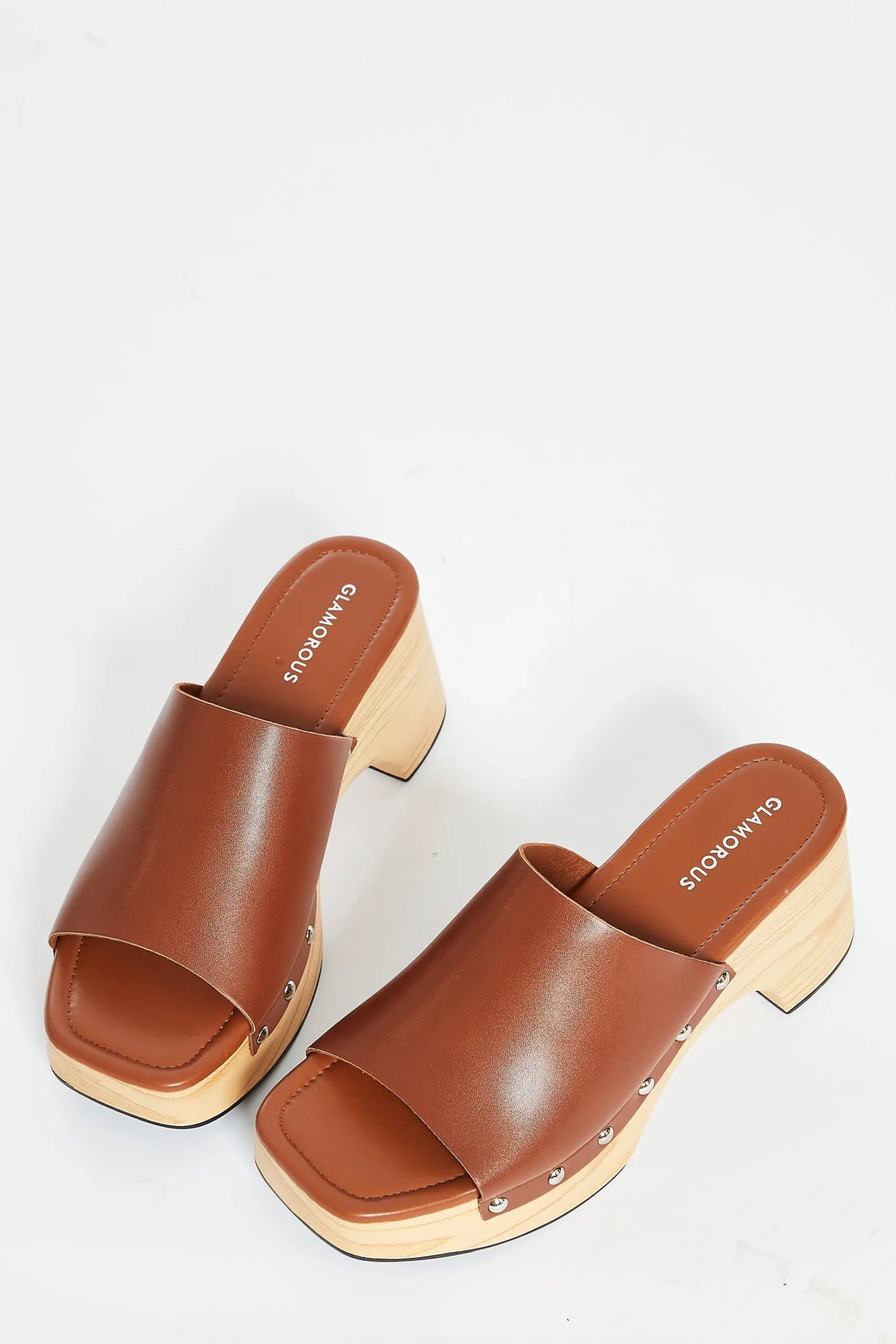 Glamorous Tan Open Toe Mule Clog Sandals. Its time to refresh your summer wardrobe with these gorgeous sandals. Featuring a thick supportive strap and block heel in a slip-on mule style, these clog sandals are the ultimate wardrobe staple. Looks great styled with jeans and a nice top or dressed up with your favourite summer dress to really make a statement!