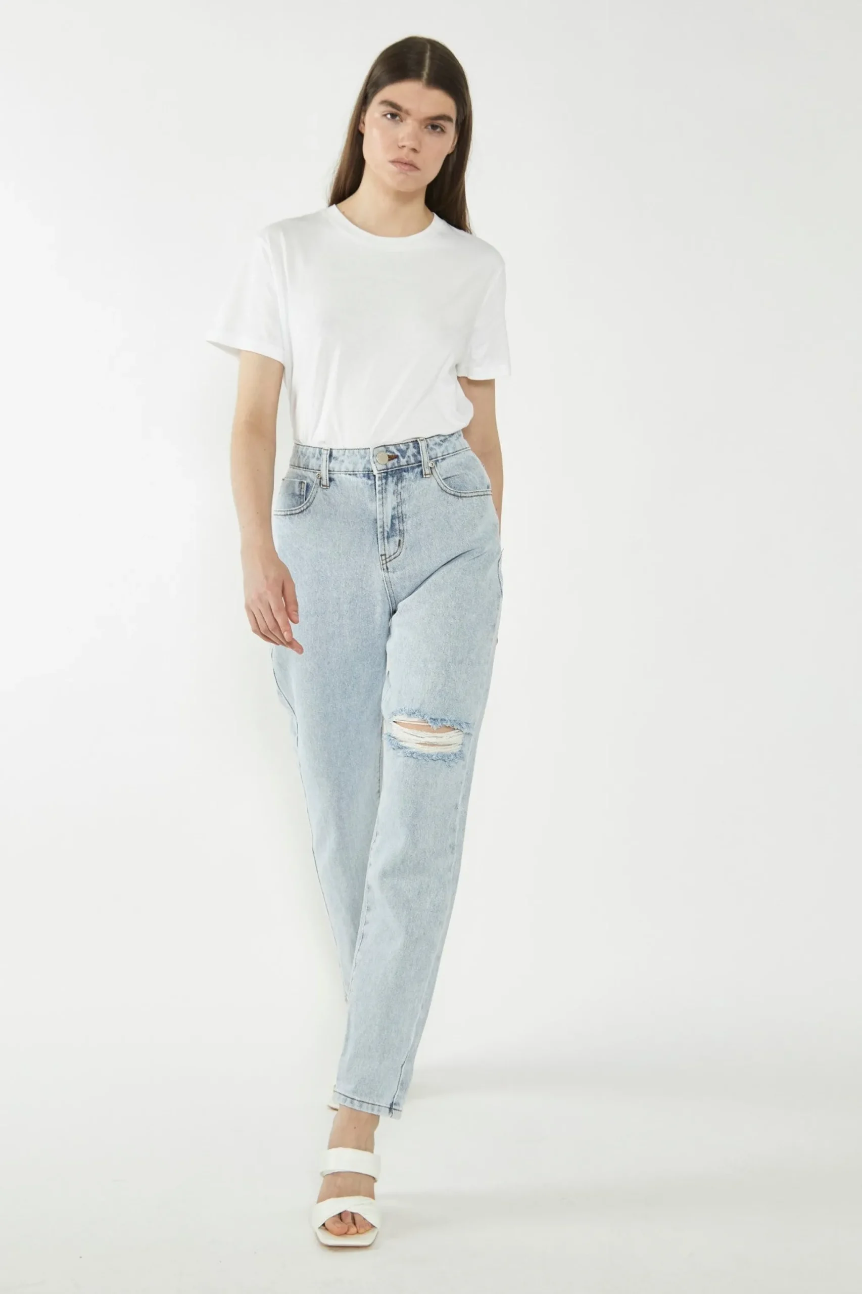 Some of the key features of our Antique Bleach Distressed Mom Jeans include: