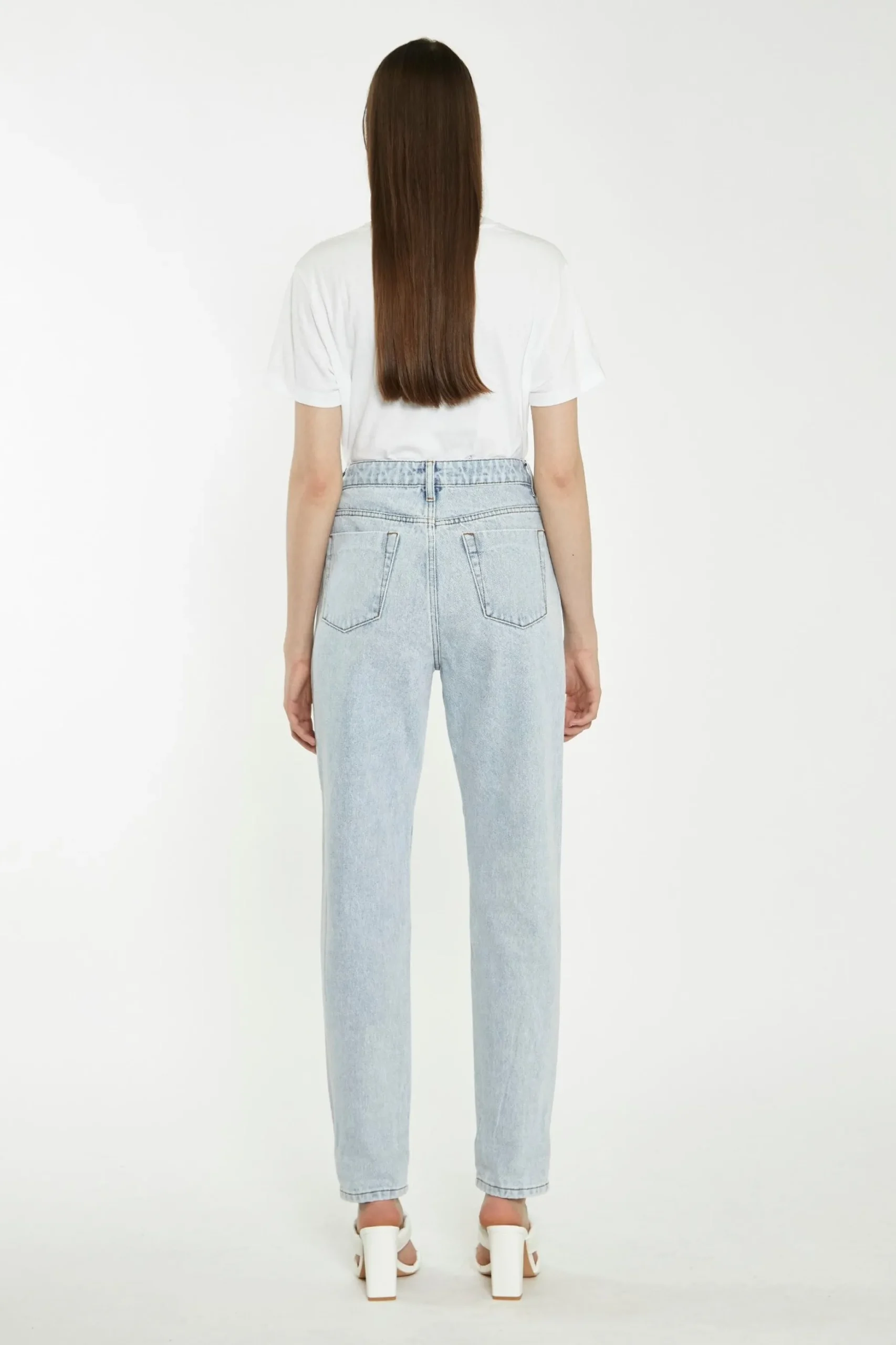 Featuring a unique antique bleach wash and distressed detailing, these mom jeans are both on-trend and unique. The high-waist design and relaxed fit provide comfort and versatility, making them perfect for any occasion.