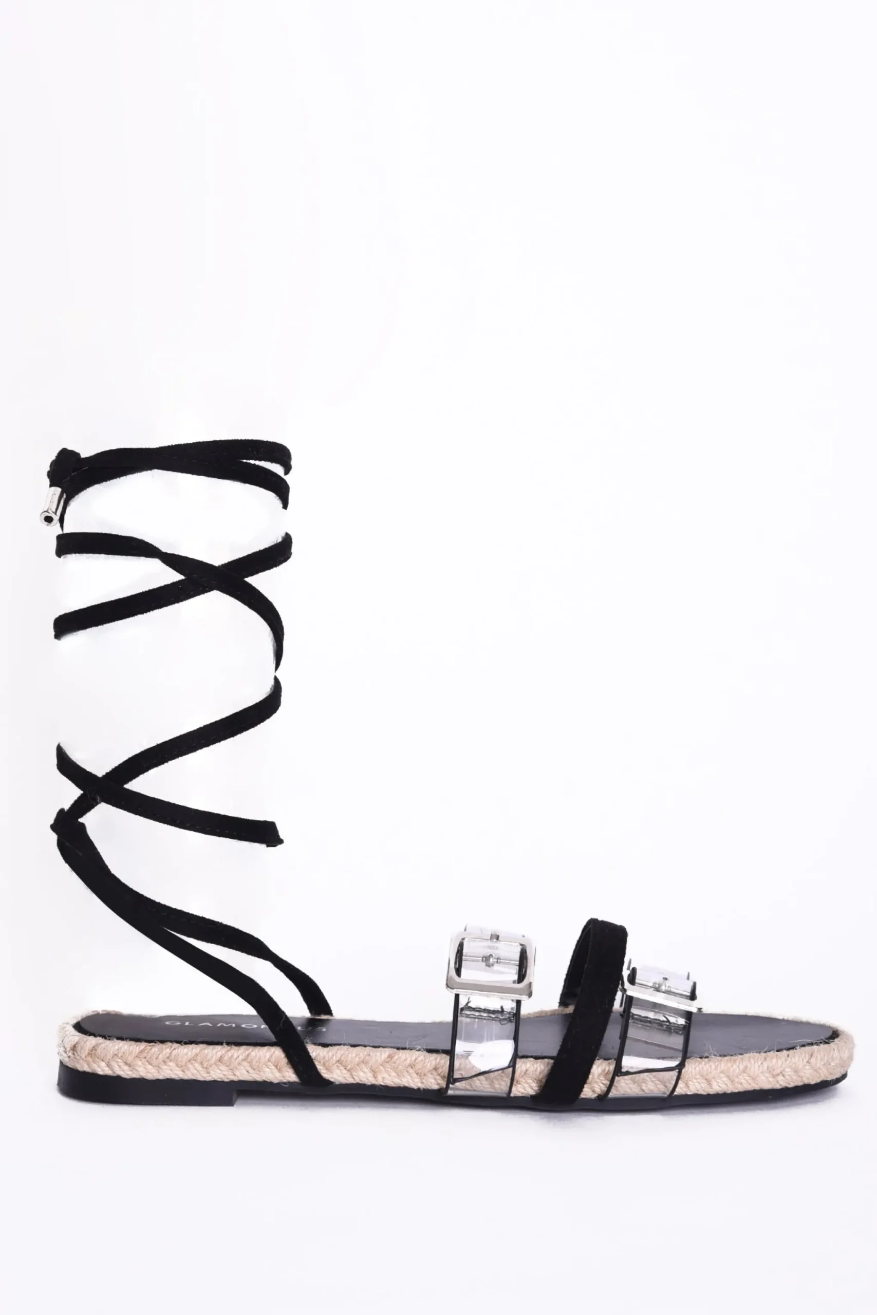 Glamorous Womens Black Lace Up Clear Buckle Strap Sandals. A must have for every sandal collection, these lace up sandals will go with everything in your wardrobe. Featuring strappy silhouette, lace up detail and clear buckle straps, dress up or down for any occasion. Looks great teamed with shorts and a cute top for a relaxed daytime look or styled with a statement dress for elevated evenings.