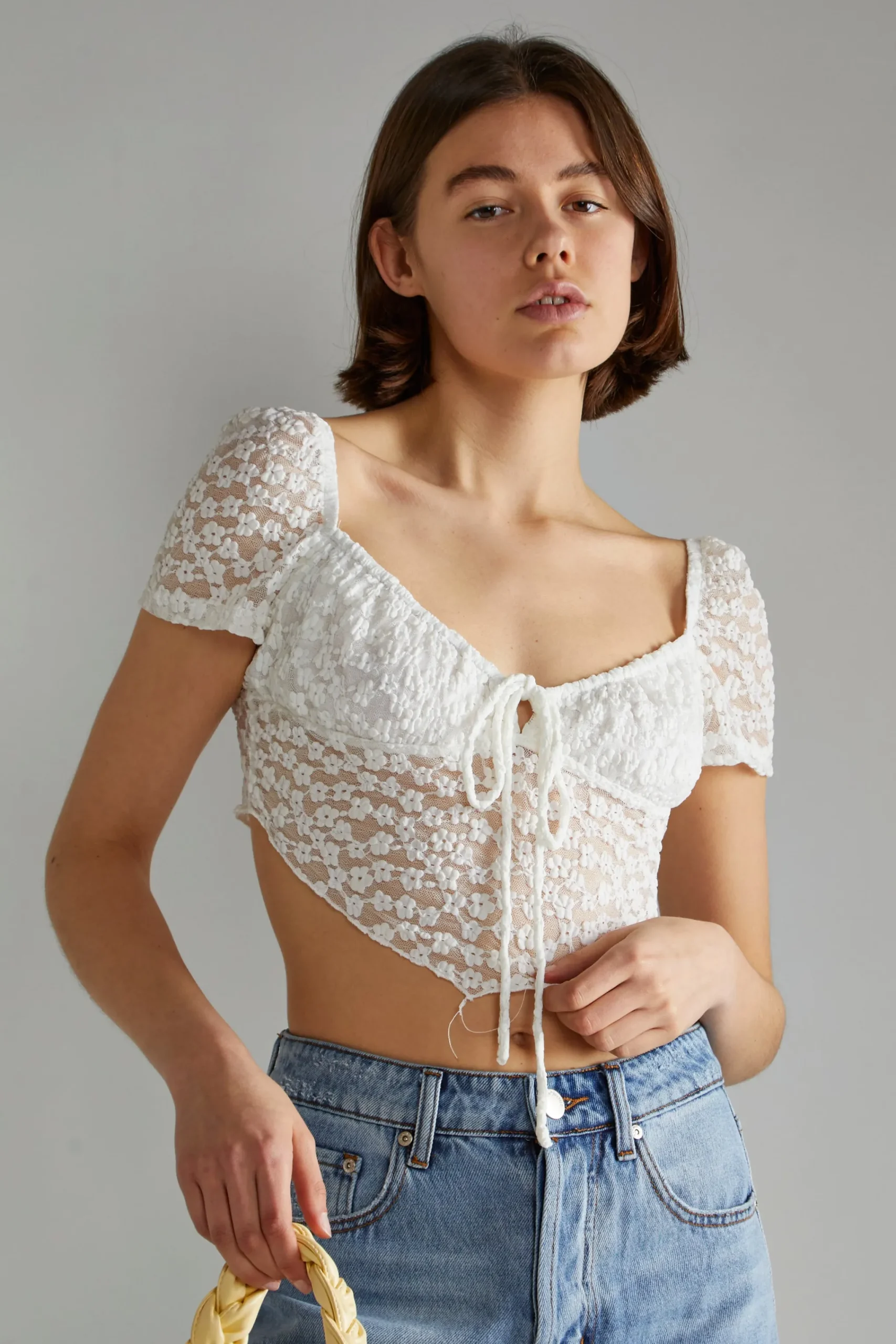 Glamorous Womens White Lace Milkmaid Hanky hem-Top. Add a bit of drama to your look with this White Lace Milkmaid Top. With its hanky-hem shape, milkmaid drawcord bust design, and capped sleeves, its a cute and stylish top thats sure to turn heads! Spice up any look with this perfect top!