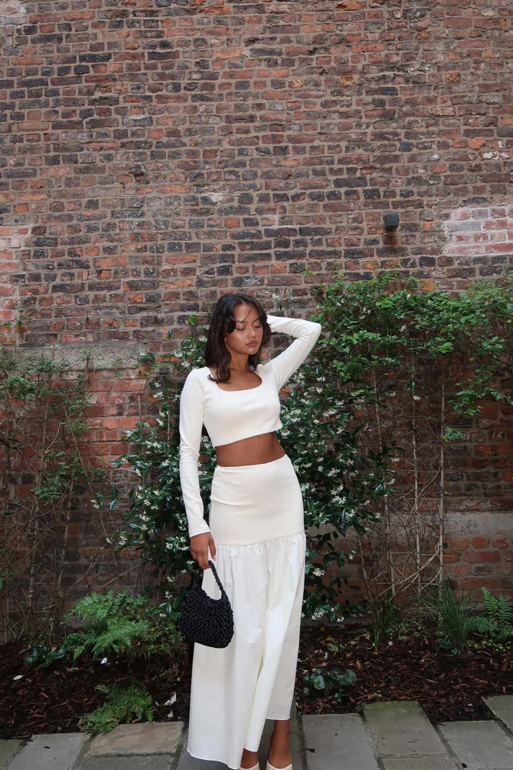 Narrated Women’s Vanilla Half-Pleated-High-Waist Maxi-Skirt. This stunning half-pleated maxi skirt brings a touch of elegance to any outfit. The high-waisted design accentuates your natural curves, creating a flattering silhouette that elongates your legs. The pleated fabric adds movement and texture, making it a joy to wear and watch as you walk. Its neutral hue is versatile, allowing for endless styling possibilities. Pair it with a tucked-in blouse for a polished office look, or dress it down with a casual tee for weekend brunches. The maxi length works well with various shoe choices – from strappy sandals to ankle boots. Add a statement belt to define your waist further, or layer with a cropped jacket for cooler evenings. This skirt transitions effortlessly from day to night, making it a valuable addition to your wardrobe. It’s a piece that combines comfort and style, ensuring you feel confident and chic in any setting.