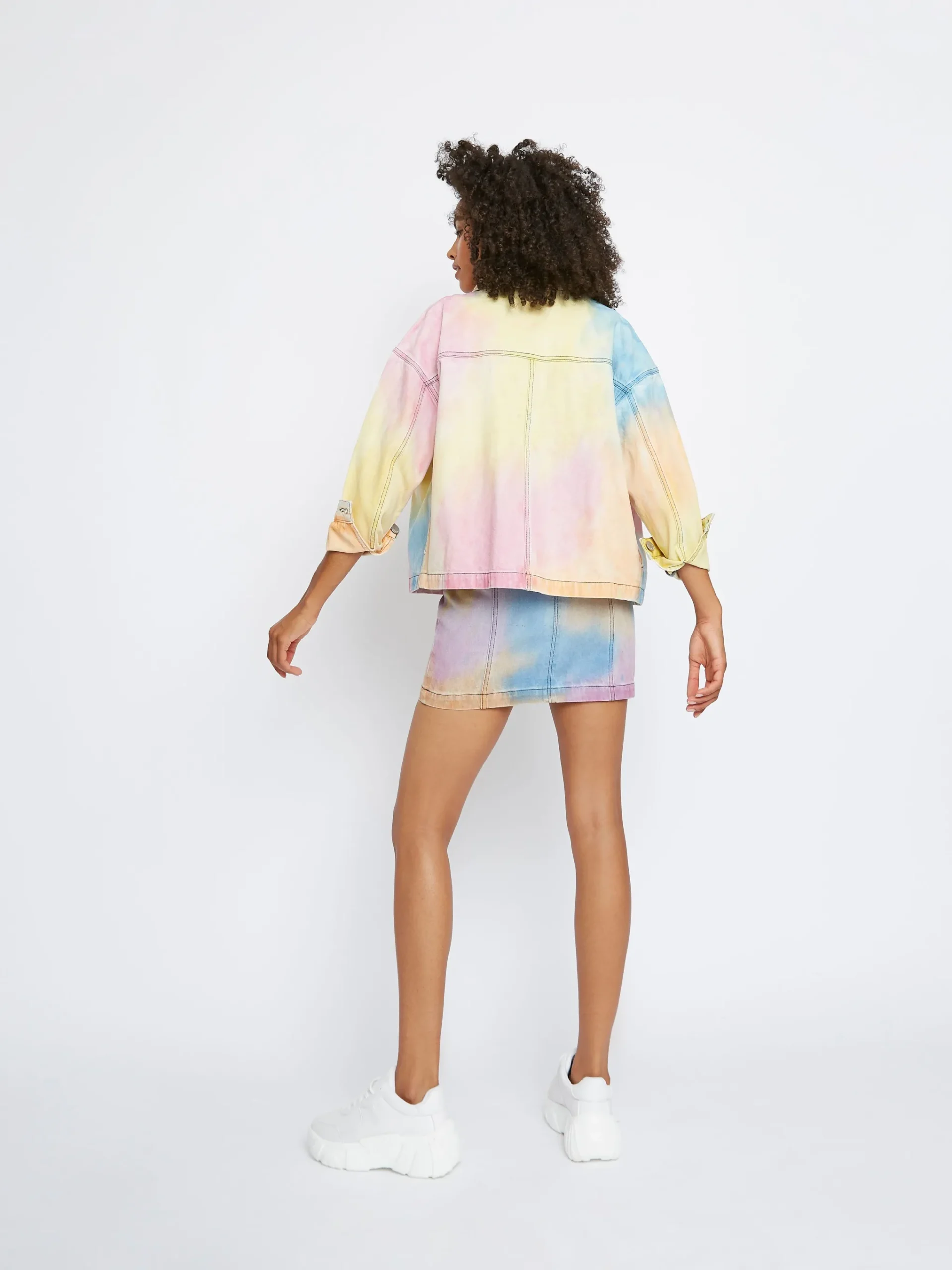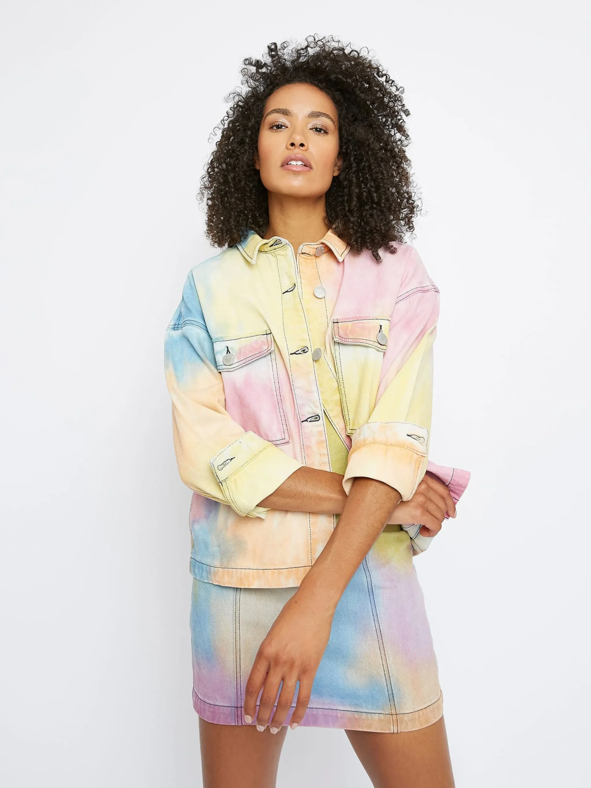 Glamorous Womens Multi Tie-Dye Denim Jacket. This gorgeous tie dye piece is perfect for your wardrobe this summer season. Featuring a flattering cut and tie dye print this jacket will not fail to impress! Style with the matching Multi Tie-Dye Spaghetti Strap Dress and strappy sandals for that effortless elegant summer look.