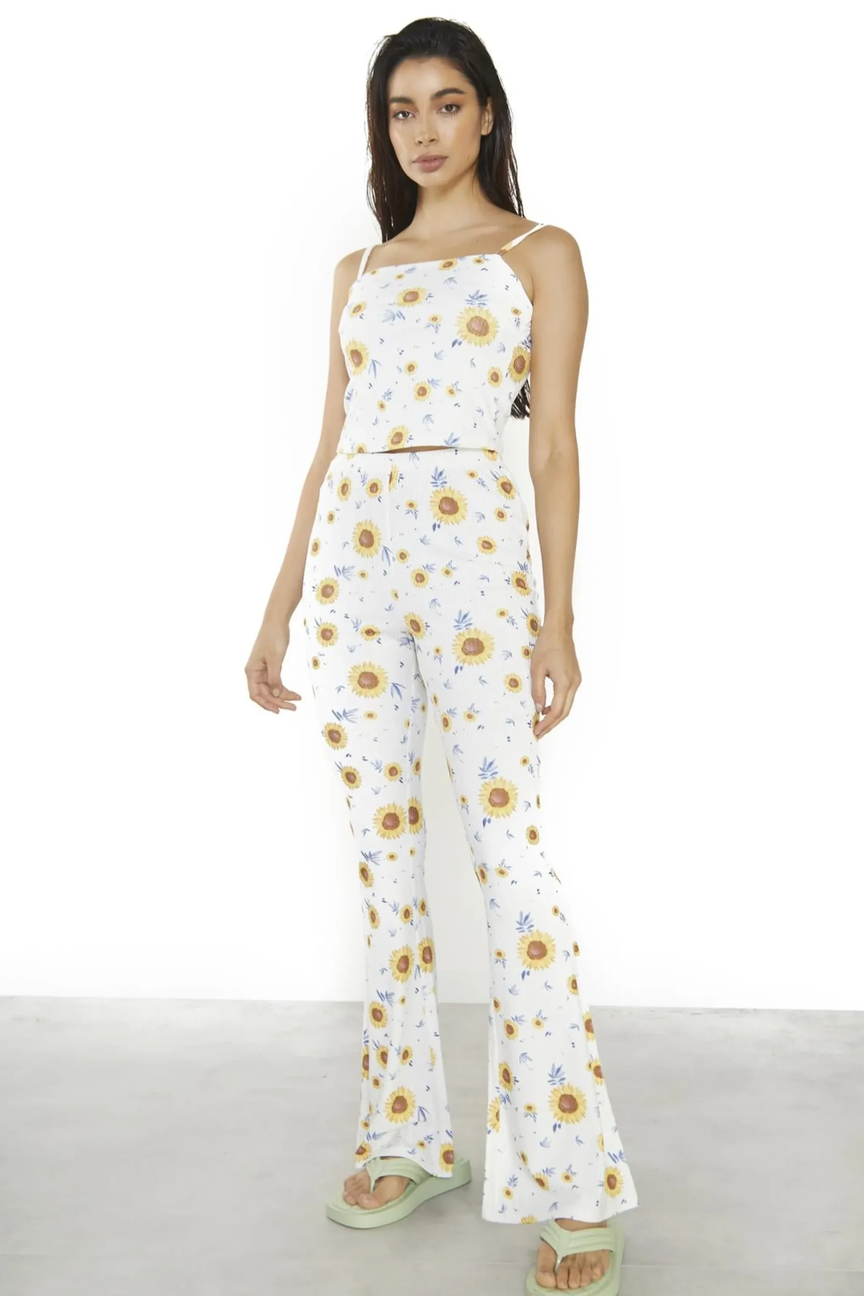 Glamorous Women’s Sunflower Rib Flared Trousers. Slip into these flared leg trousers and let your style bloom. The high-waisted design flatters your figure, while the ribbed texture adds a touch of cozy comfort. Pair them with the matching top for a coordinated look that’s perfect for any occasion. These trousers are designed to move with you, so you can strut your stuff with confidence. Embrace your inner sunflower and let your style shine!