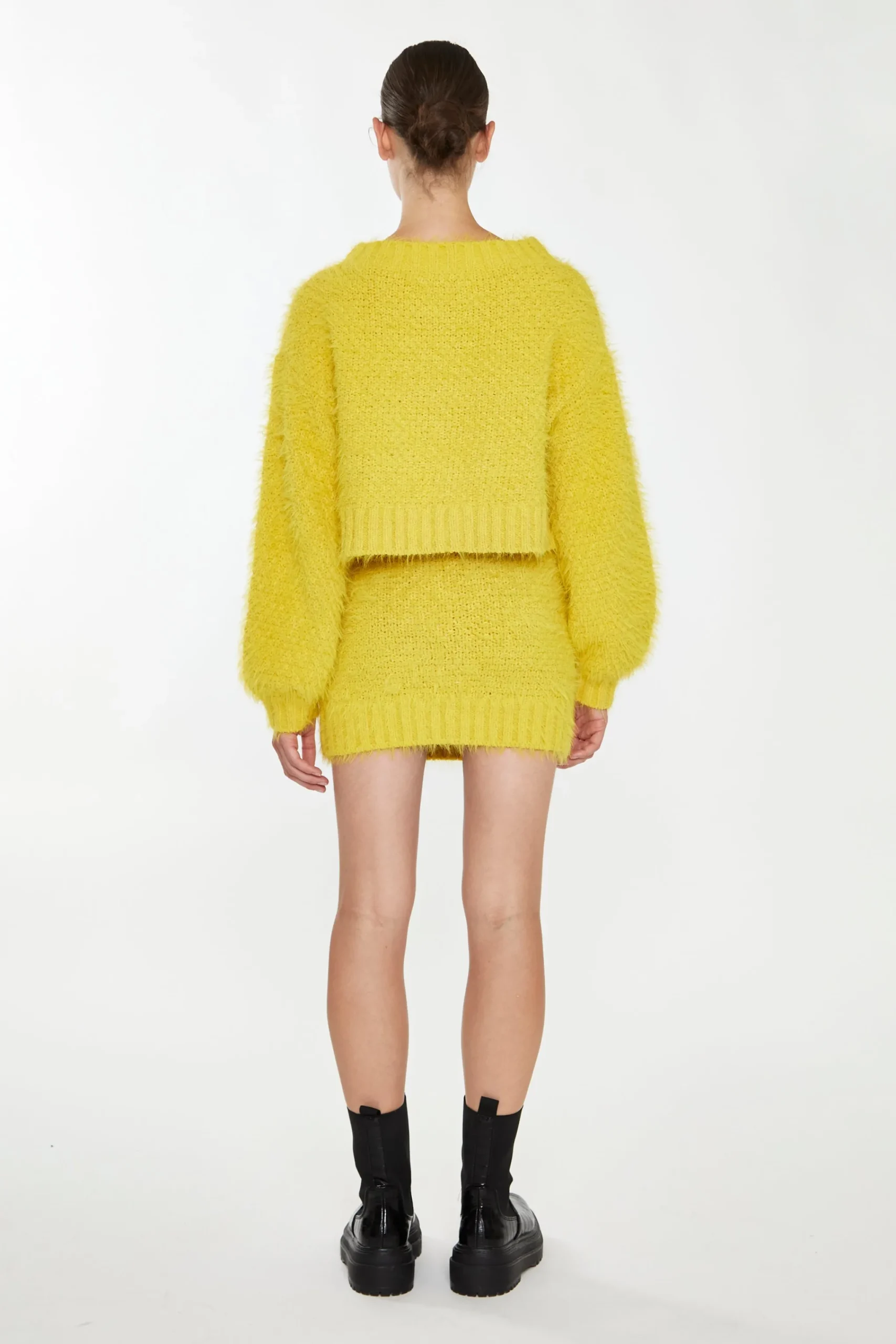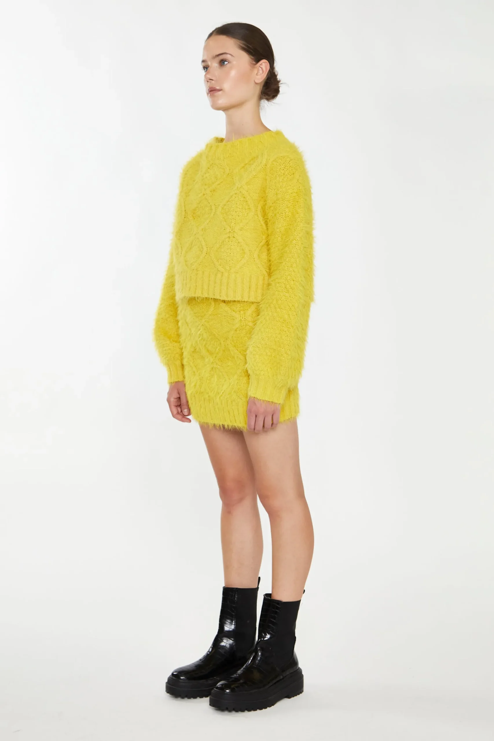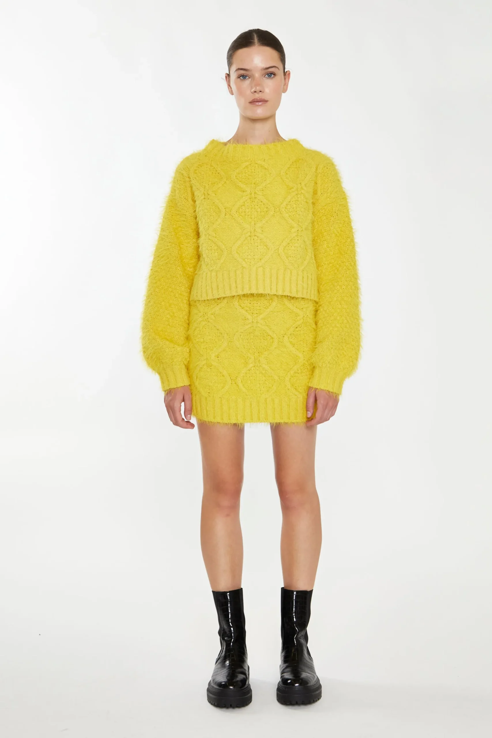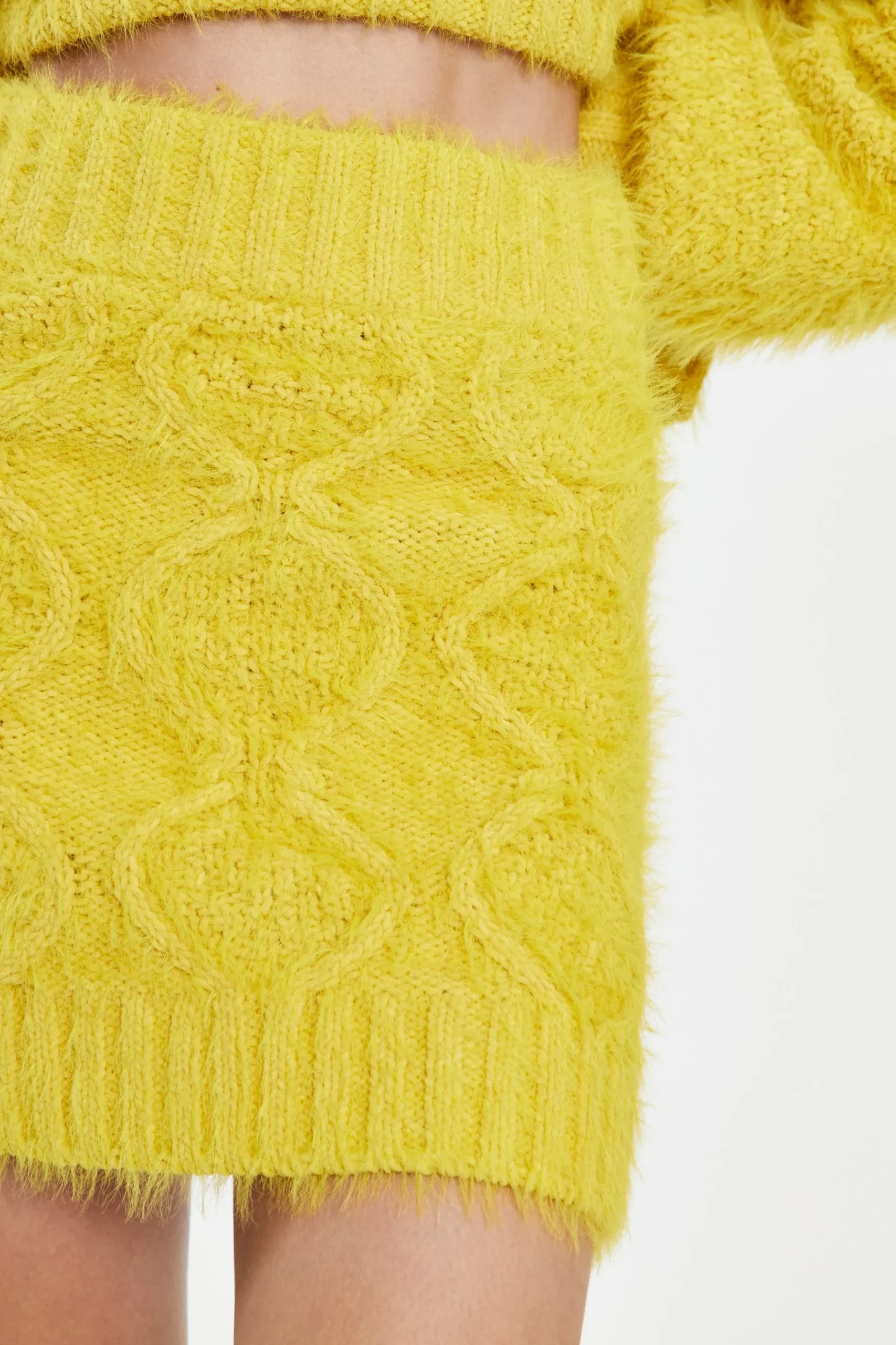 Glamorous Mustard Knitted Mini Skirt. This knitted mini skirt is giving us the ultimate cosy vibes this season. Featuring a knitted style and flattering fit, this piece will look great on you! Elevate the look with our matching co-ord jumper for the ultimate on trend look.